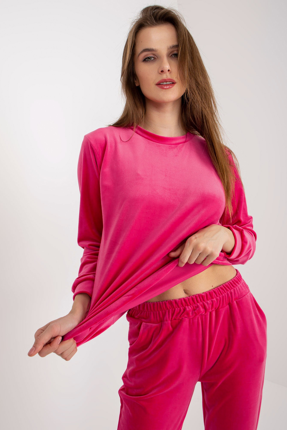 Fuchsiový dámský velurový set s mikinou Brenda RUE PARIS.