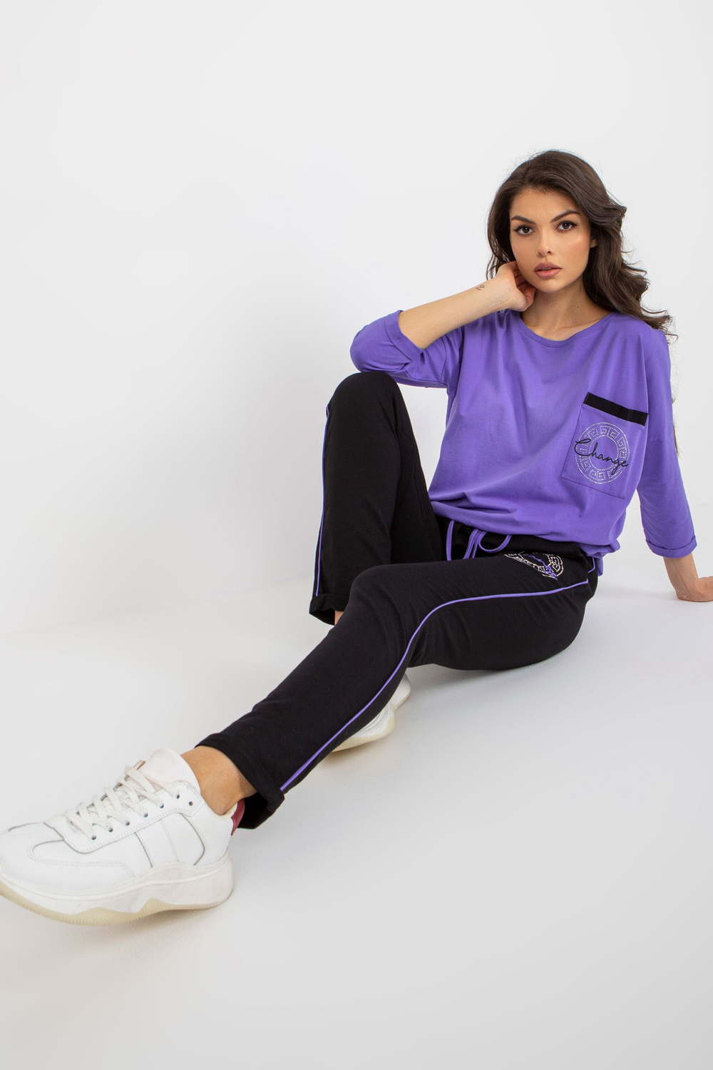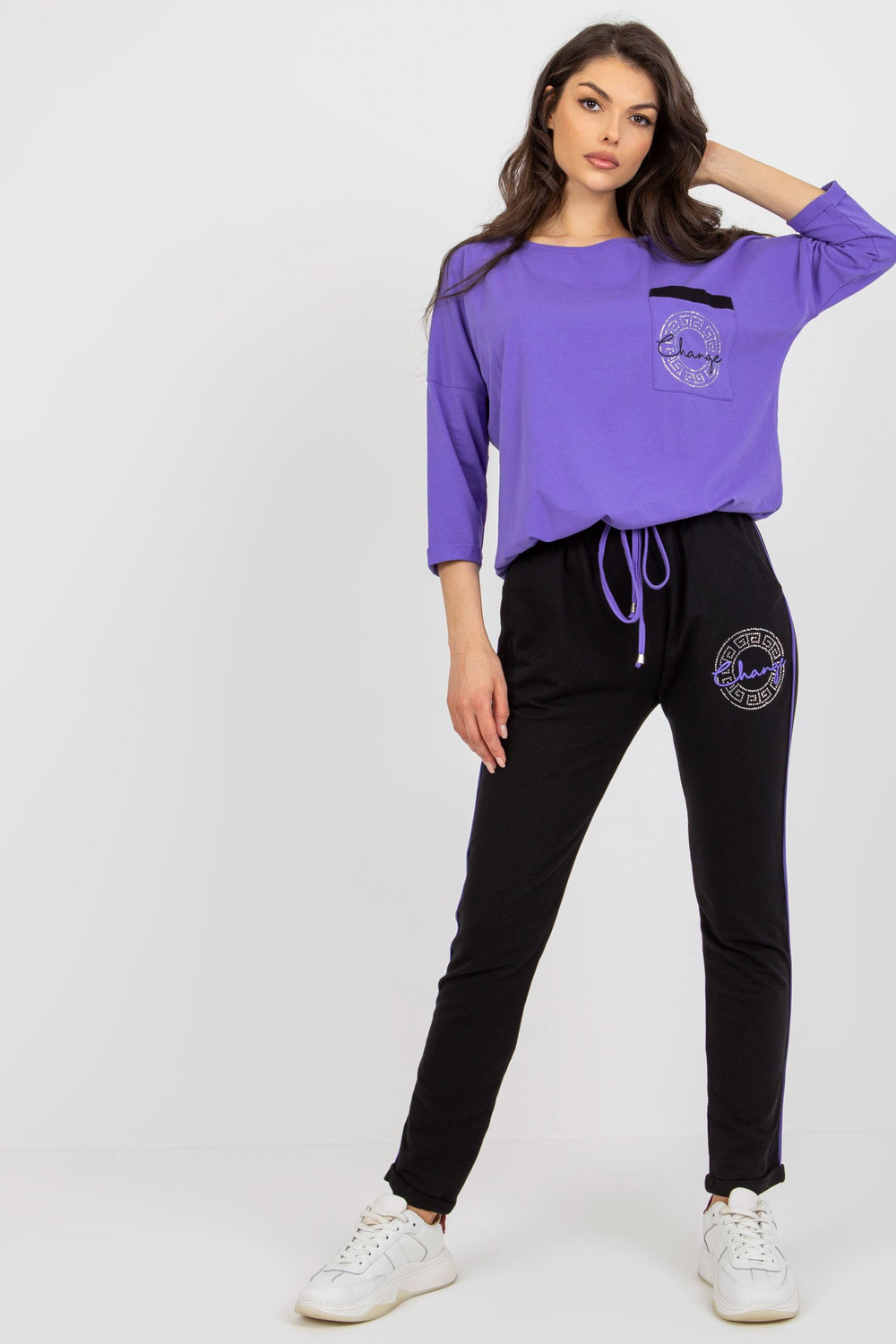 Fialová dvoudílná tepláková souprava s nášivkou.