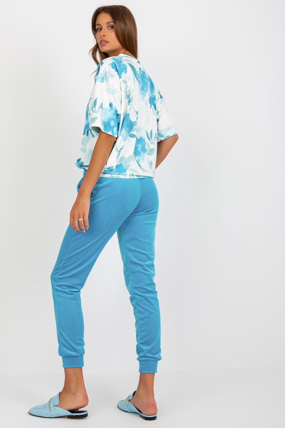 Rozměry setu ve velikosti S měříme naplocho: šířka halenky pod pažemi - 64 cm, délka halenky - 60 cm, šířka kalhot v pase - 33 cm, výška pasu - 28 cm, délka kalhot - 98 cm.