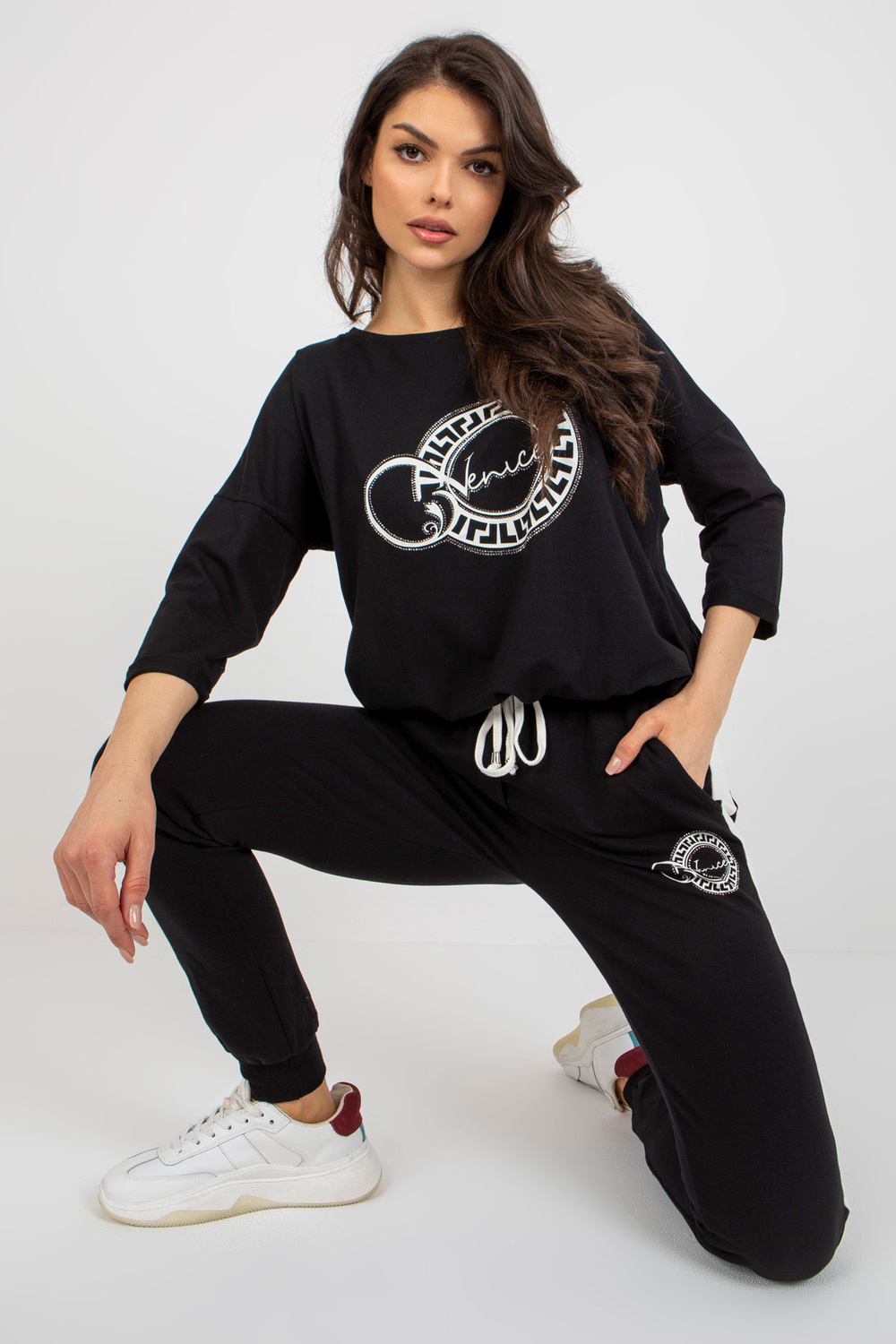 Černá dámská mikina s halenkou s 3/4 rukávem.