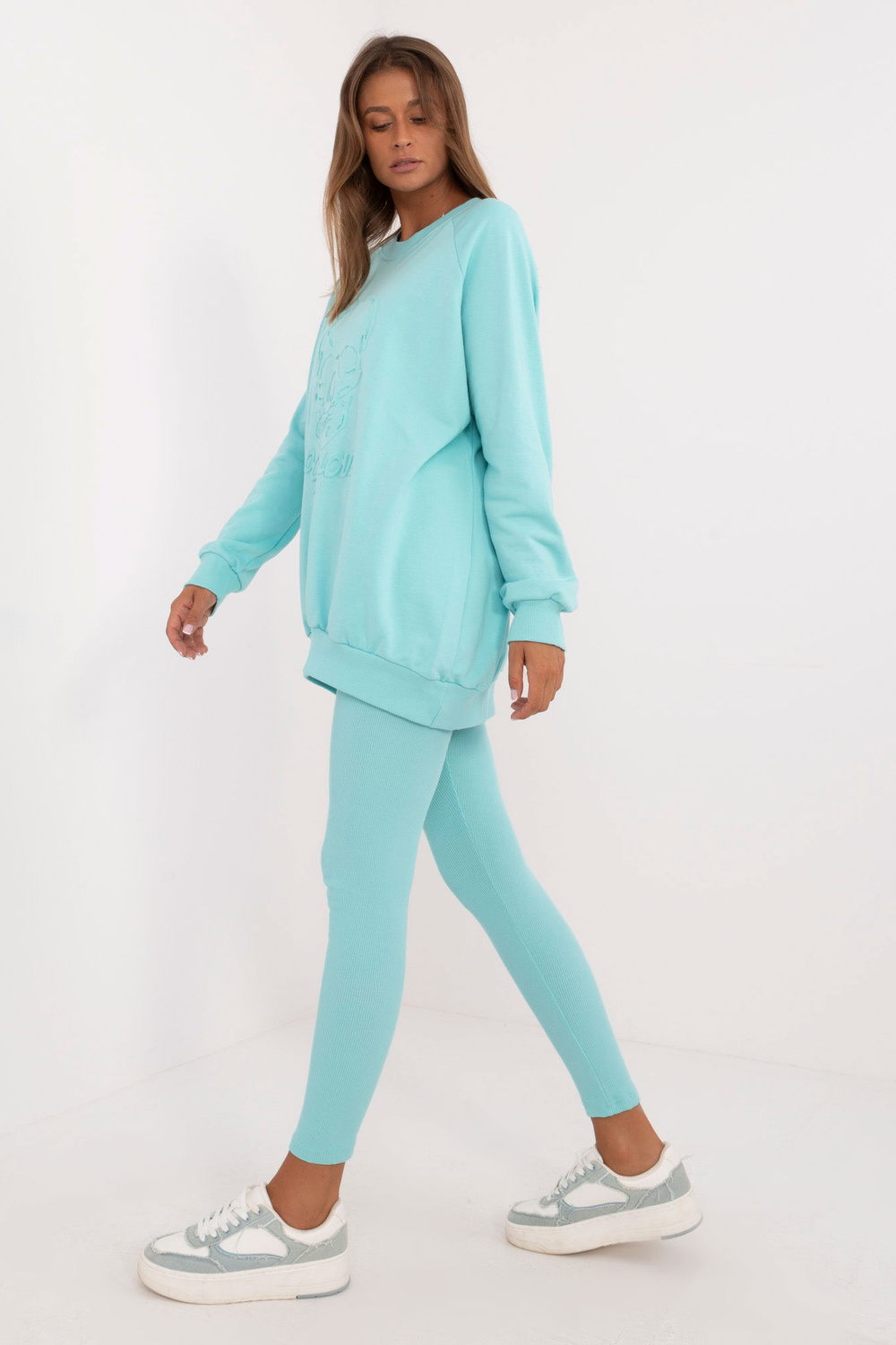 Rozměry kompletu v jedné velikosti, měřeno naplocho: šířka mikiny pod pažemi - 70 cm, délka mikiny - 74 cm, délka rukávu - 64 cm, šířka legín v pase - 30 cm, výška pasu - 28 cm, délka legín - 98 cm.