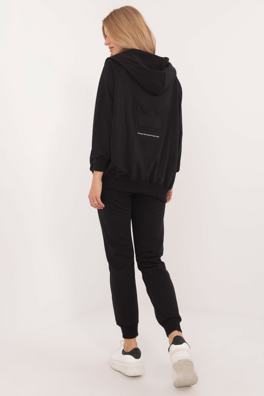 Rozměry kompletu ve velikosti one size, měřeno naplocho: šířka mikiny pod paže - 69 cm, délka rukávu - 60 cm, délka mikiny - 67 cm, šířka topu pod pažemi - 38 cm, délka topu - 45 cm, šířka nohavice - 31 cm, výška pasu - 32 cm (plochý), šířka pasu kalhot - 44 cm (po natažení), délka nohavic - 104 cm.