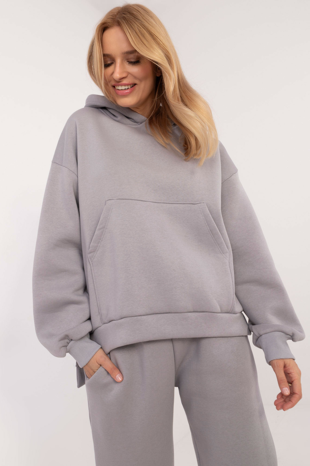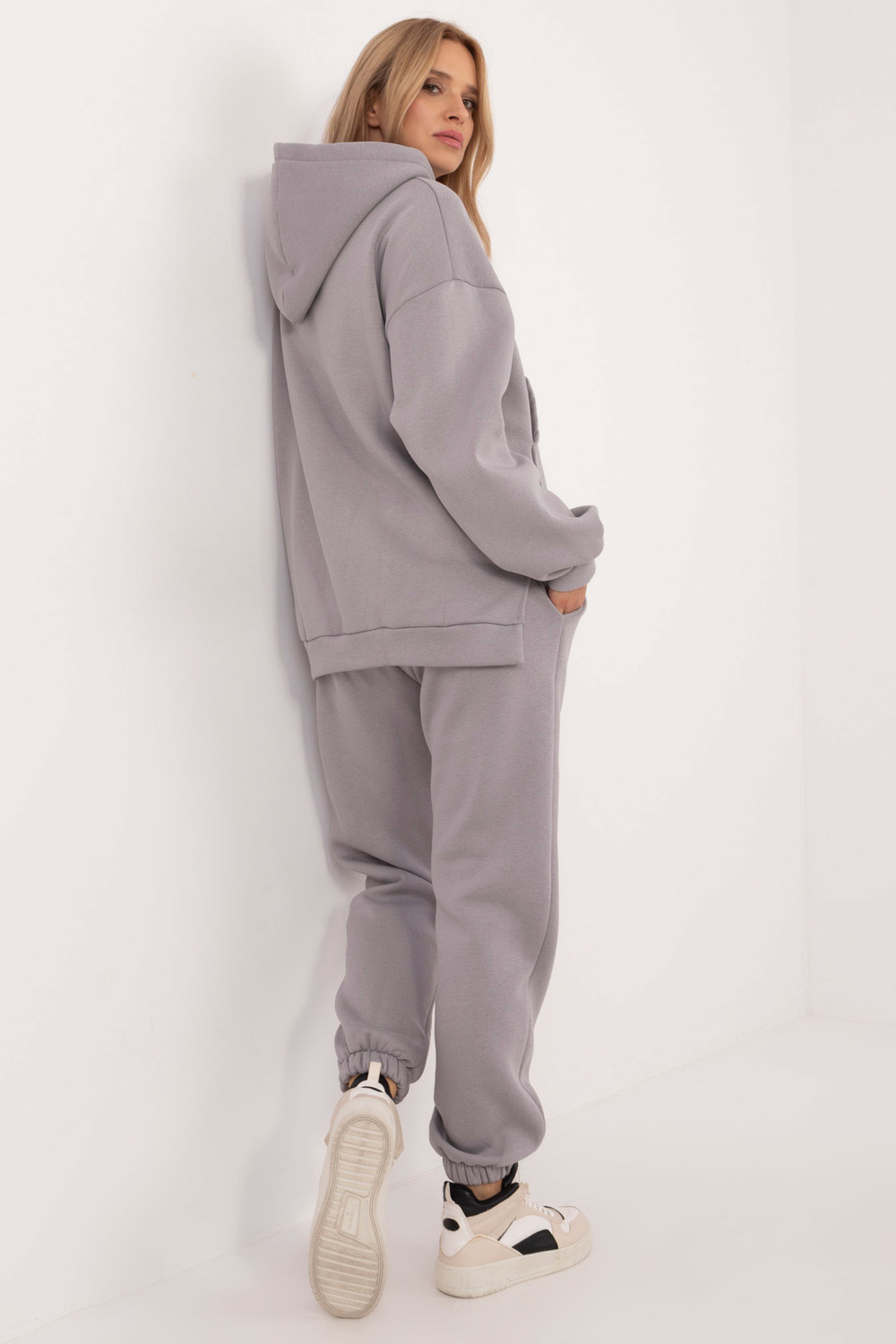 Rozměry kompletu ve velikosti one size, měřeno naplocho: šířka mikiny pod paže - 65 cm, délka mikiny - 74 cm, délka rukávu - 64 cm, šířka nohavice v pase - 34 cm, délka nohavice - 94 cm.