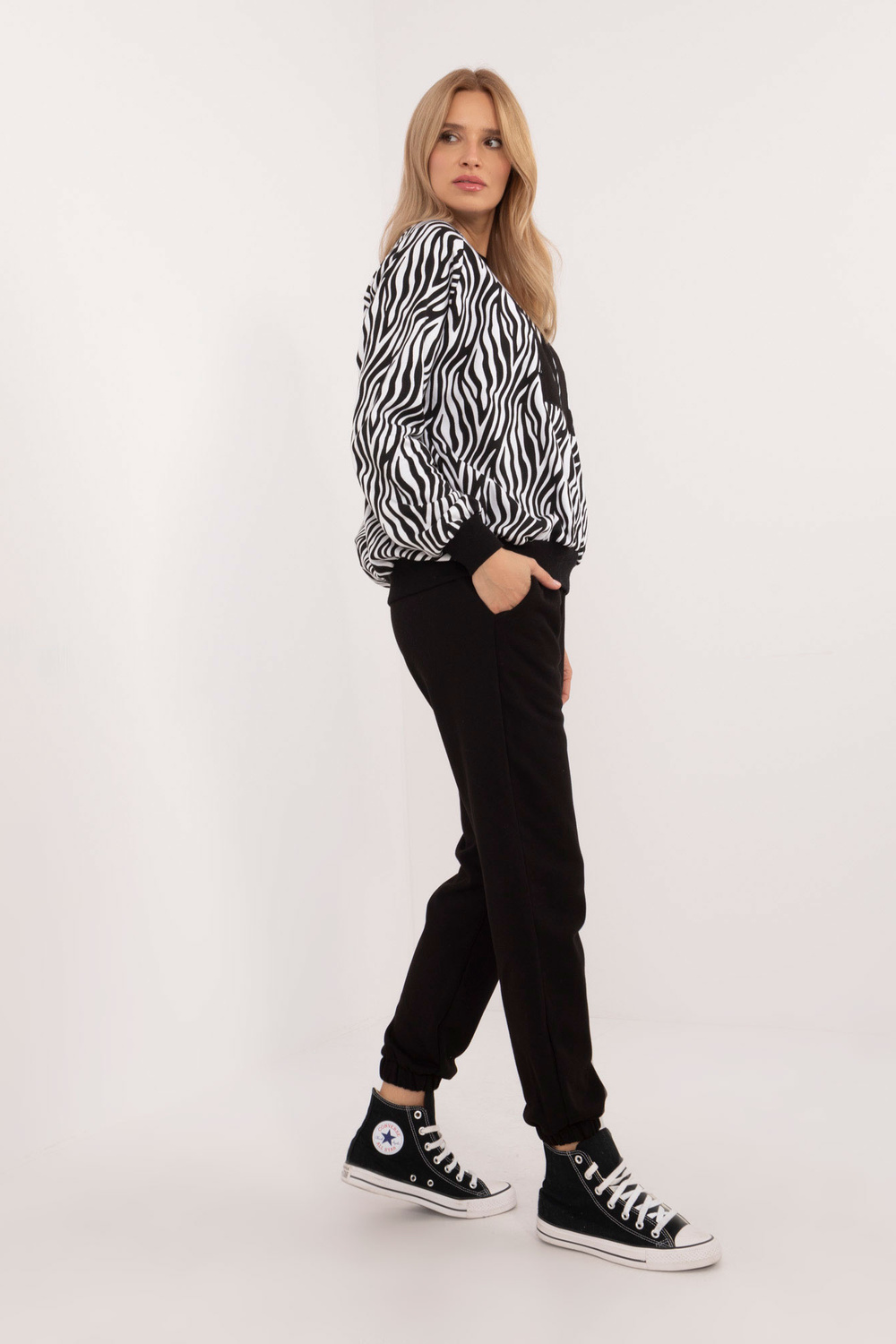 Rozměry kompletu ve velikosti one size, měřeno naplocho: šířka pod pažemi - 68 cm, délka mikiny - 64 cm, délka rukávu - 67 cm, šířka nohavice v pase - 30 cm, délka nohavice - 94 cm.