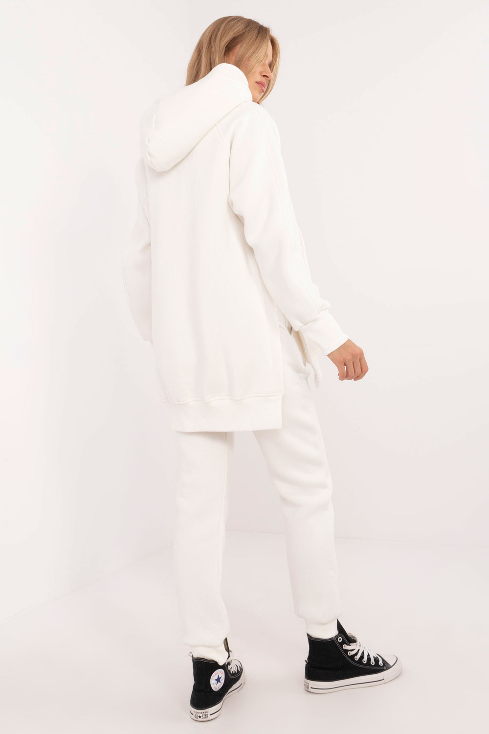 Rozměry kompletu ve velikosti one size, měřeno naplocho: šířka pod pažemi - 62 cm, délka mikiny - 77 cm, délka rukávu - 63 cm, šířka nohavice v pase - 32 cm (naplocho), šířka nohavice v pase - 44 cm (po natažení), délka nohavice - 99 cm.