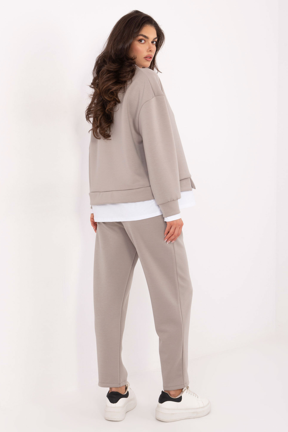 Rozměry kompletu univerzální velikosti: šířka pod paždími - 58 cm, délka blůzy - 64 cm, délka rukávu - 49 cm (od švu), šířka v oblasti boků - 59 cm, šířka pasu kalhot - 32 cm (v klidu), šířka pasu kalhot - 63 cm (natažené), šířka boků - 51 cm, délka kalhot - 96 cm.