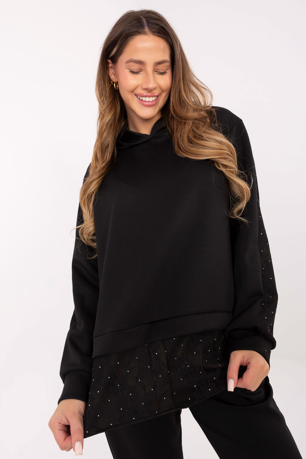 Rozměry kompletu jedné velikosti: šířka pod pažemi – 61 cm, délka svetru – 71 cm (přední část), délka svetru – 79 cm (zadní část), délka rukávu – 59 cm (od švu), šířka v bocích – 64 cm, šířka pasu kalhot – 34 cm (v leže), šířka pasu kalhot – 68 cm (natažené), šířka boků – 54 cm, délka kalhot – 98 cm.