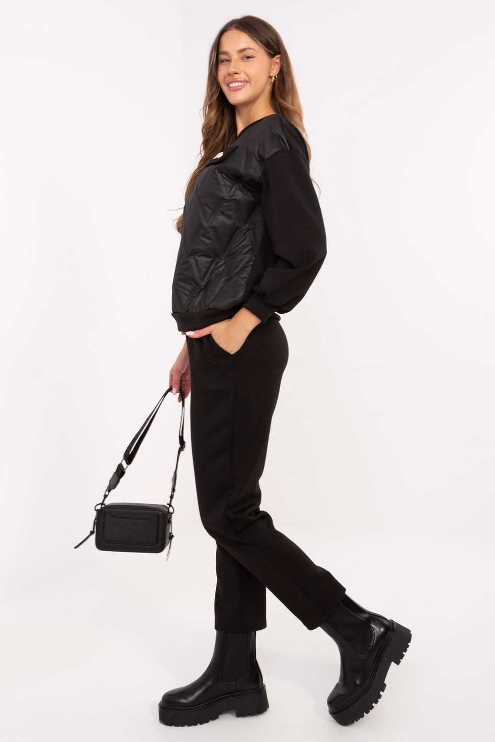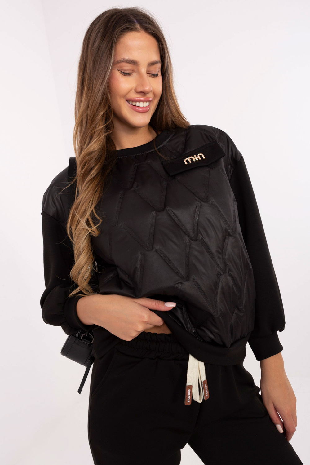 Model nosí oblečení jedné velikosti. Rozměry modelu: výška 176 cm, obvod hrudníku 90 cm, pas 62 cm, boky 94 cm.