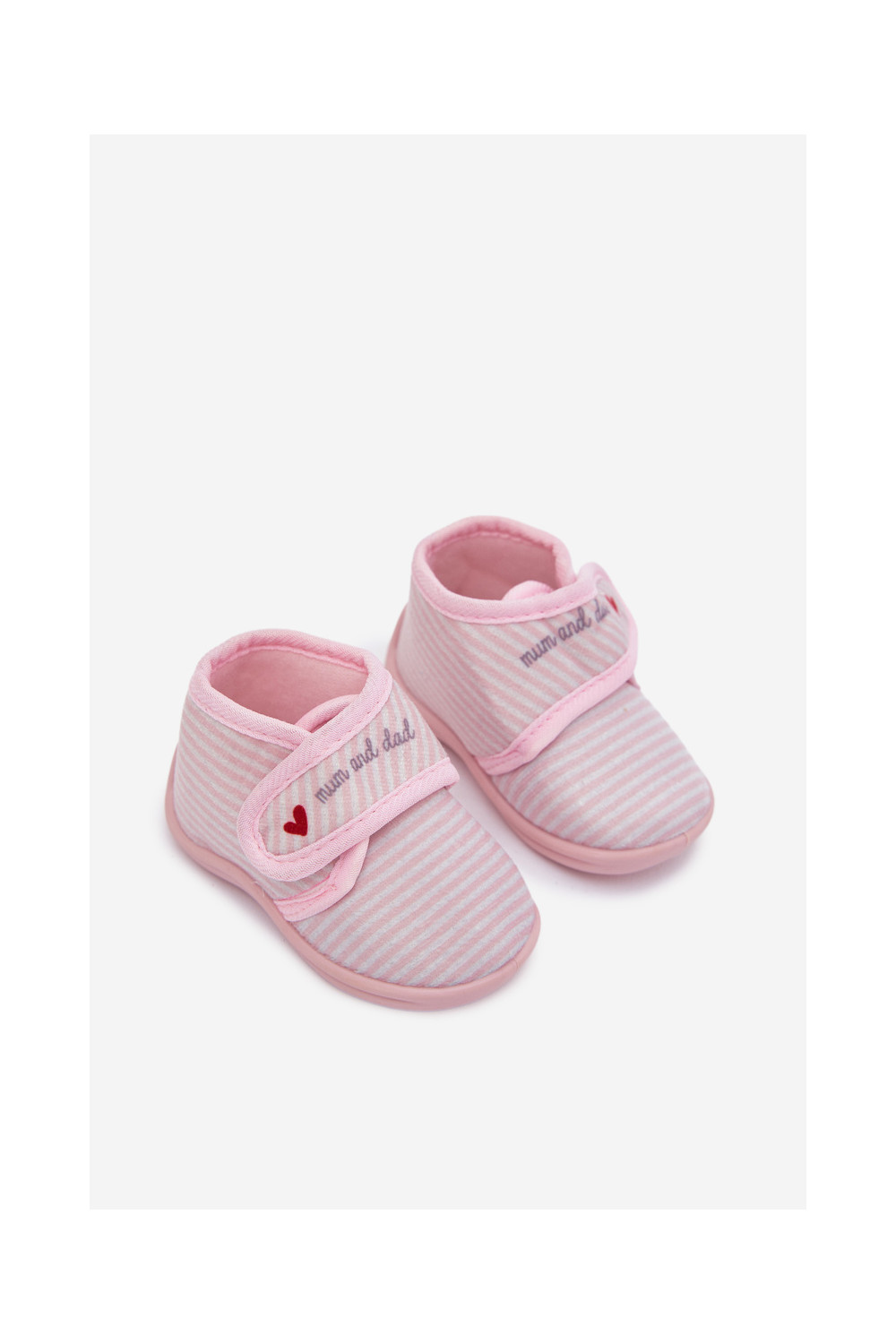 Pantofle Dětské se samolepicími uzávěry s pruhy světle růžová Lavelle