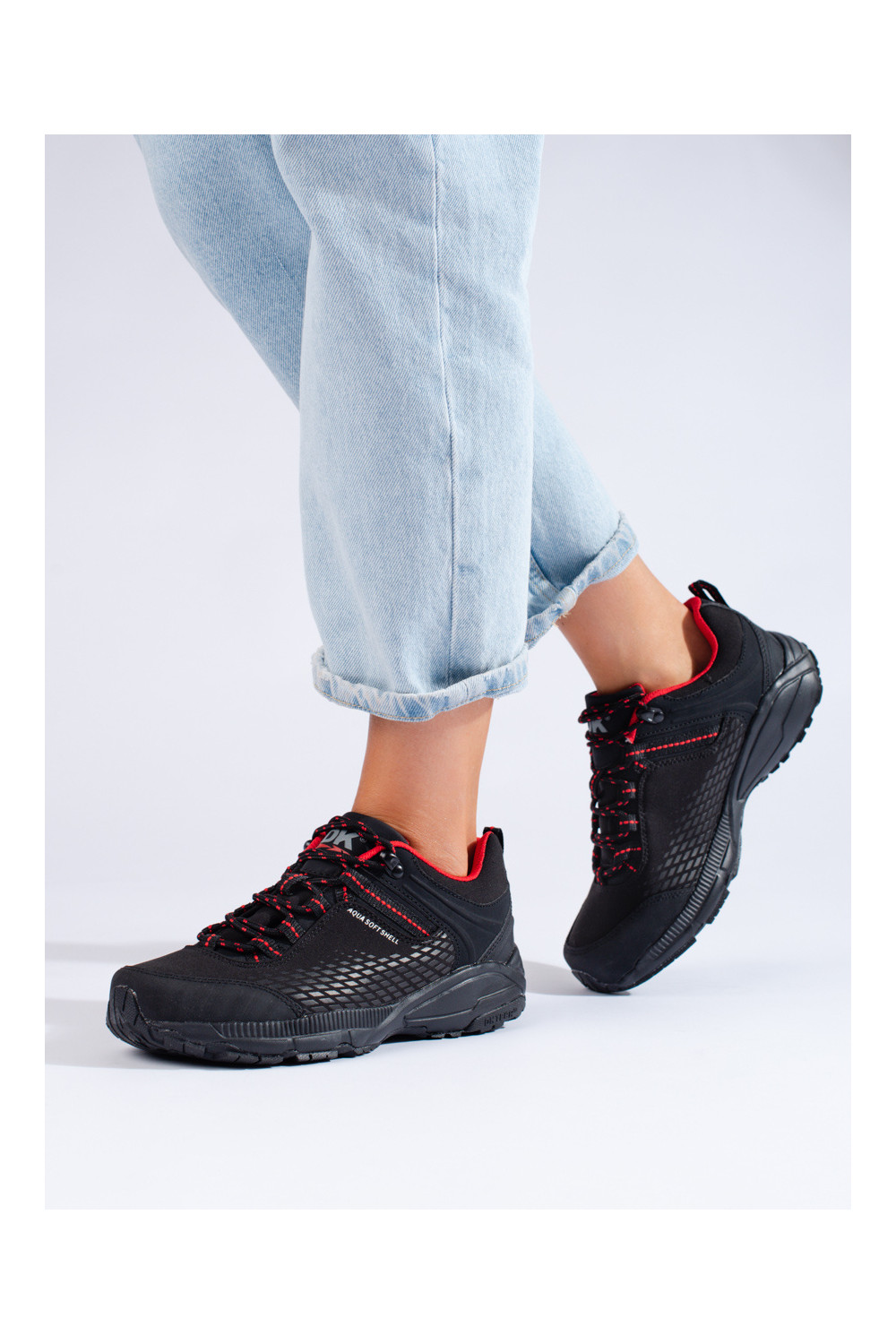 Dámské trekové boty na silné podrážce DK černo-červené