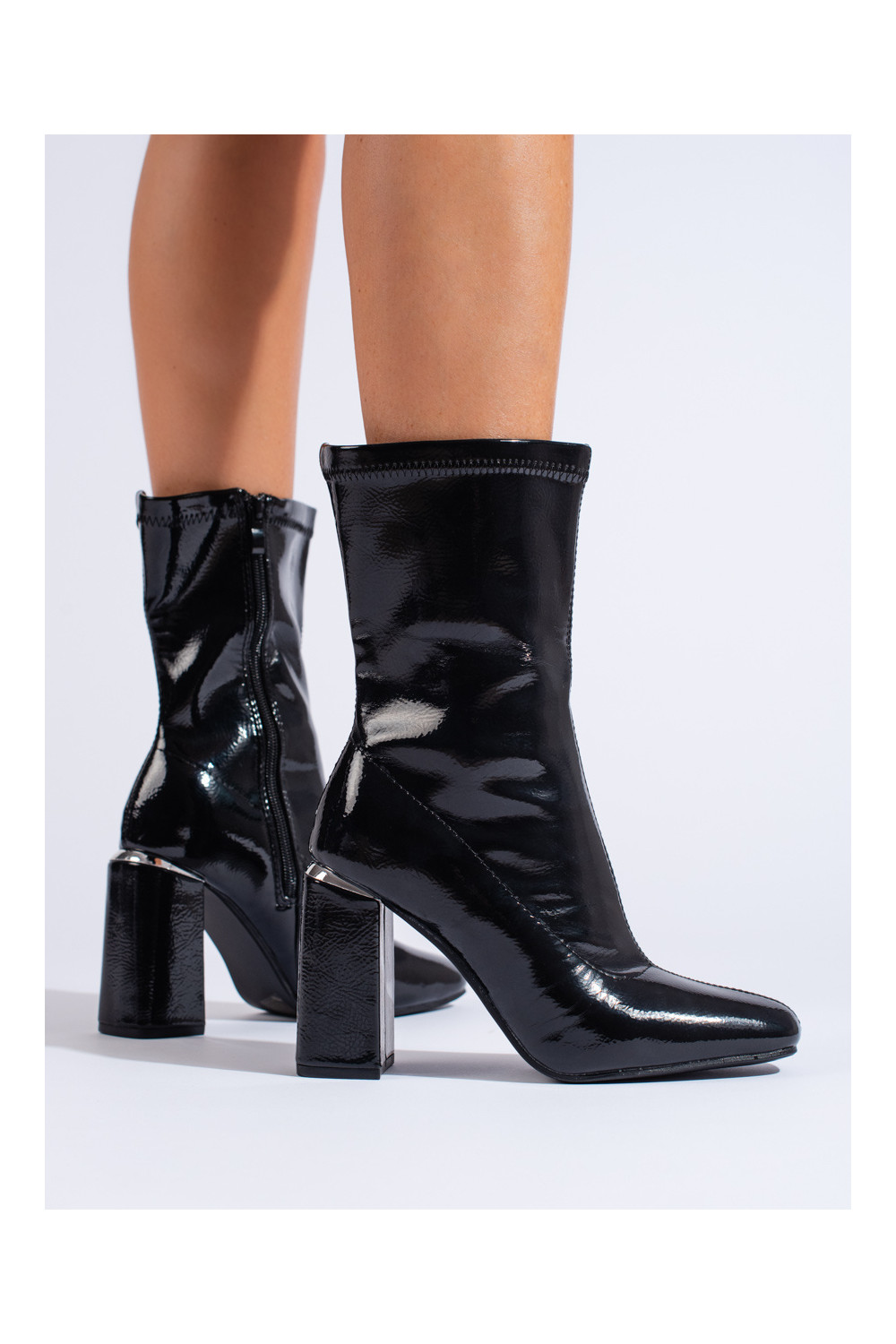 Dámské kozačky na sloupku z lakované ekologické kůže