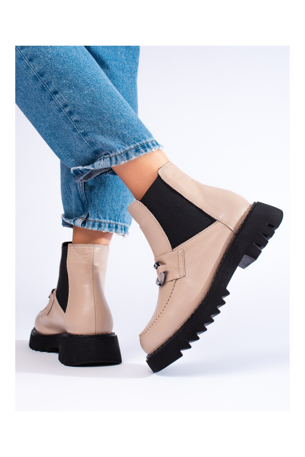 Dámské kožené kozačky na platformě