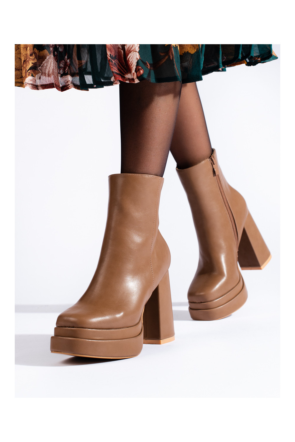 Tmavě béžové kotníkové boty na vysokém podpatku