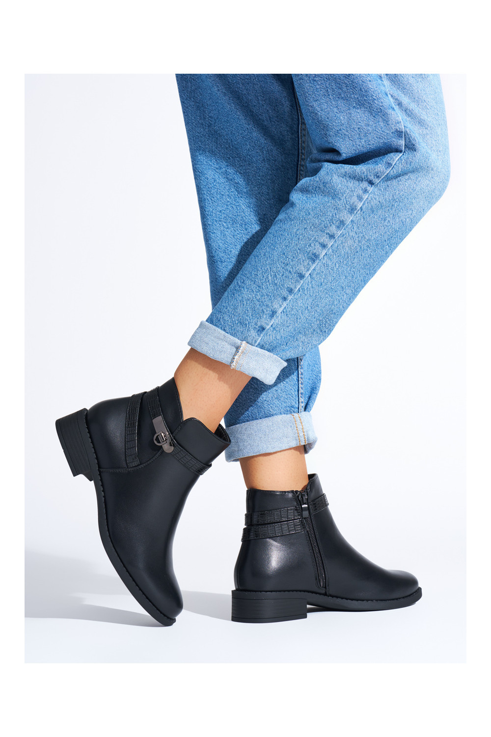 Černé kotníkové boty dámské na nízkém podpatku