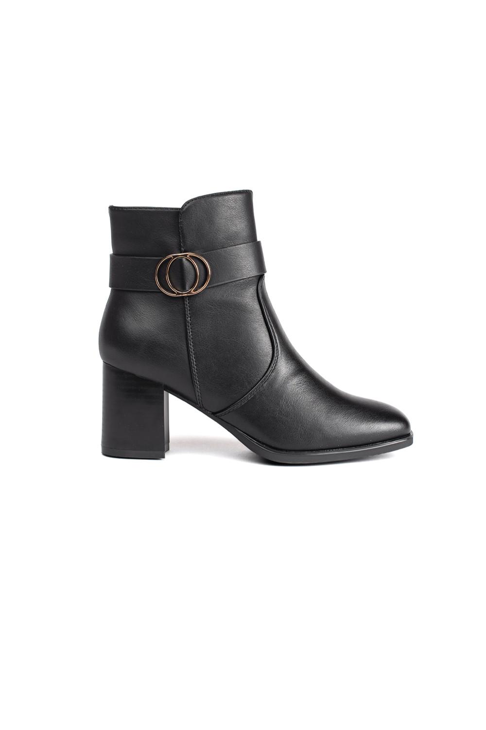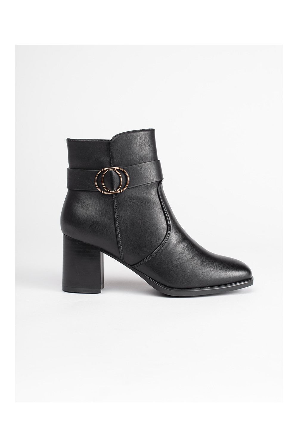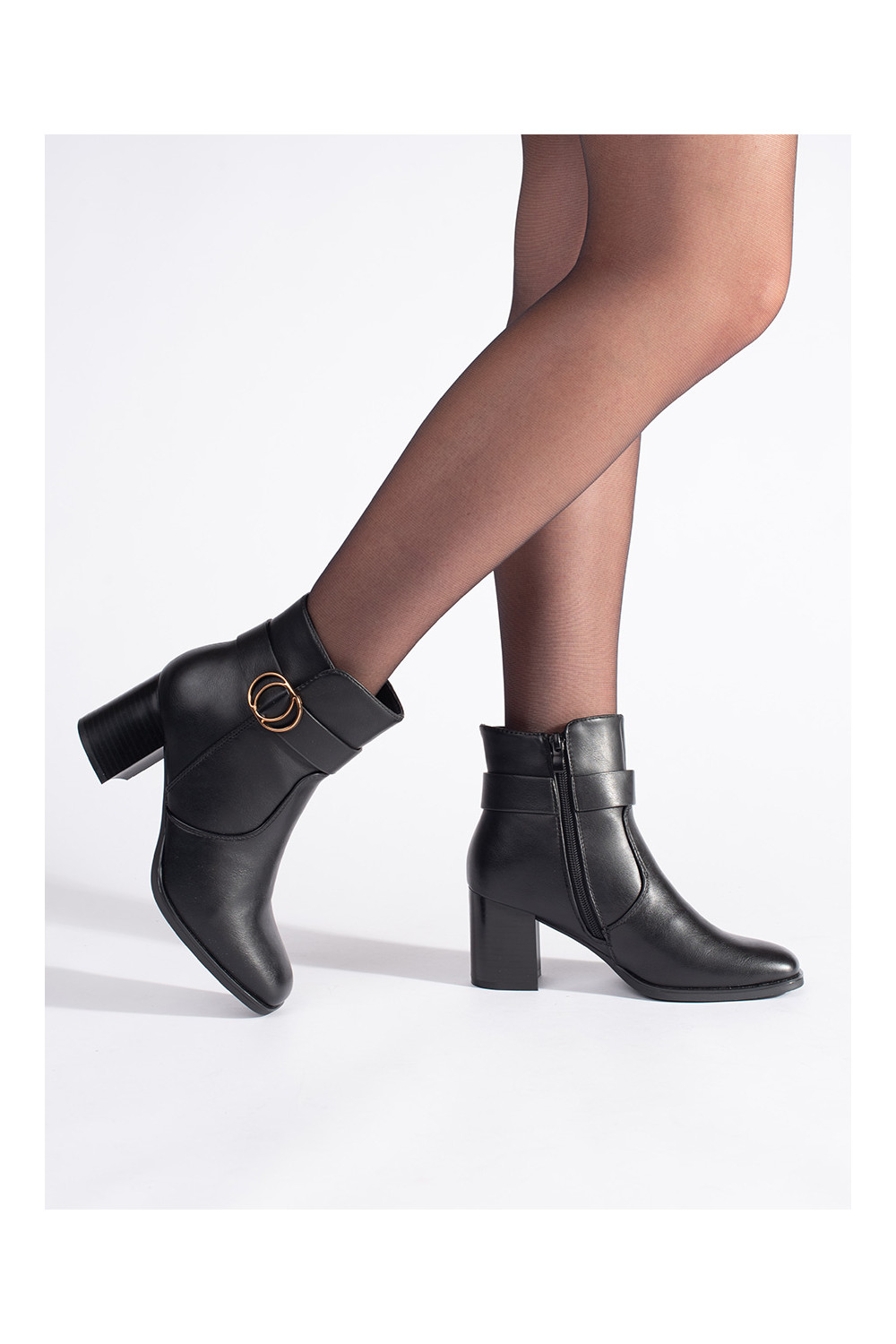 Černé kotníkové boty na sloupku s hranatou špičkou