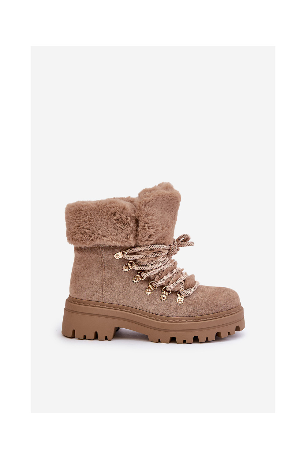Dámské boty vyrobené z eko semiše jsou skvělou volbou na chladné dny. Šněrování umožňuje přesné přizpůsobení boty noze, což zajišťuje pohodlí při každodenním nošení. Vnitřek zateplený obuvnickou vlnou zaručuje teplo a komfort i v mrazivých dnech. Horní část svršku je ozdobena měkkým kožíškem, který nejen přidává styl, ale také chrání před zimou. Tyto boty spojují funkčnost a módní vzhled, ideálně se hodí jak do městských stylizací, tak na zimní procházky. Při výběru velikosti se řiďte tabulkou velikostí.