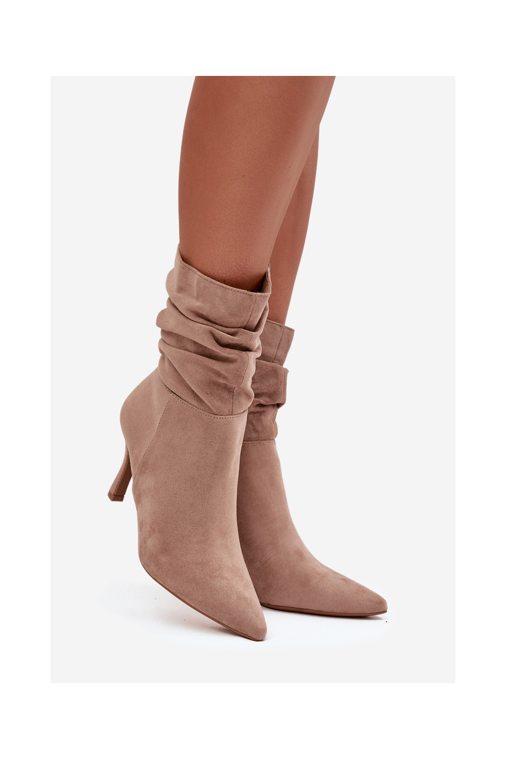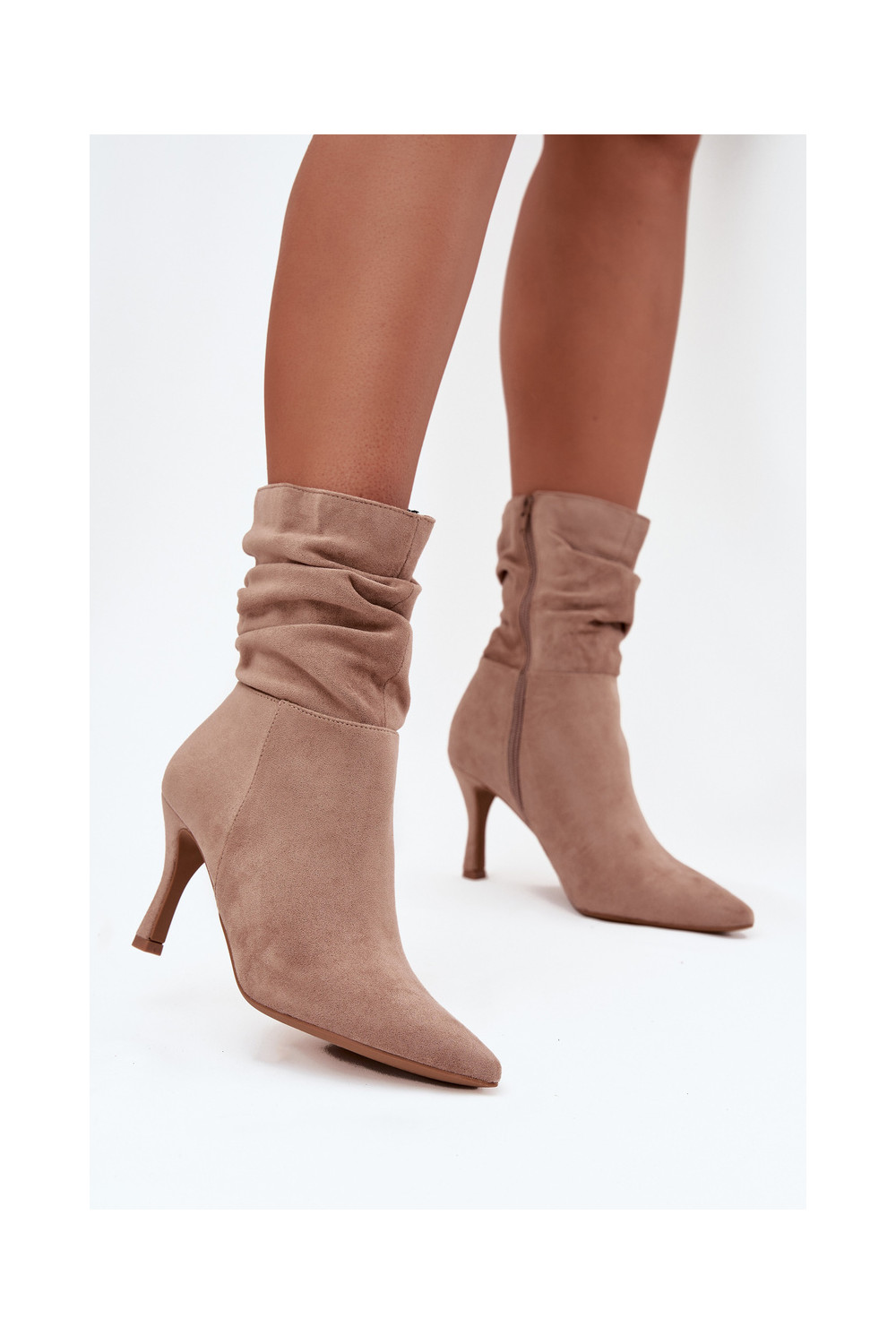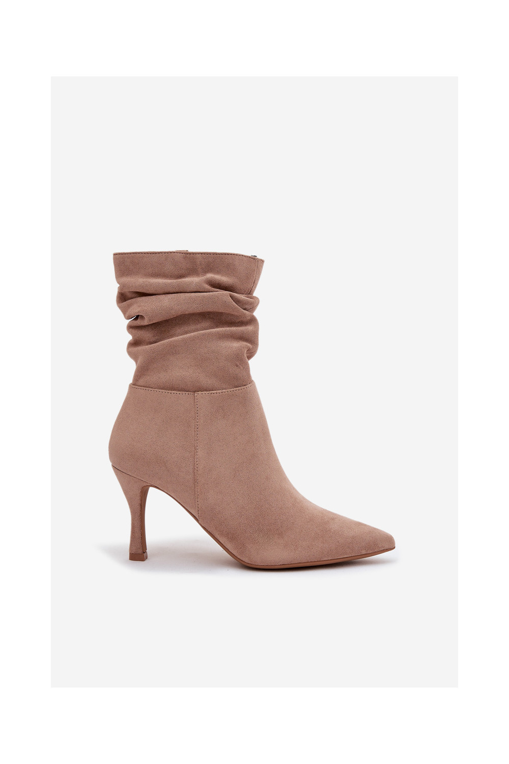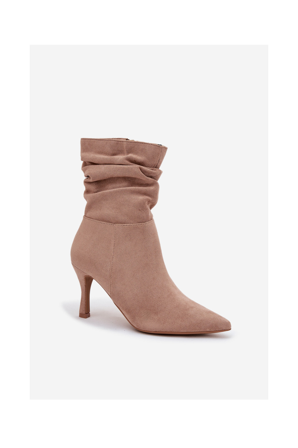 Dámské podpatky s tenkými podpatky s vrásčitou podrážkou z eko semišeowe béžové Ulisse