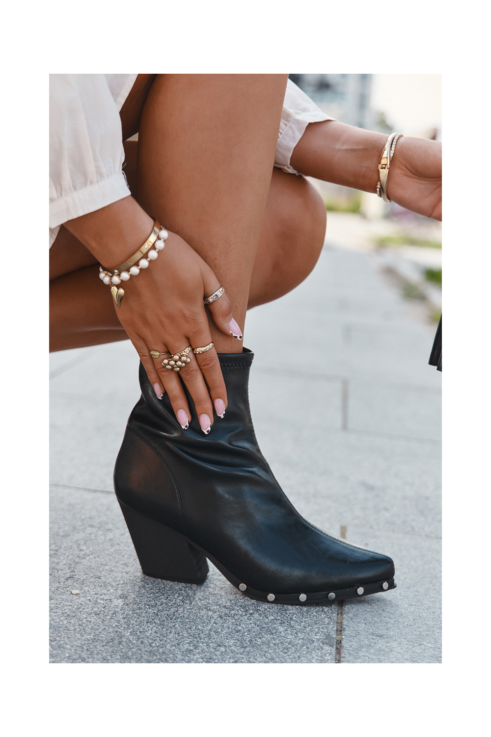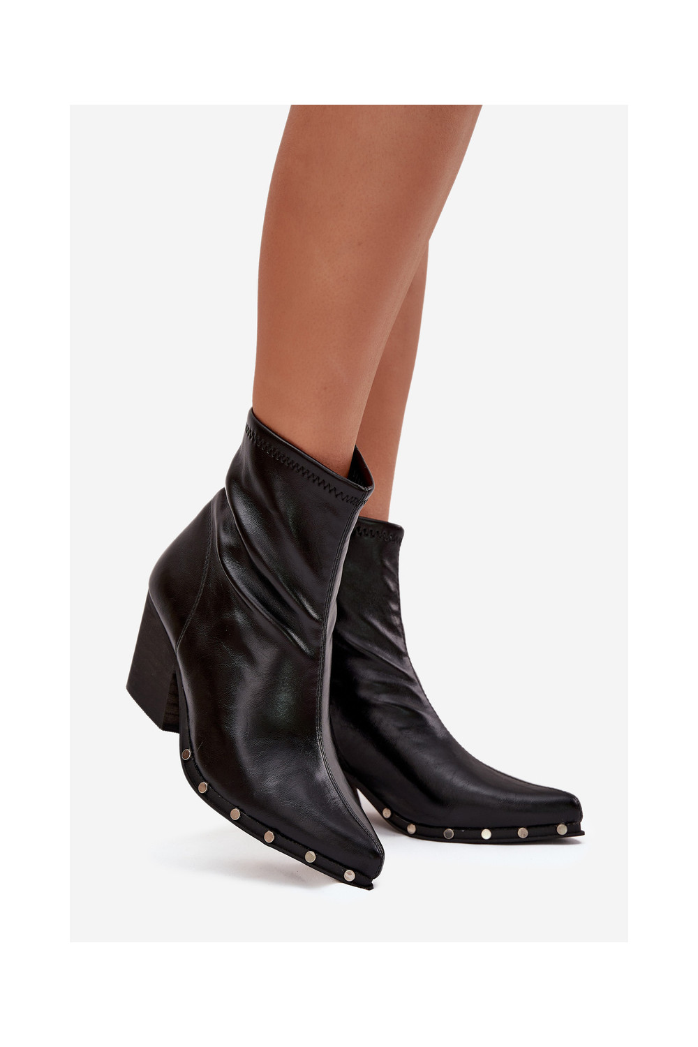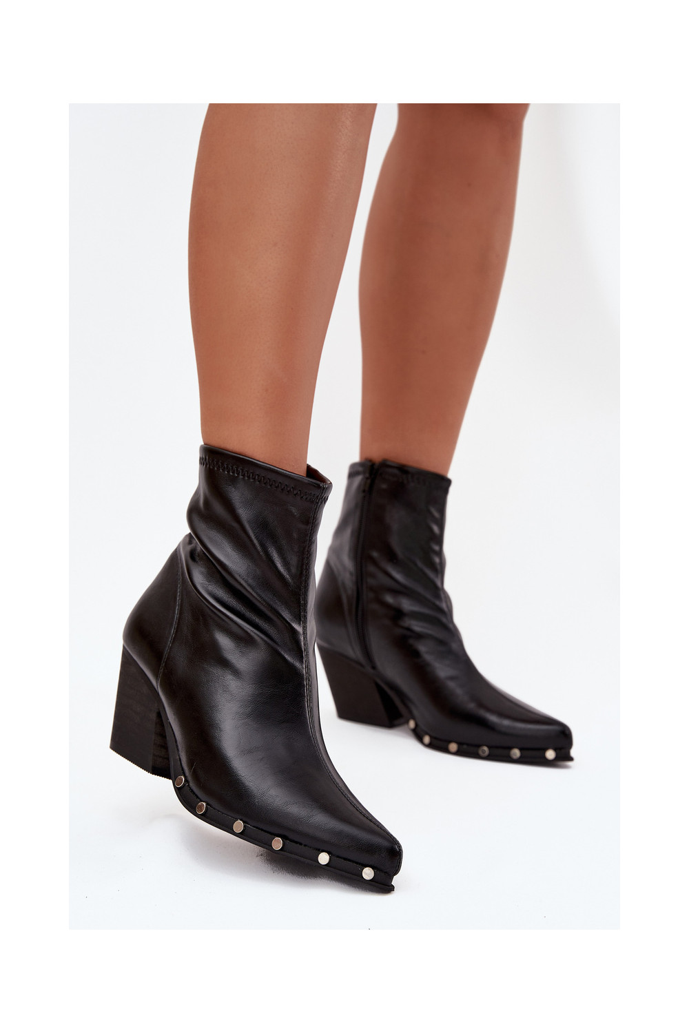 Boty v kovbojském stylu z ekologické kůže s podpatky Černé Abrielle