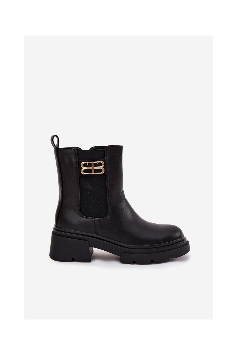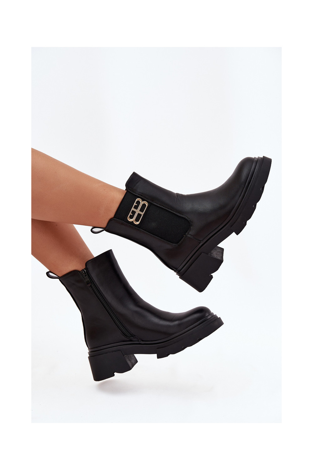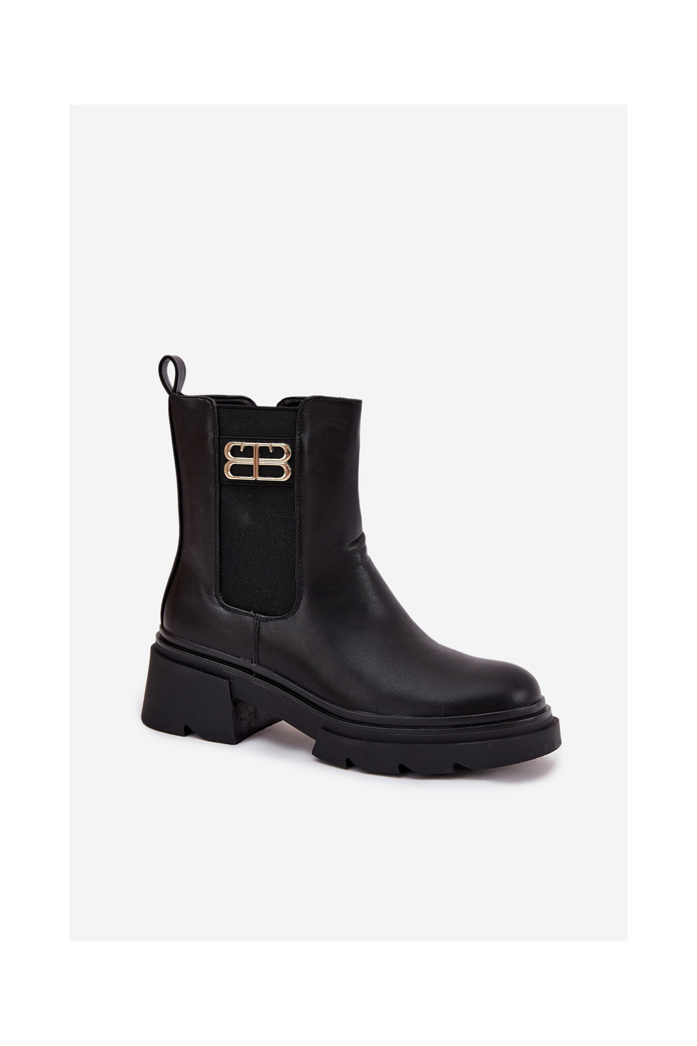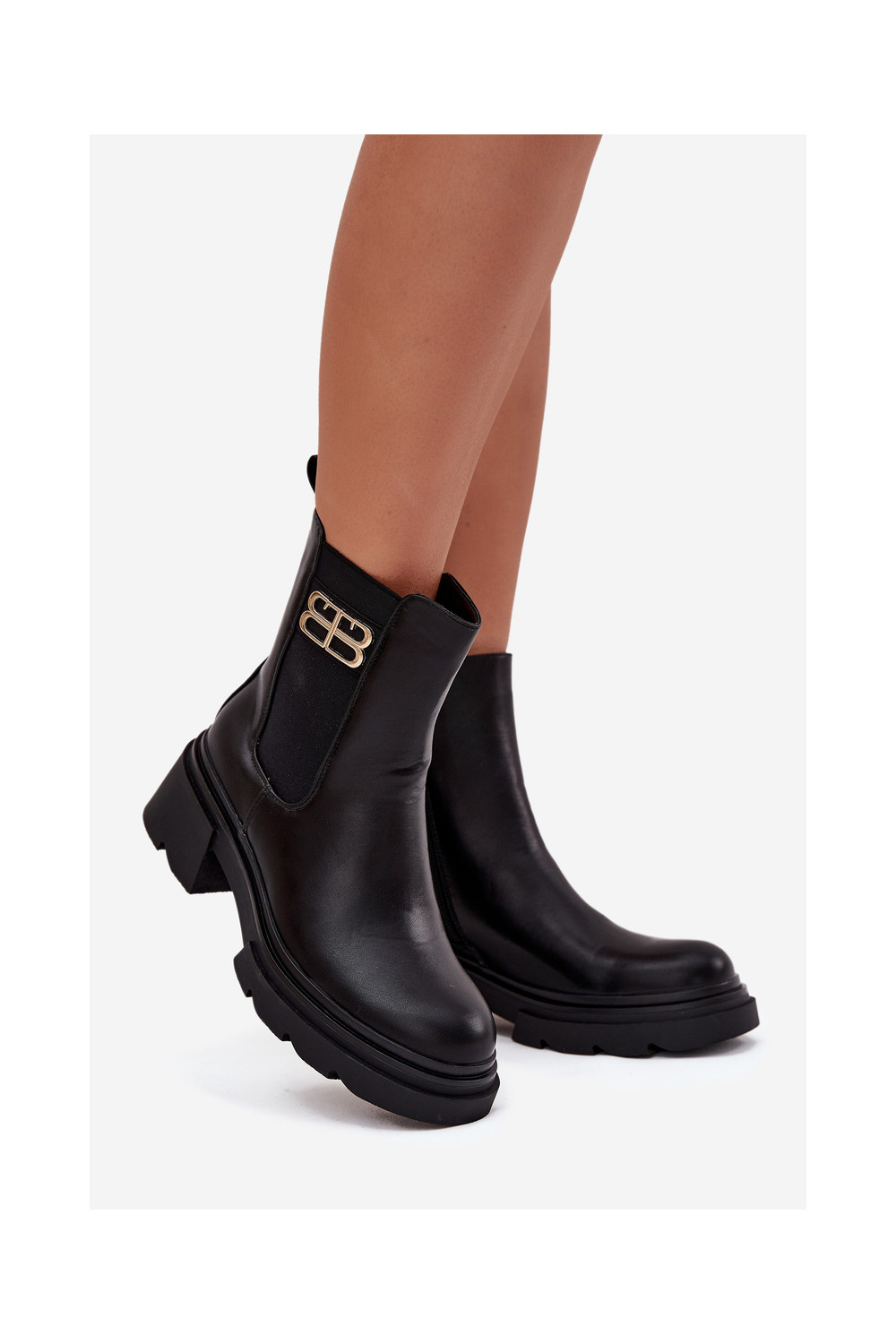 stylové podpatky Ze zlaté barvym Detalem zateplené Černé Serene