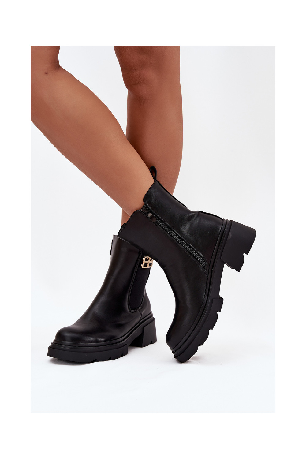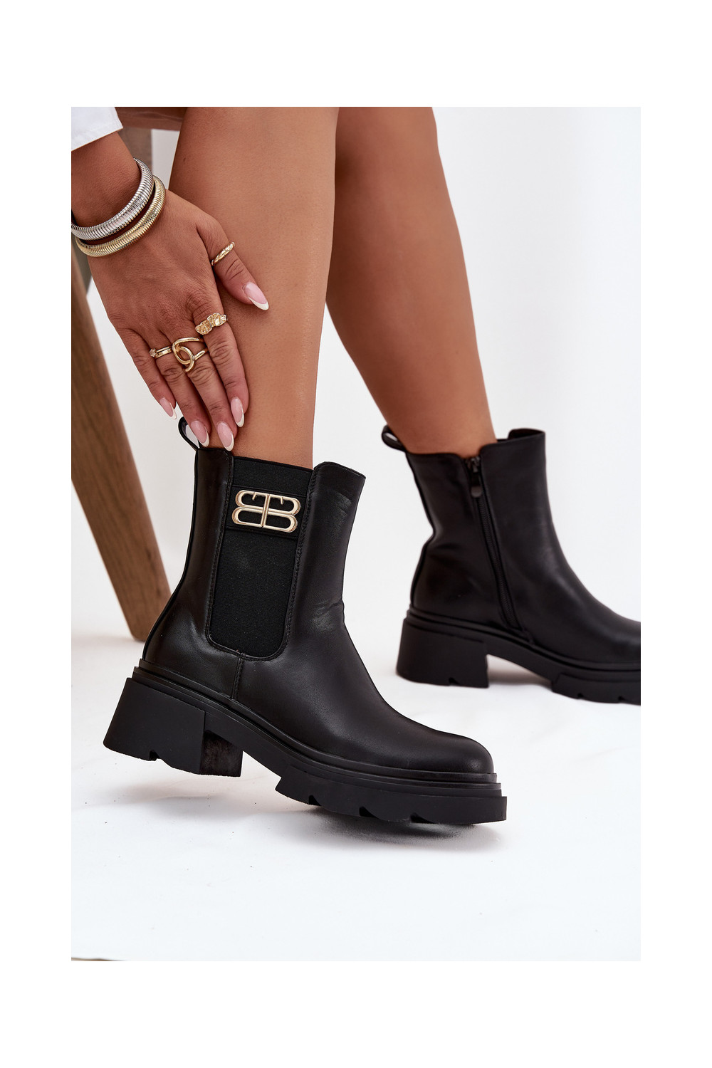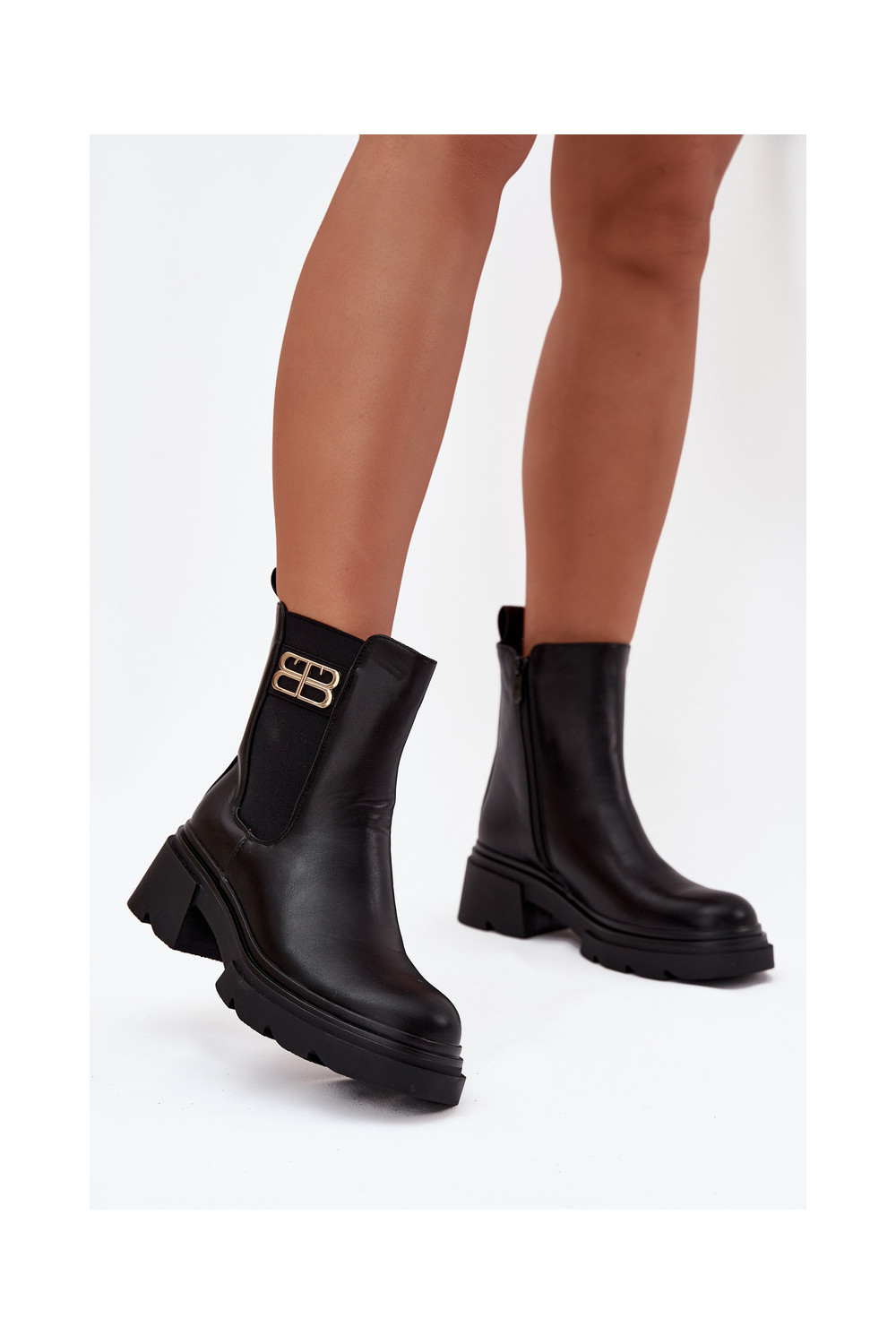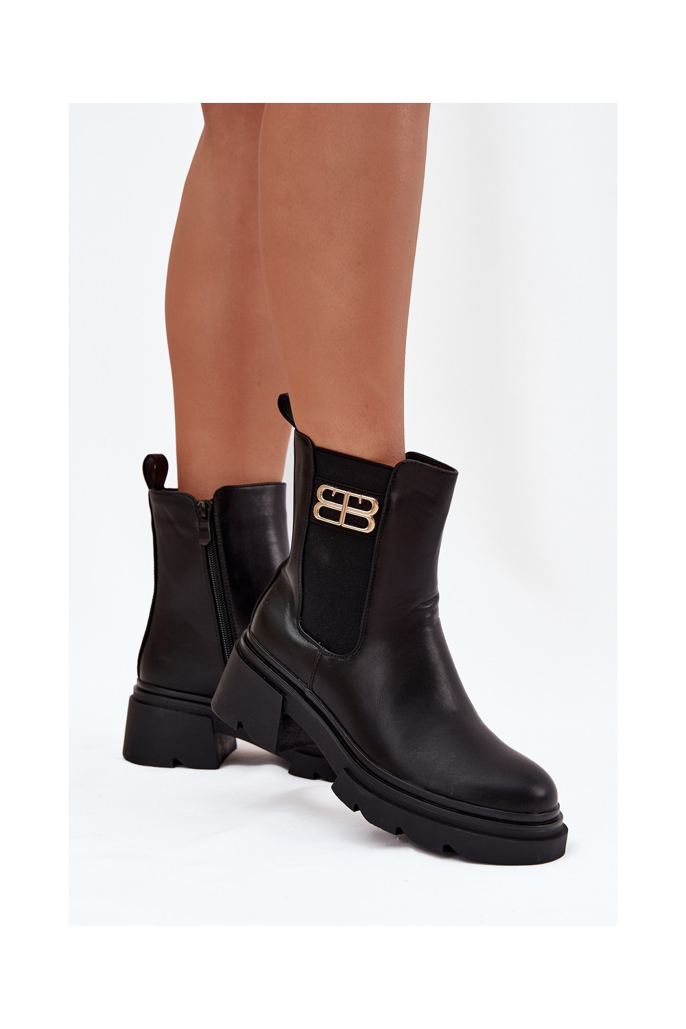 stylové podpatky Ze zlaté barvym Detalem zateplené Černé Serene