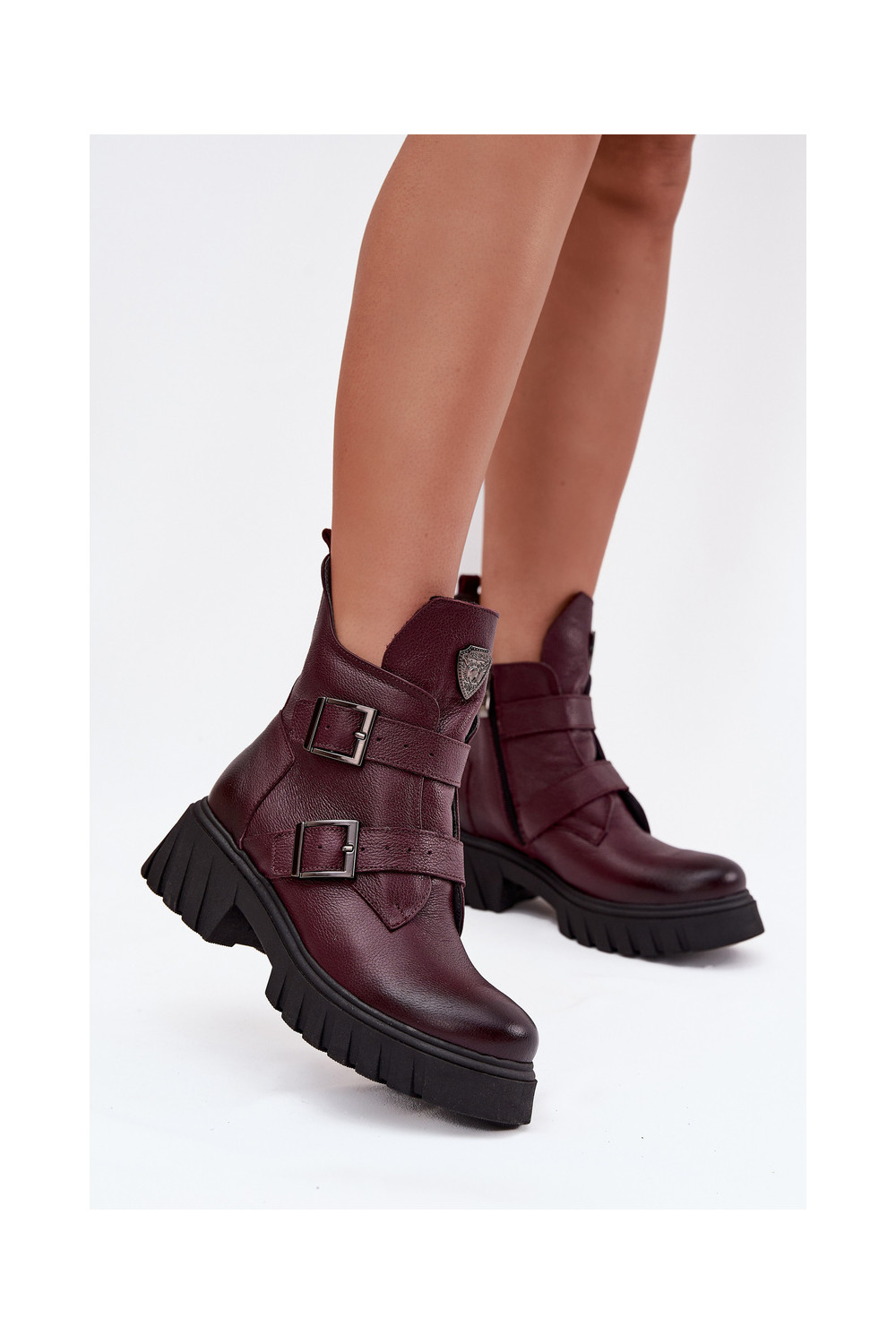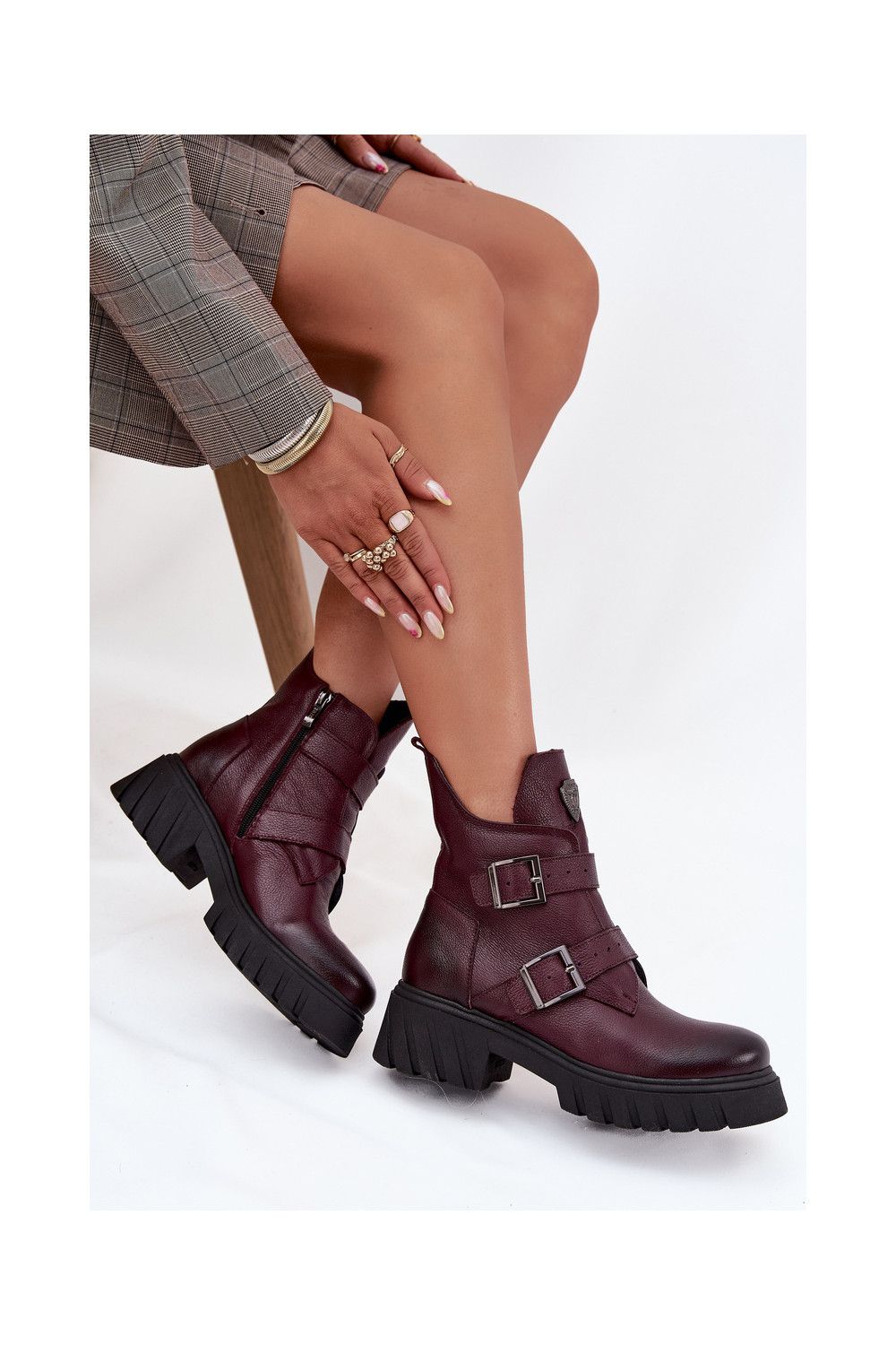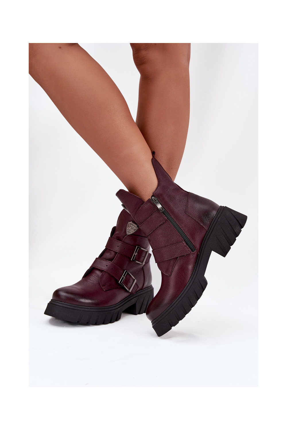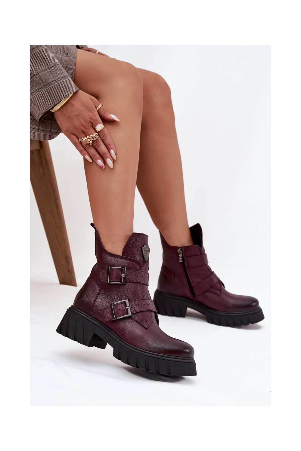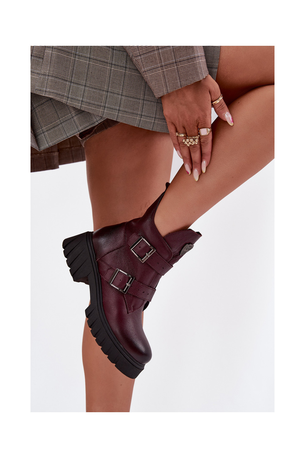 zateplené Dámské podpatky s přezkami I Ozdobnym Detalem Zazoo 60482 vínová
