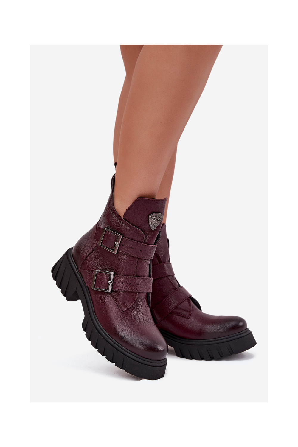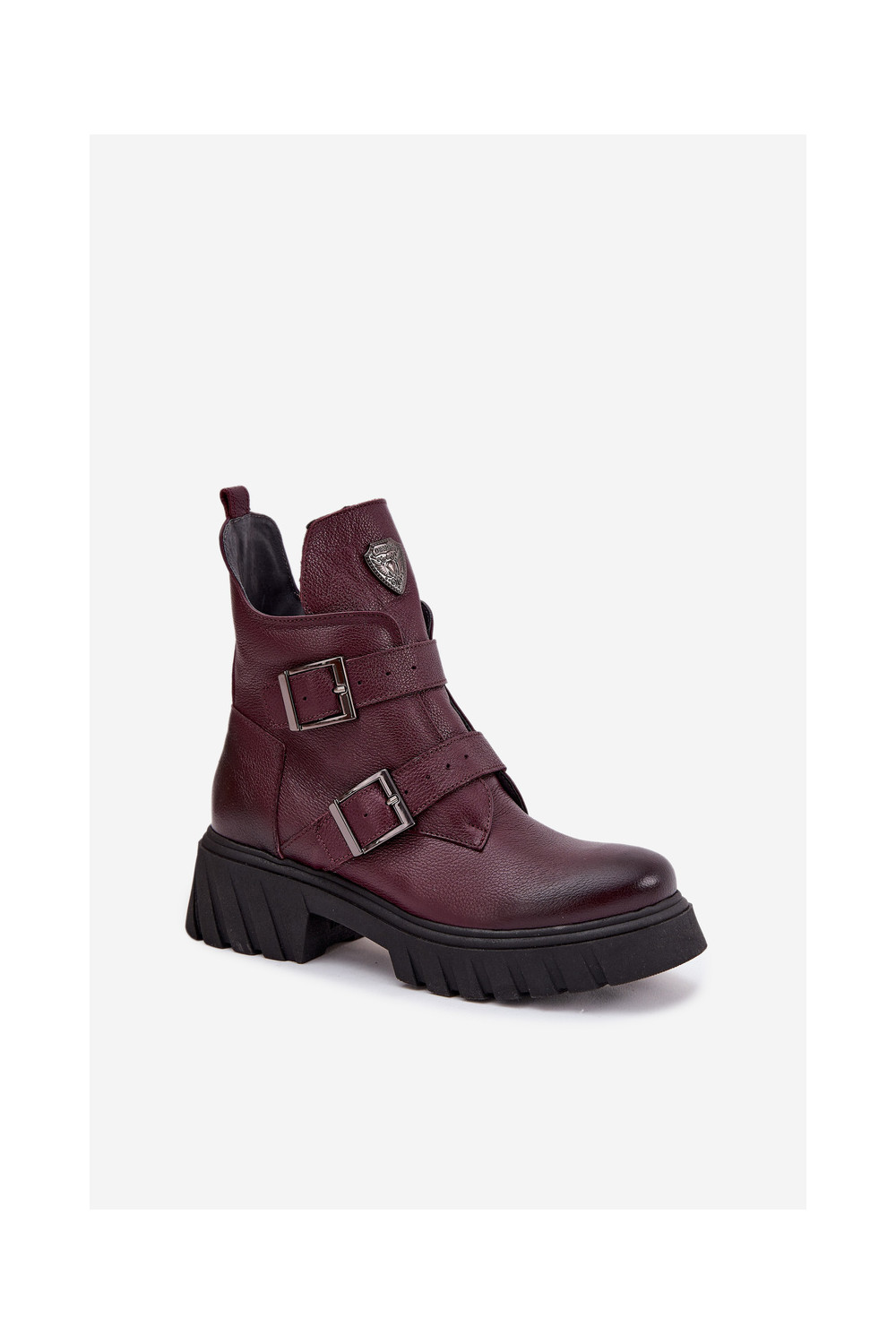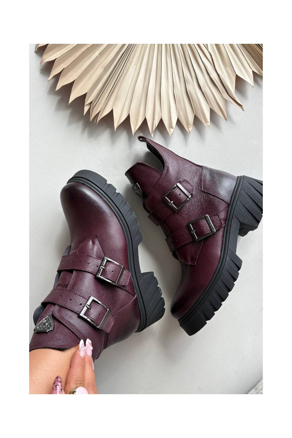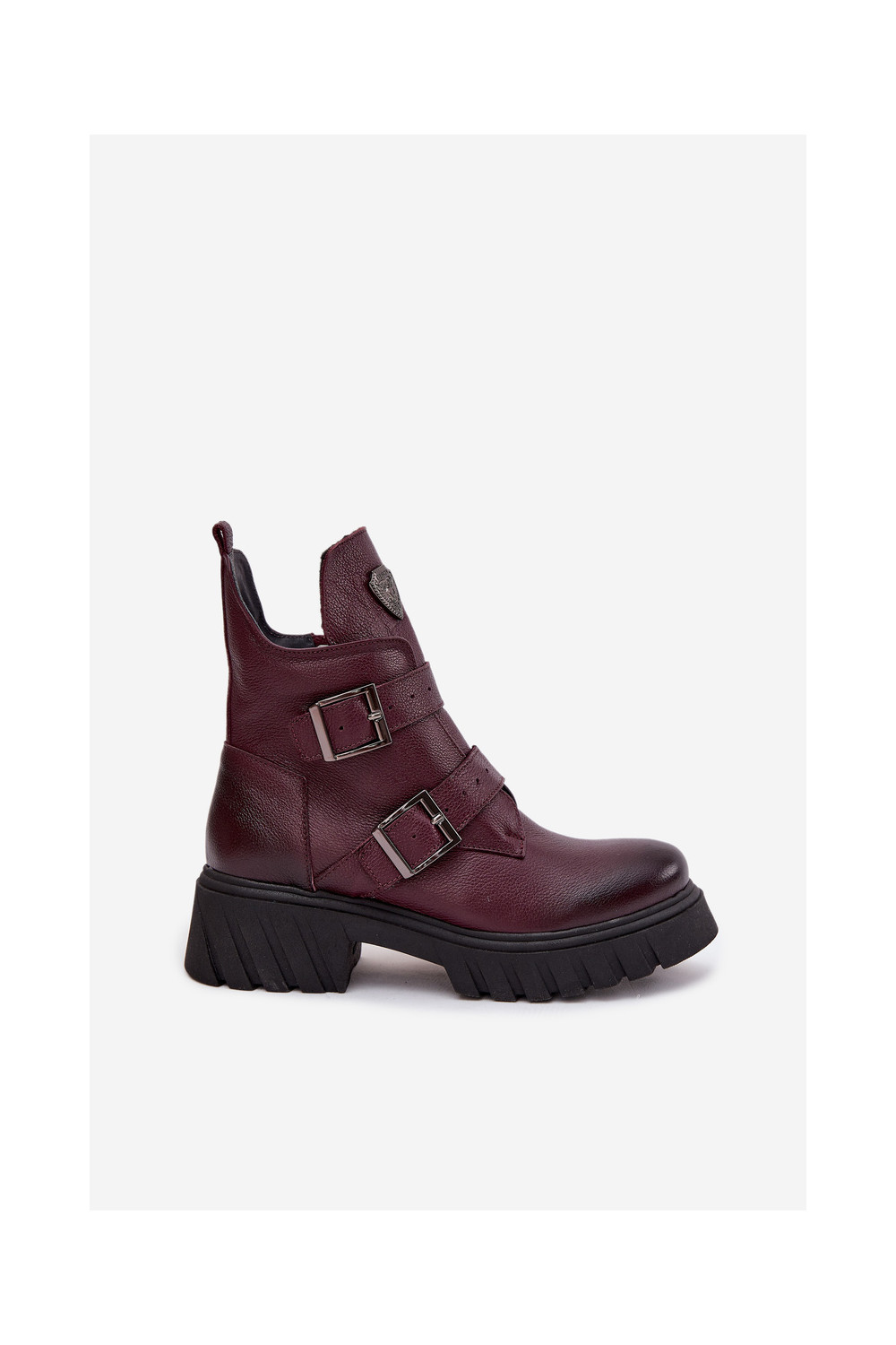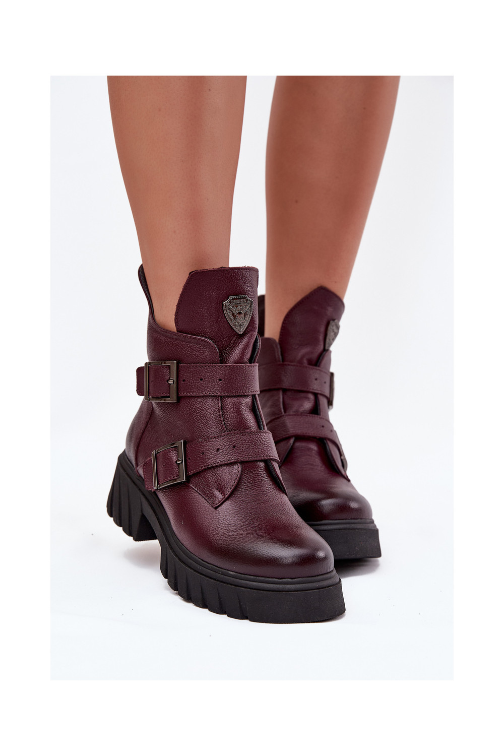zateplené Dámské podpatky s přezkami I Ozdobnym Detalem Zazoo 60482 vínová