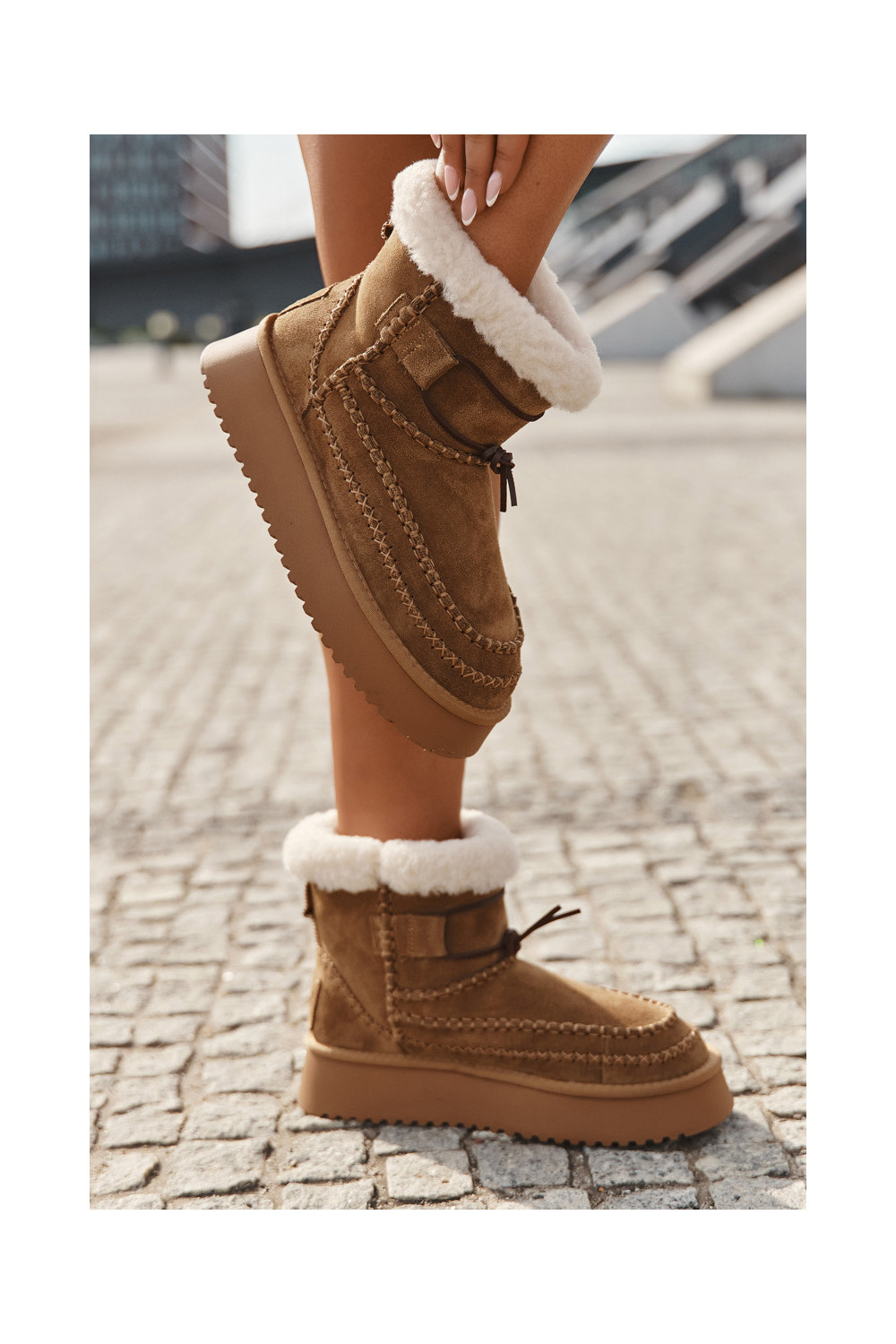 ze semiše Sněhule Przeszyciami Big Star SS274373 Camel
