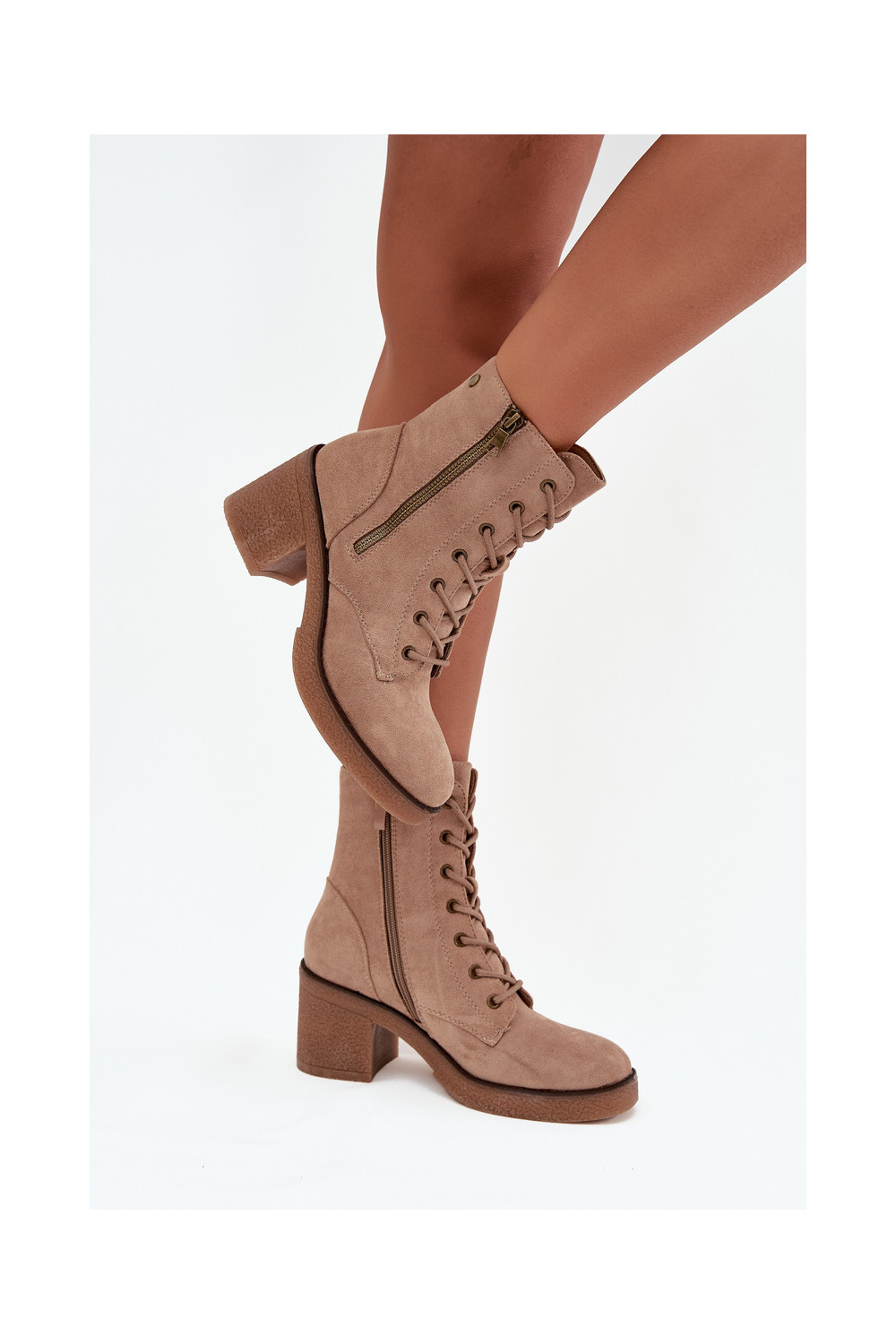 zateplené Dámské podpatky a zipyami béžové Paressa