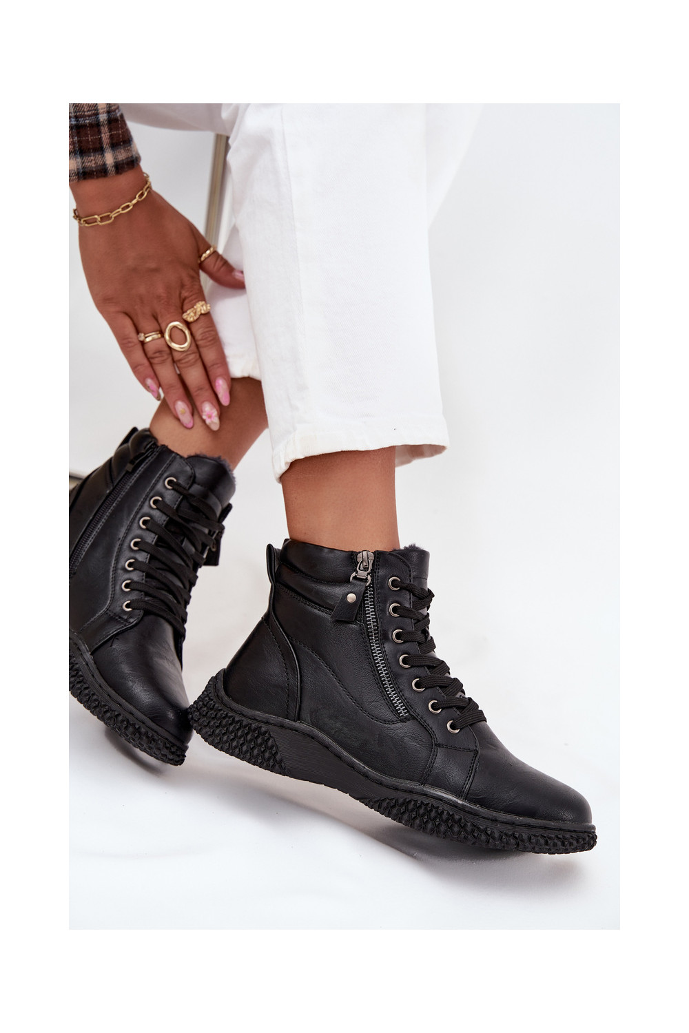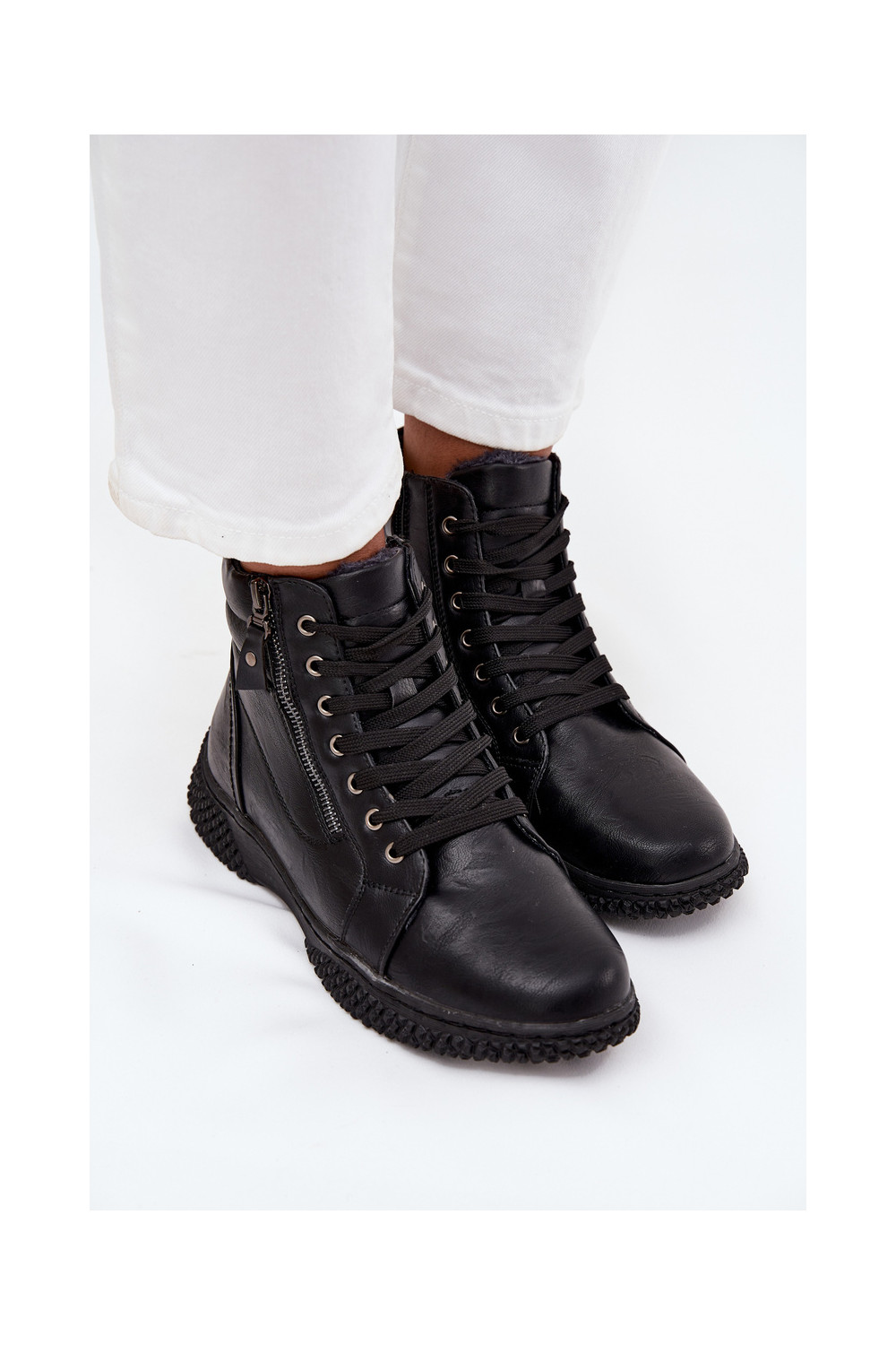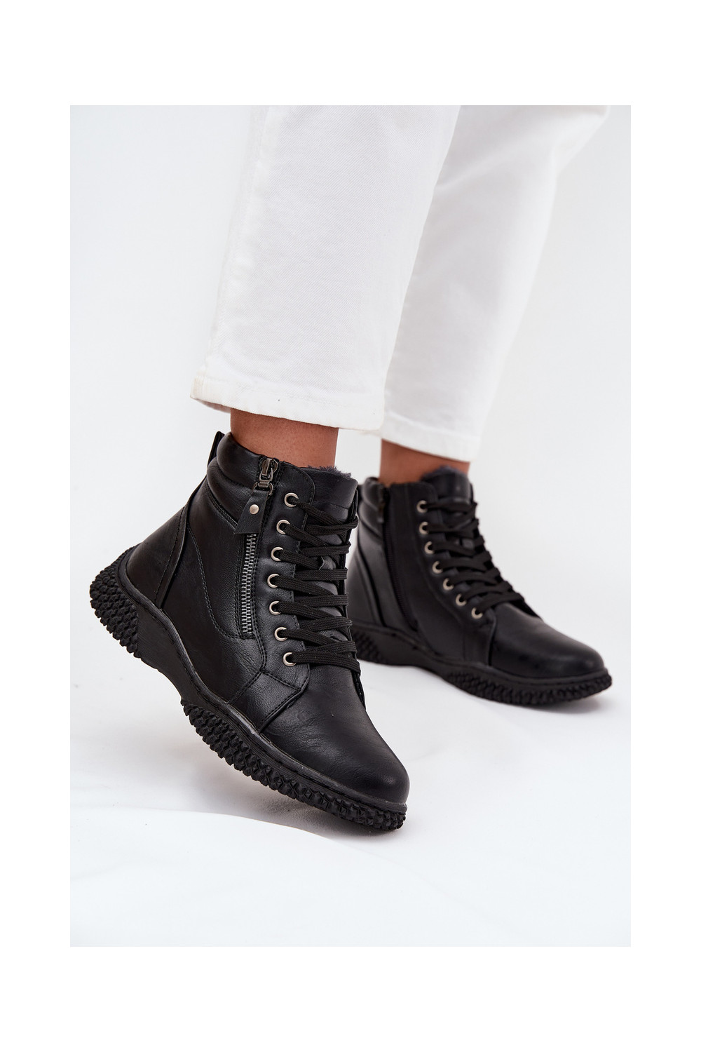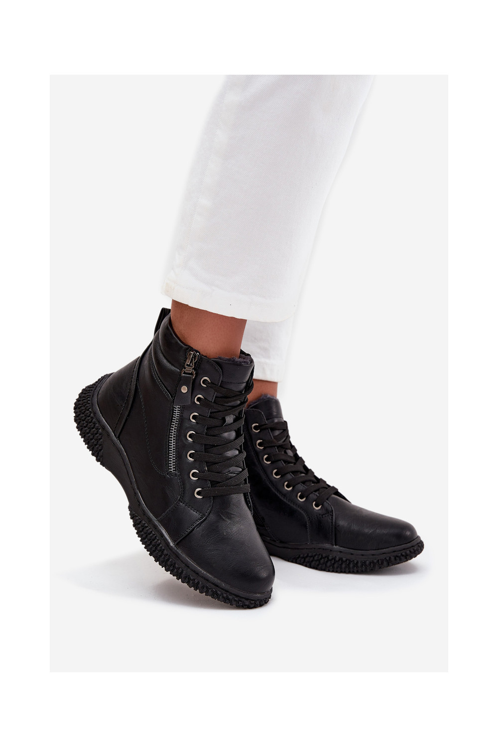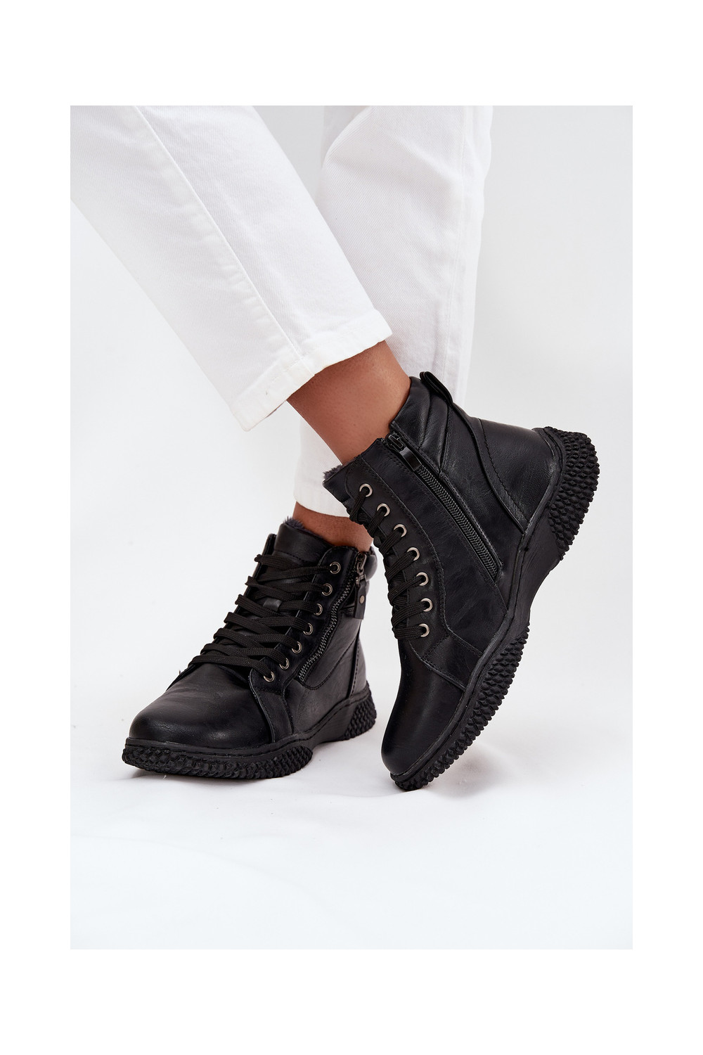 Dámské podpatky zateplené s kožešinou uvnitř z ekologické kůže Černé Ulverina