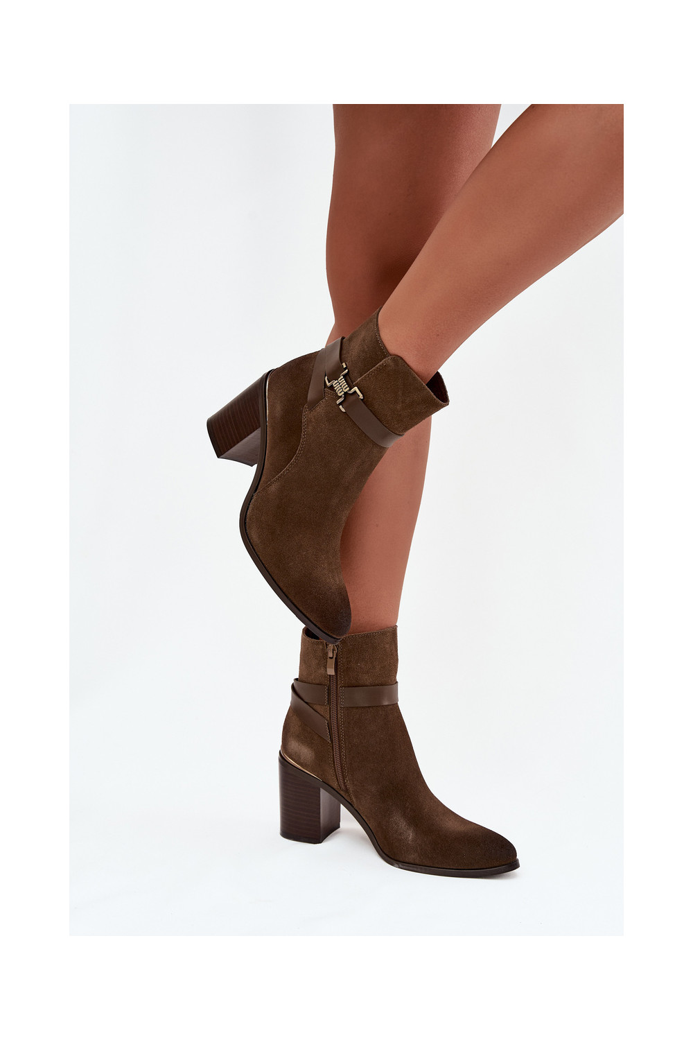 Dámské podpatky Z Naturalnego Zamszu s podpatky zateplené Sergio Leone BT25384-S khaki