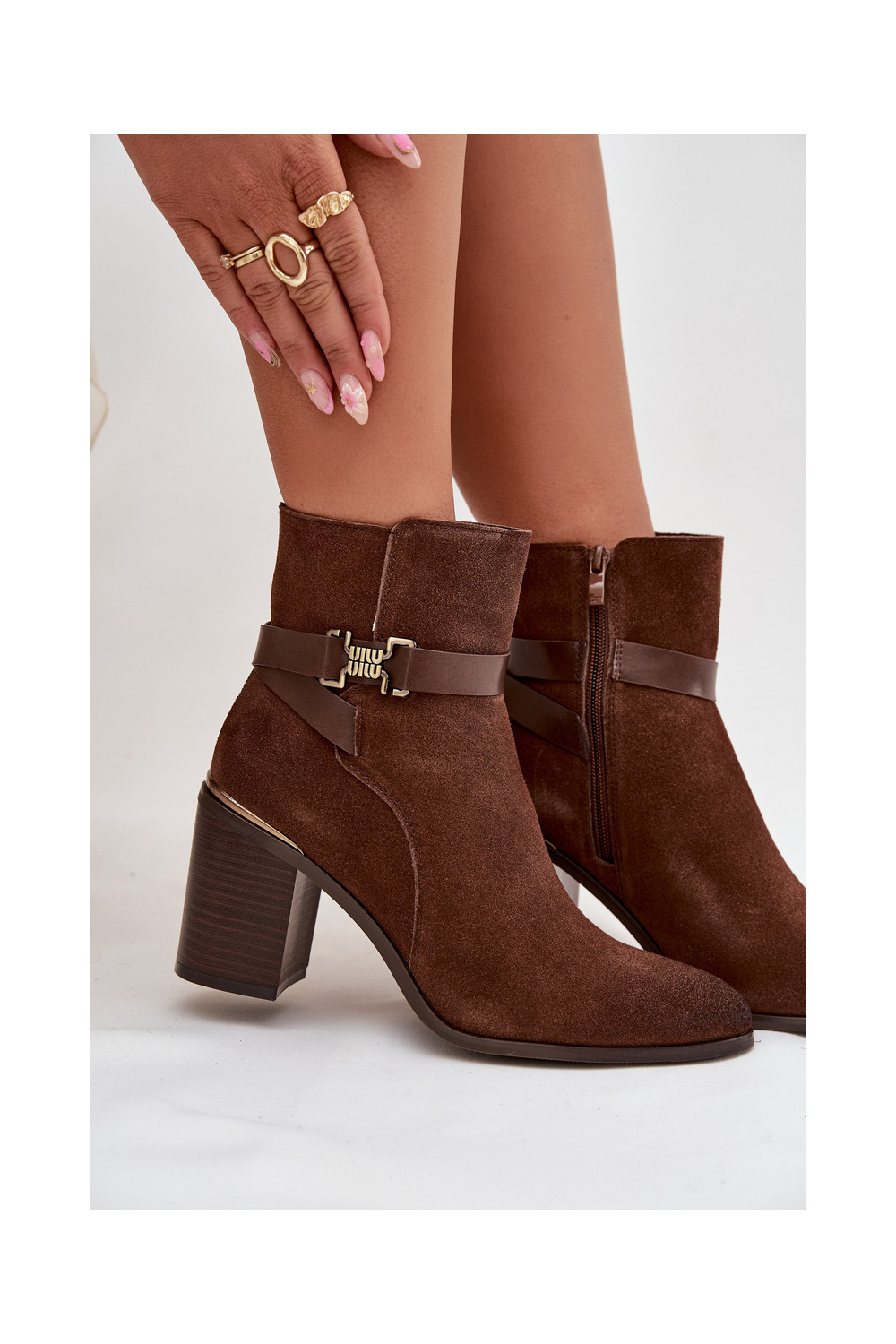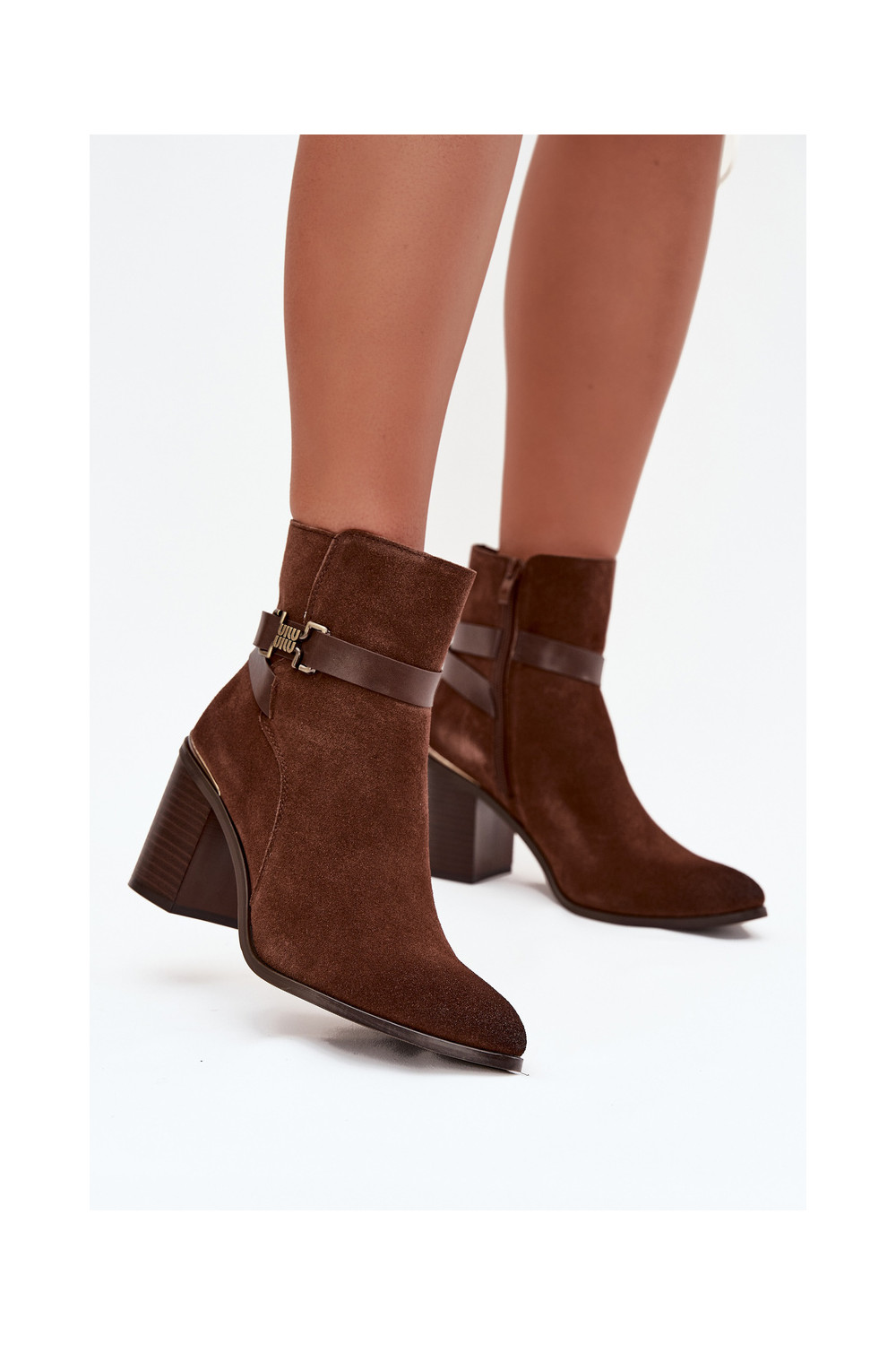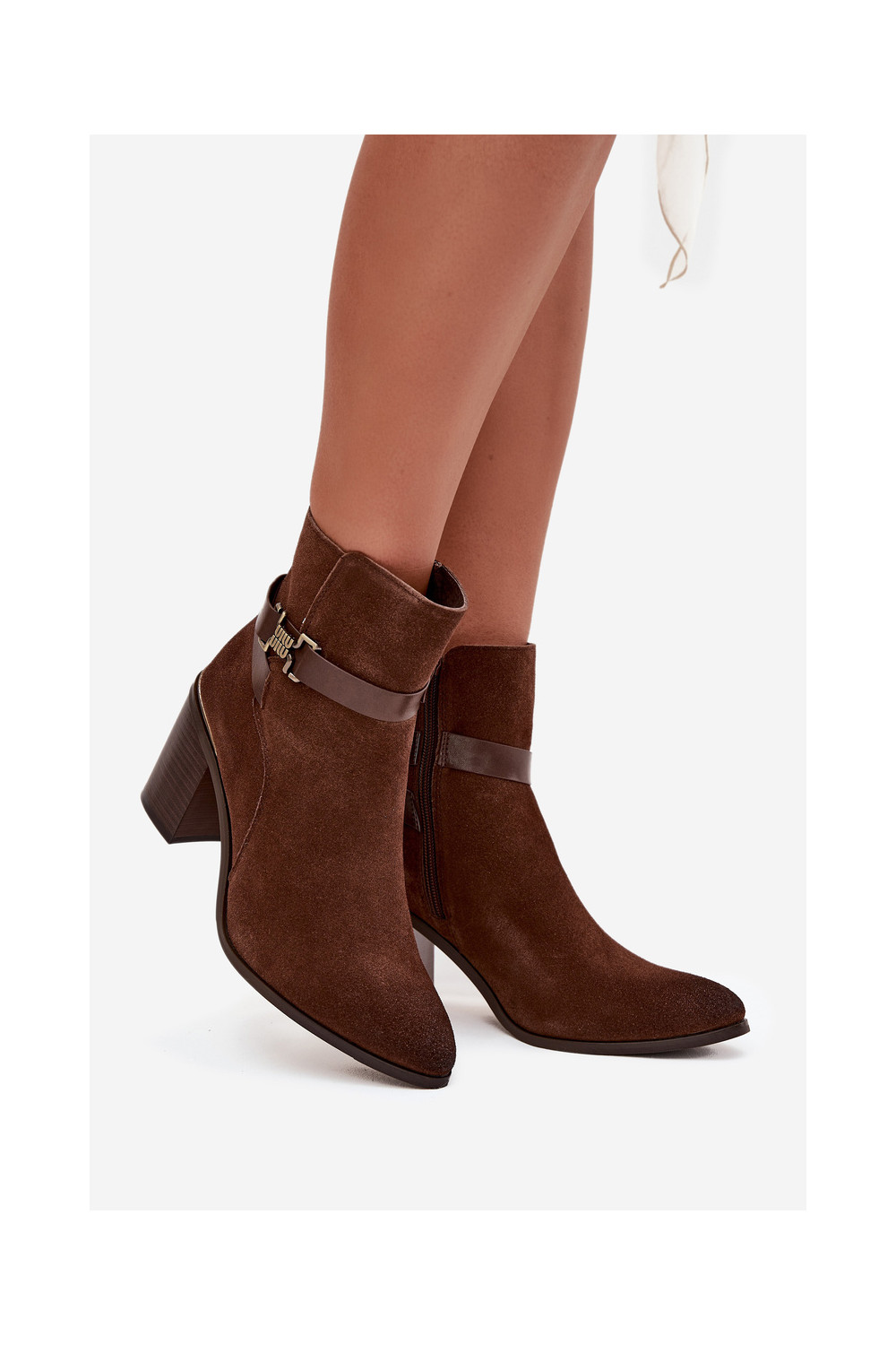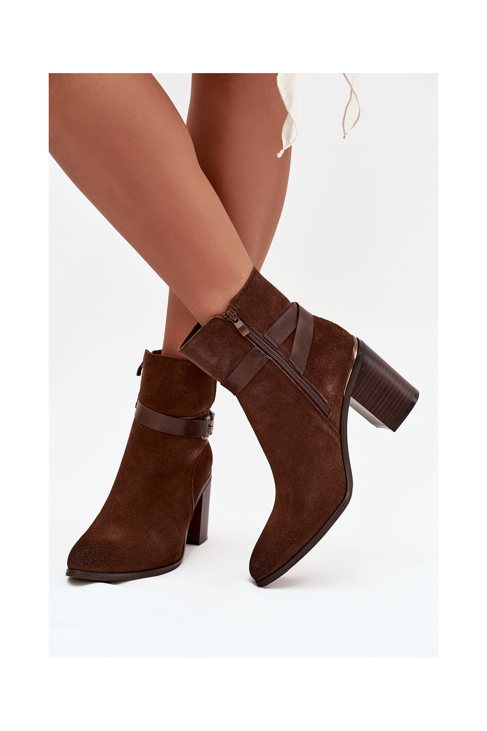 Dámské podpatky Z Naturalnego Zamszu s podpatky zateplené Sergio Leone BT25384-S hnědá