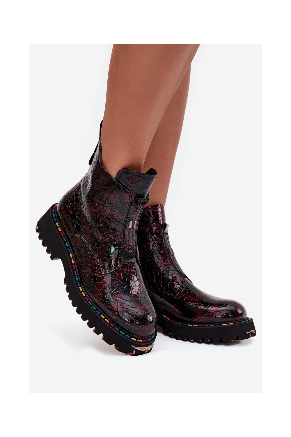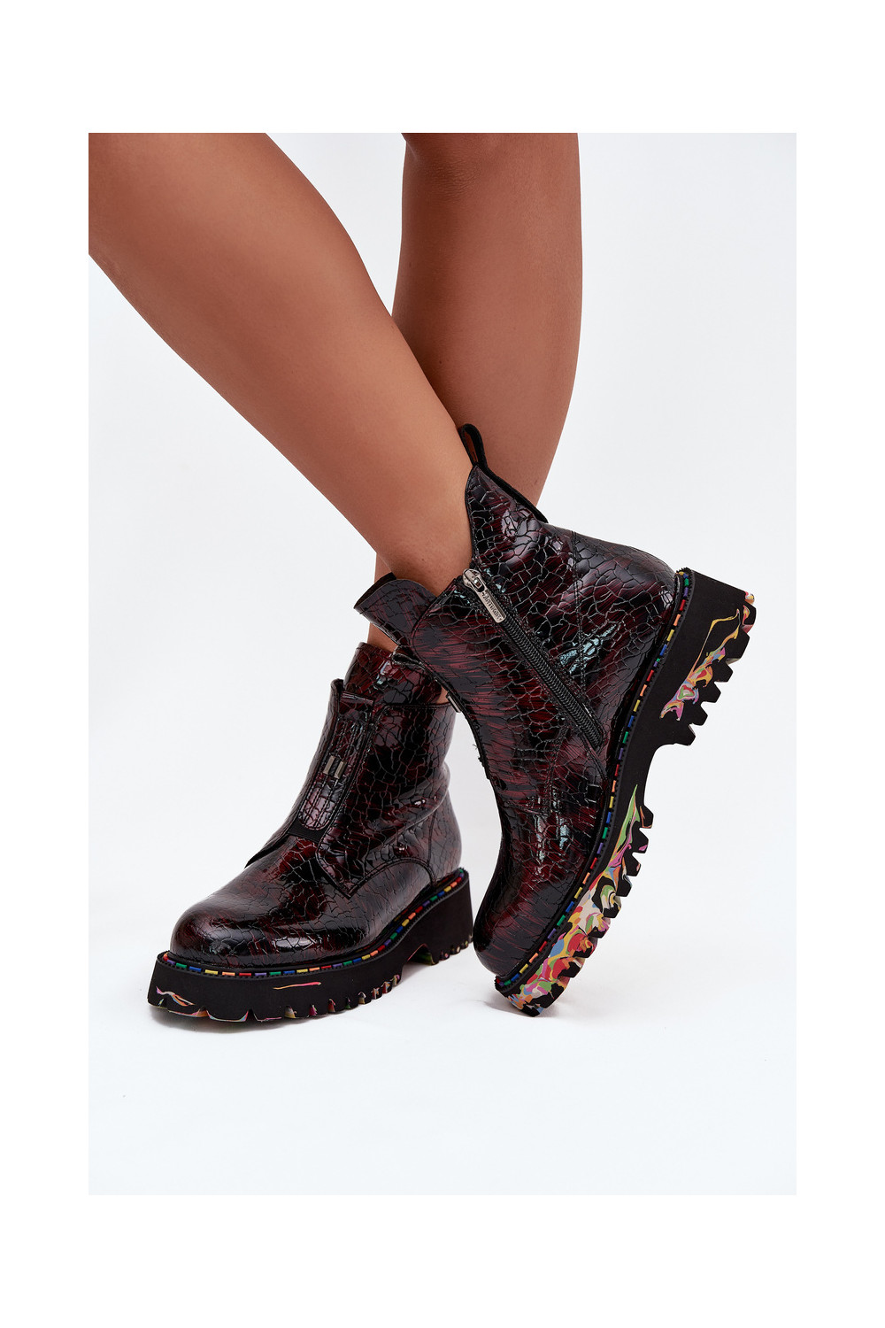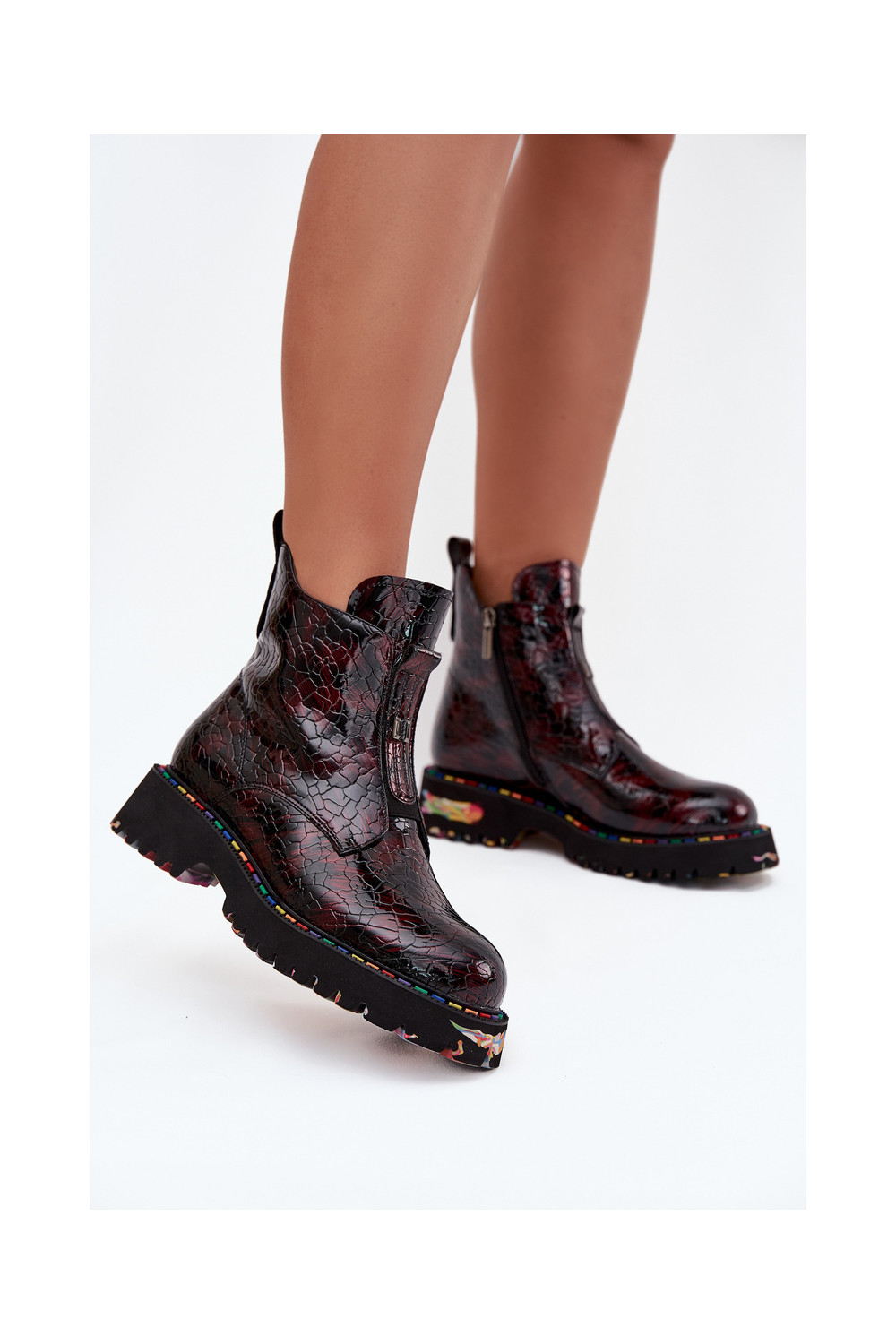 s efektem laku Dámské podpatky Z Naturalnej Skóry zateplené Artiker 57C0165 vínová