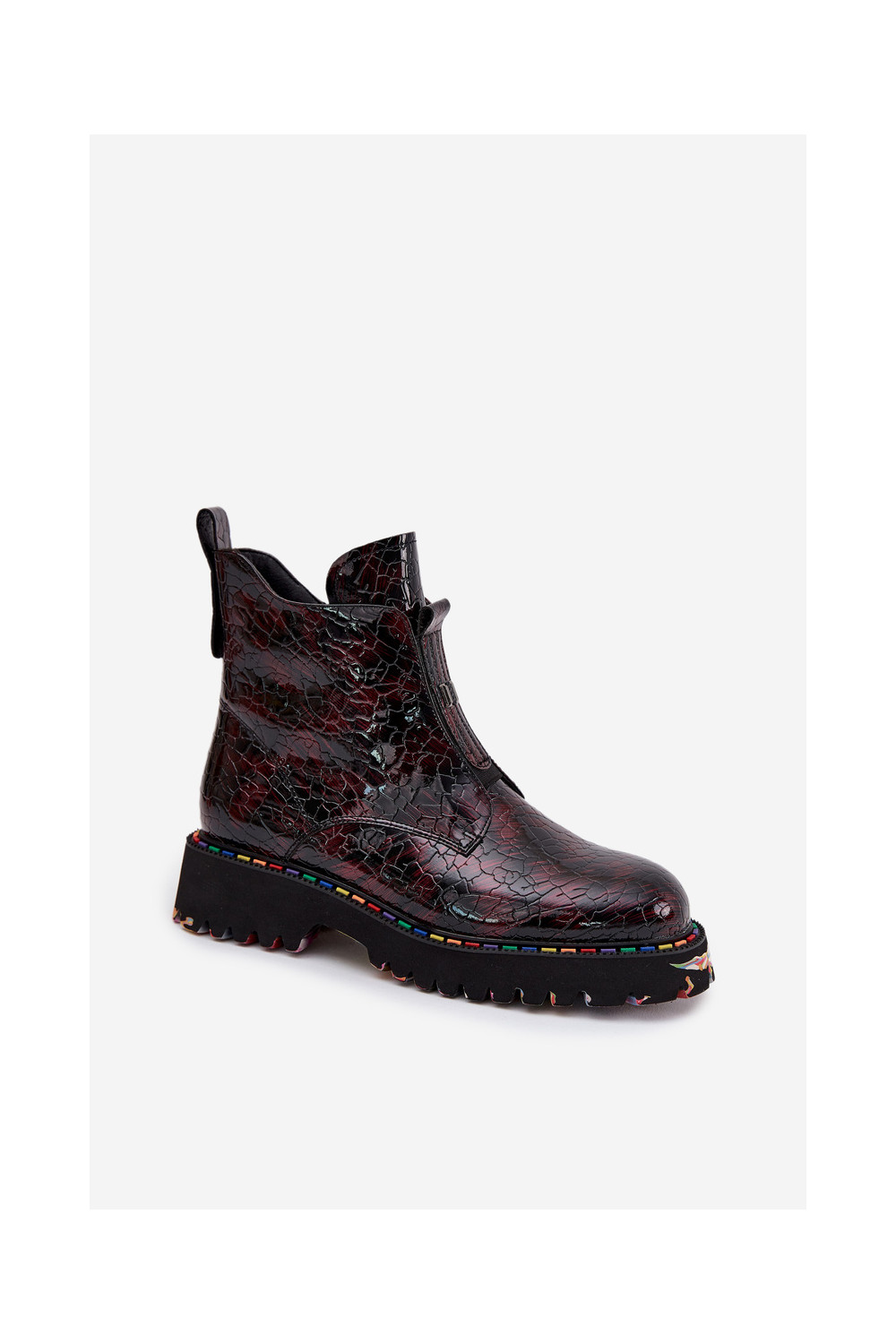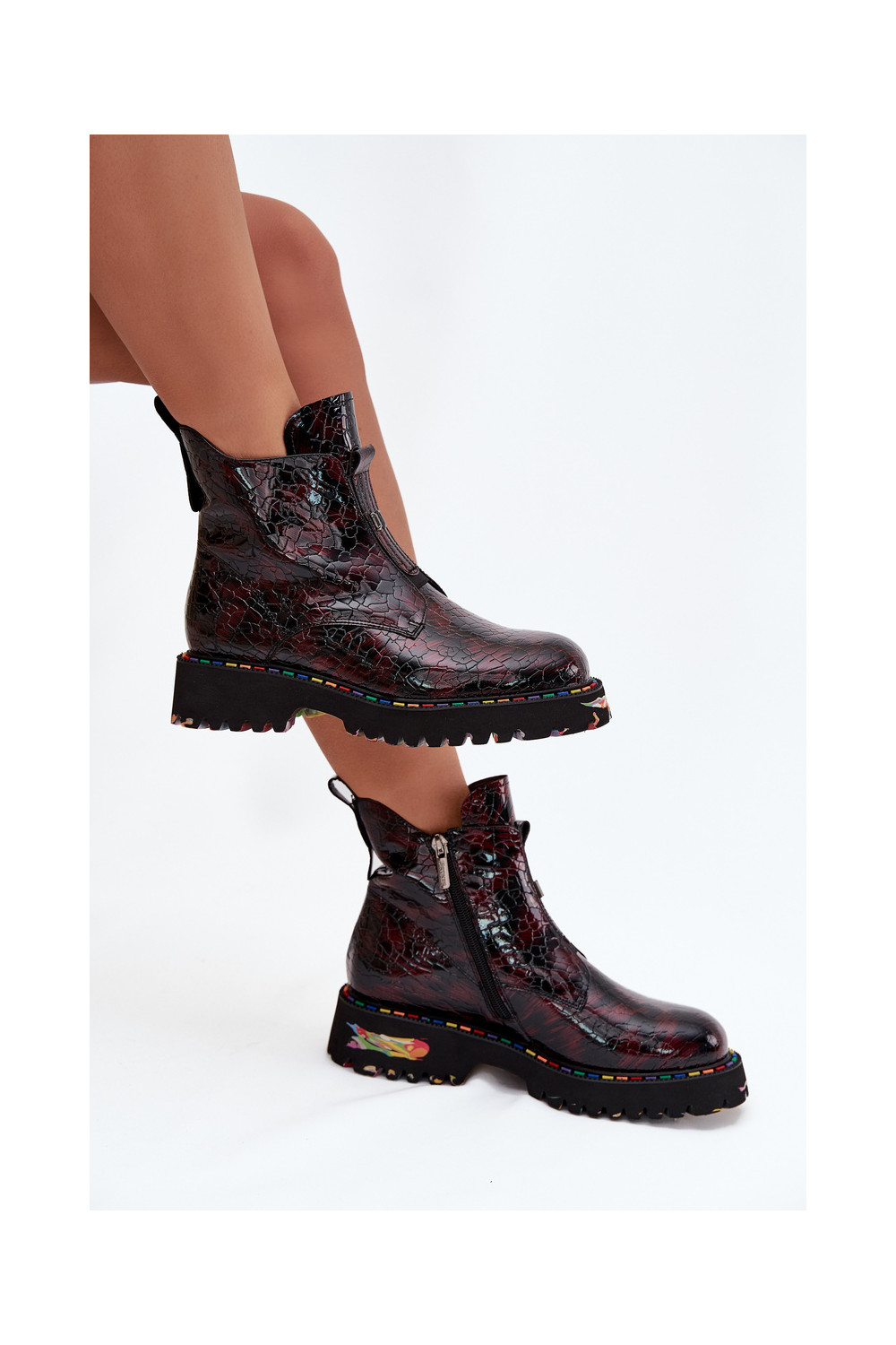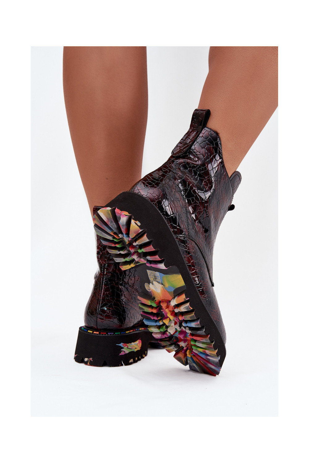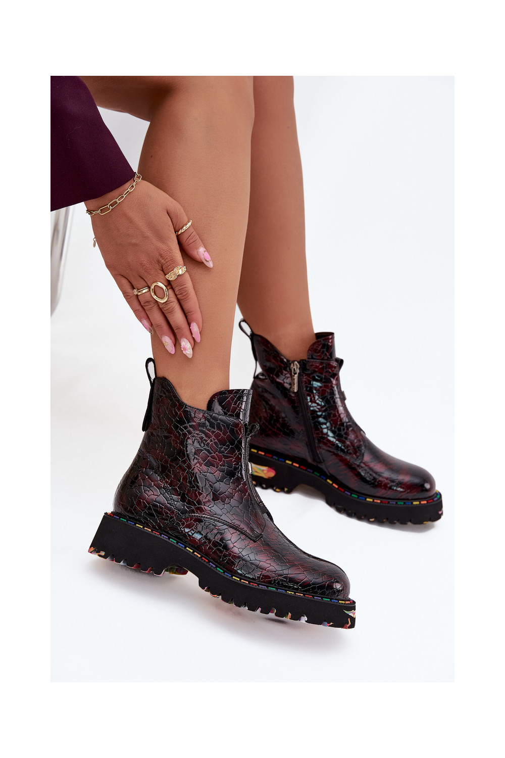 s efektem laku Dámské podpatky Z Naturalnej Skóry zateplené Artiker 57C0165 vínová