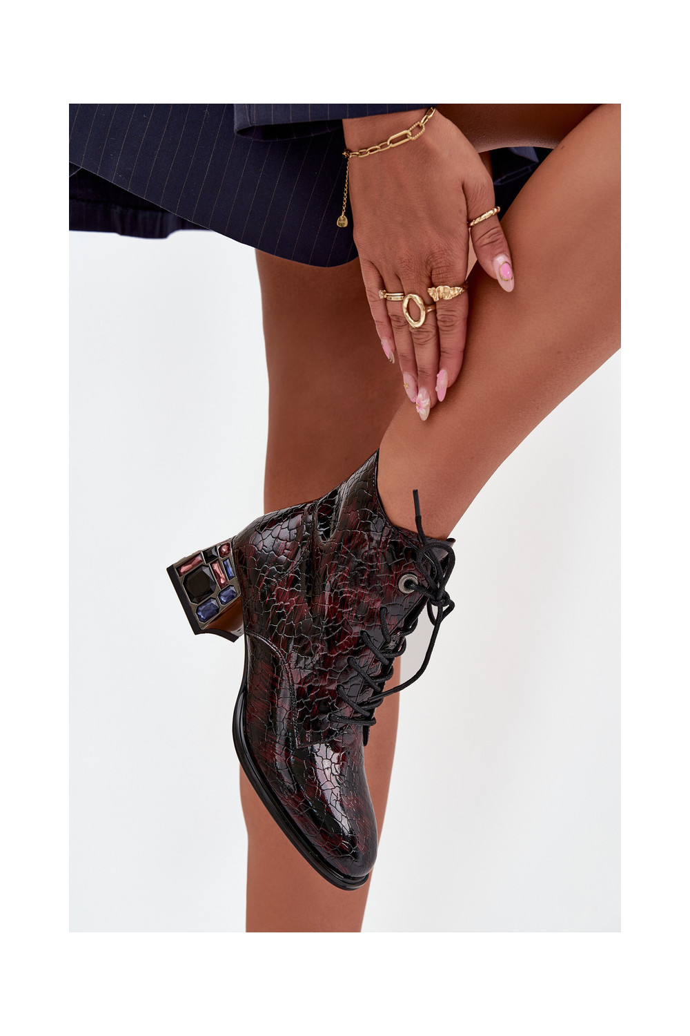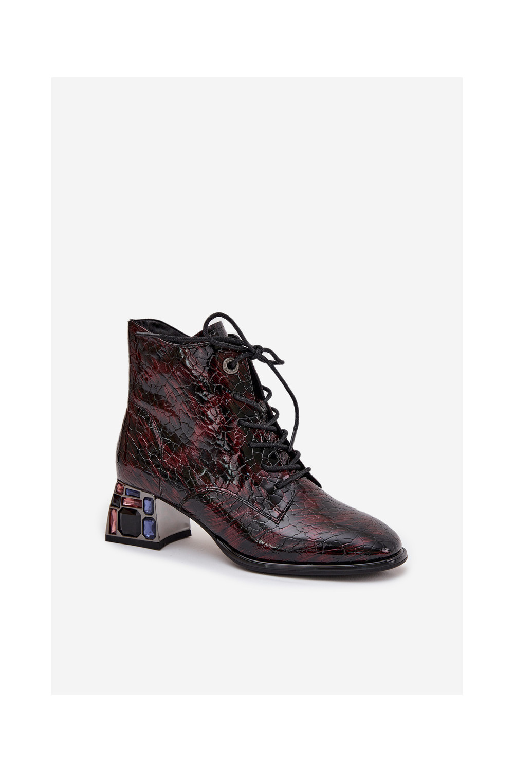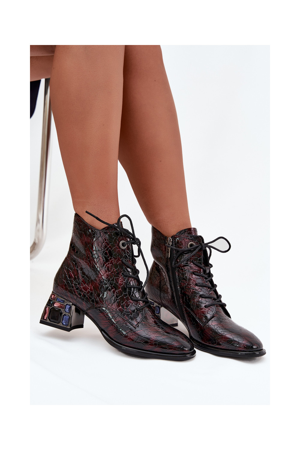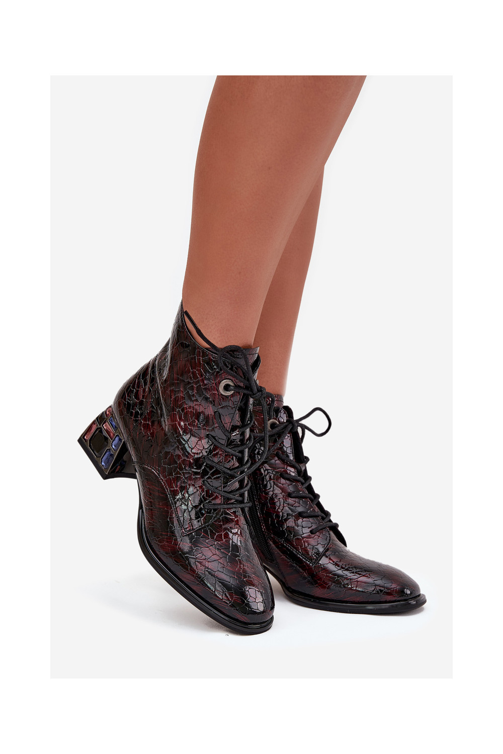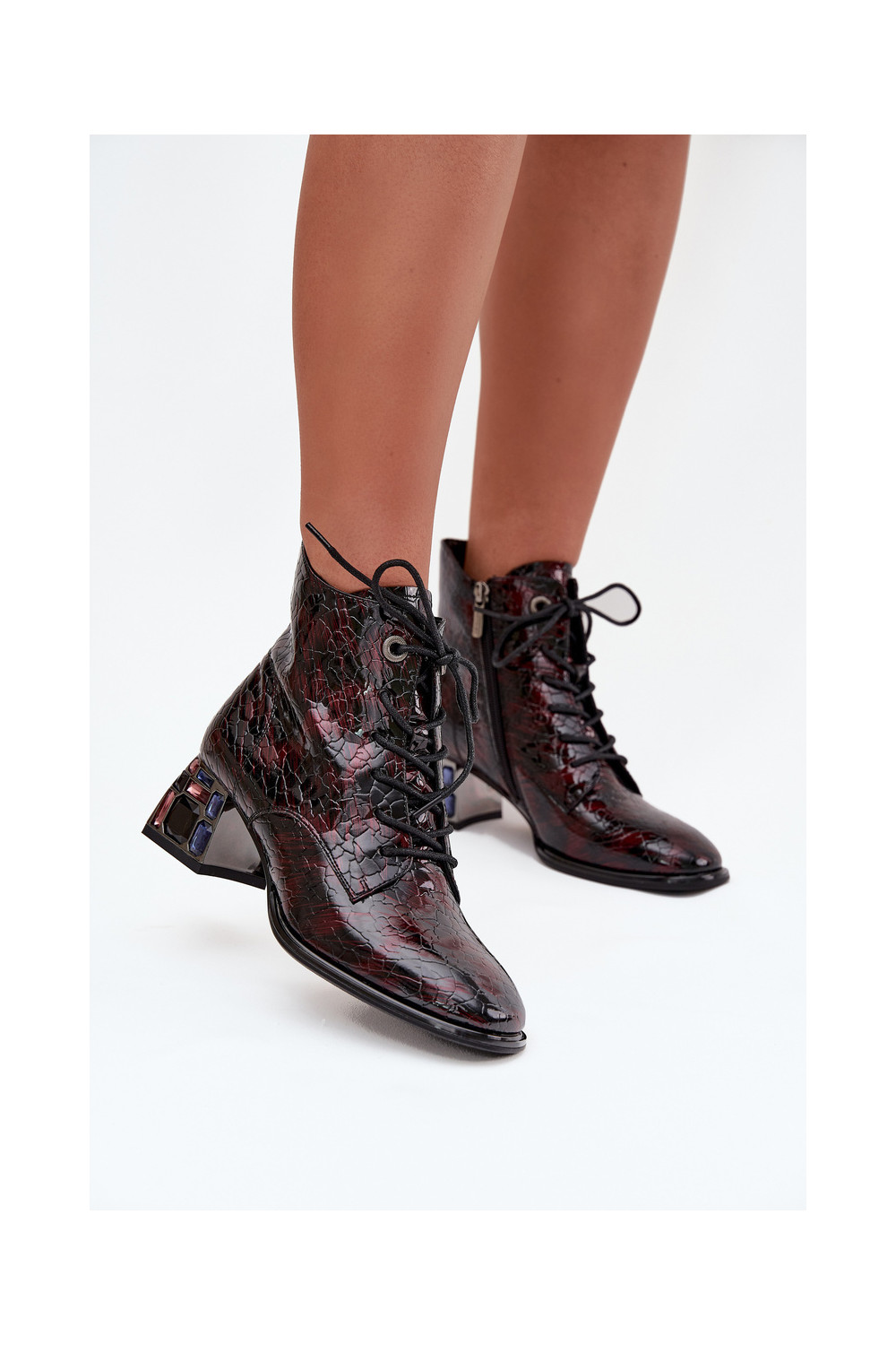 s efektem laku Dámské podpatky Z Naturalnej Skóry s podpatky s třpytivýma očima Artiker 57C0130 vínová