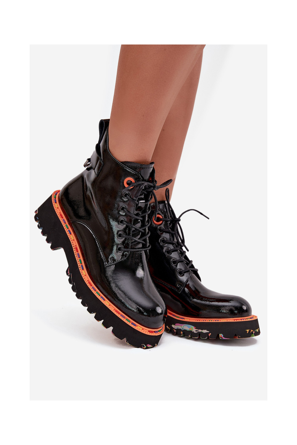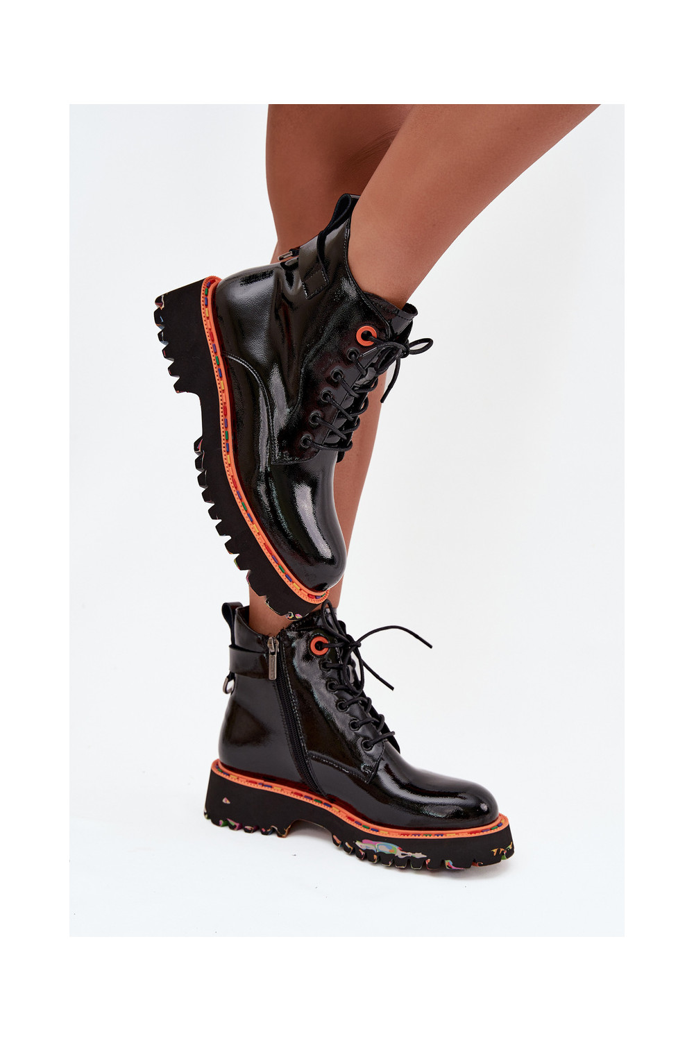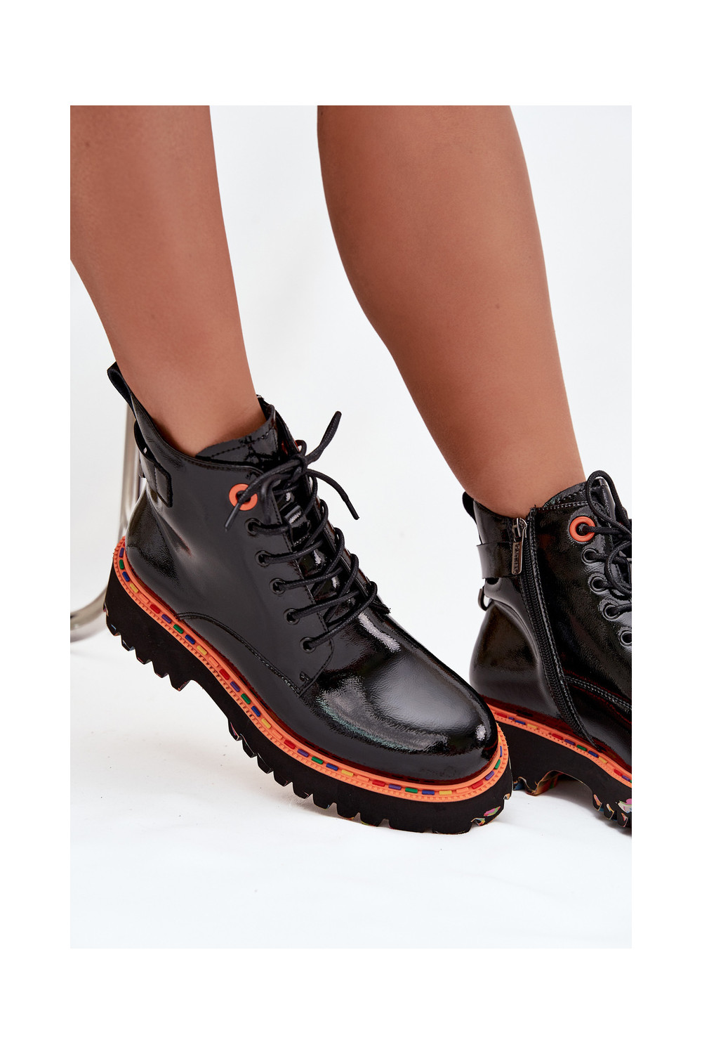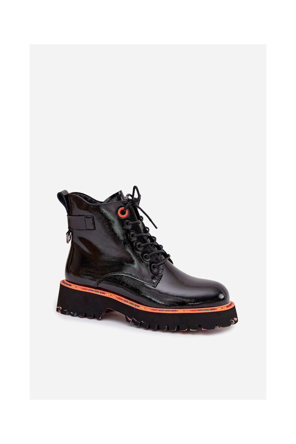 Dámské podpatky Z s efektem lakuj Skóry Naturalnej zateplené Artiker 57C0061 Černé