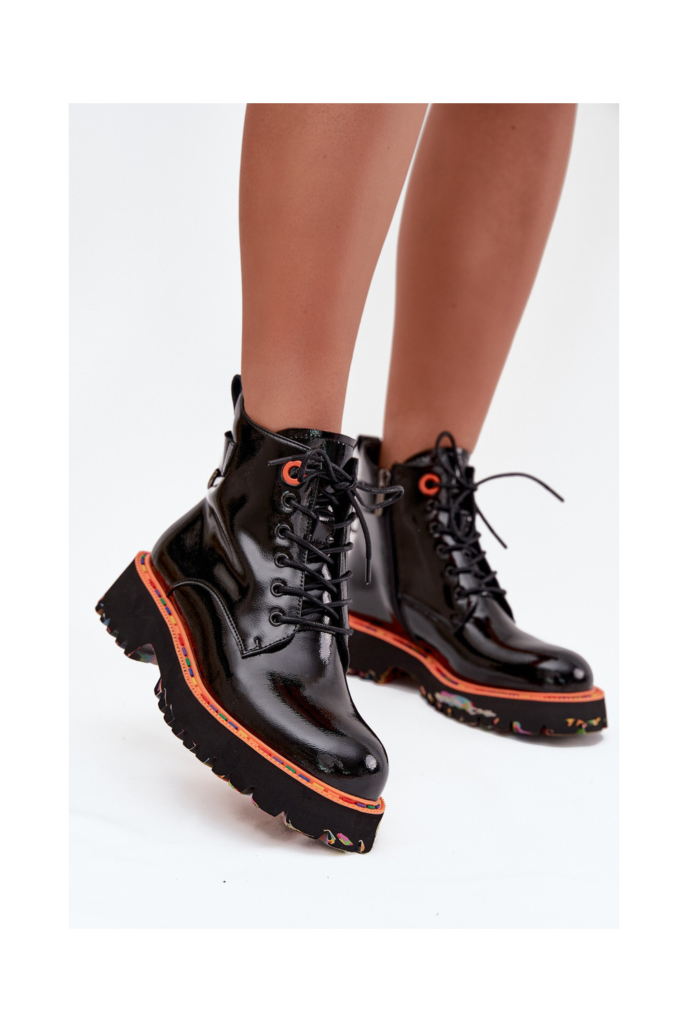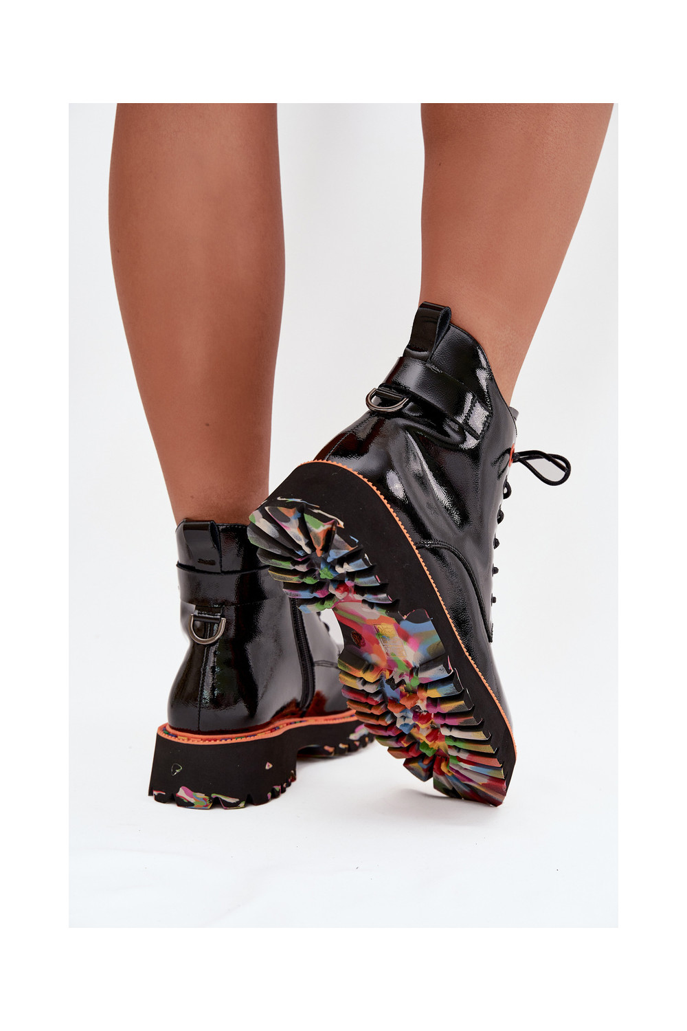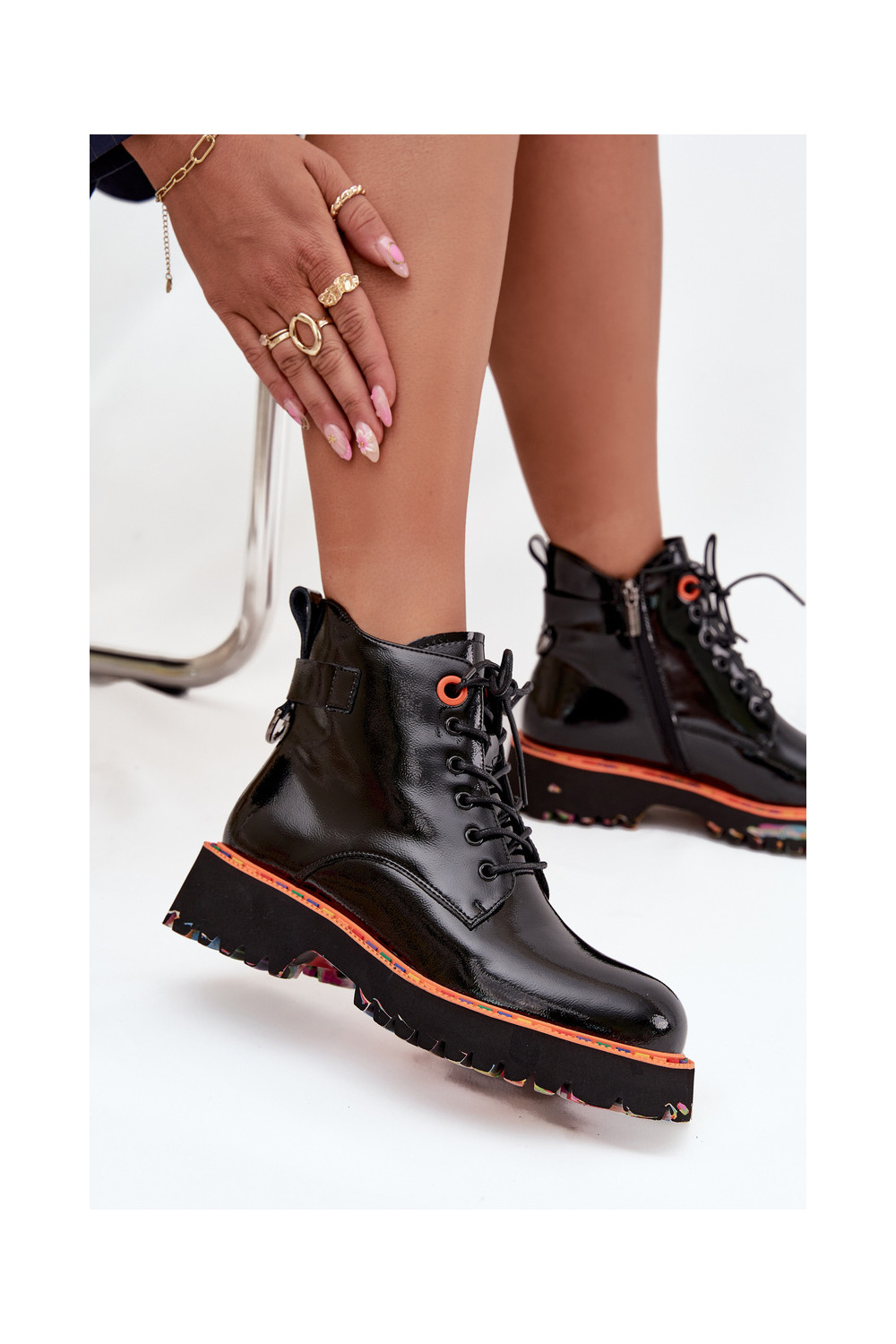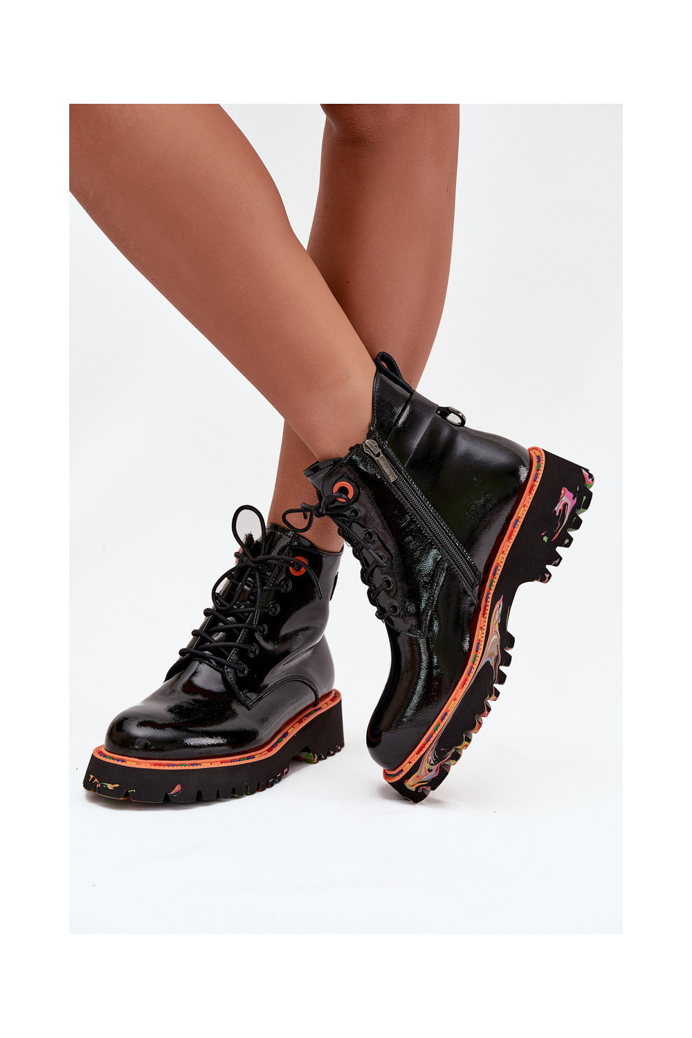 Dámské podpatky Z s efektem lakuj Skóry Naturalnej zateplené Artiker 57C0061 Černé