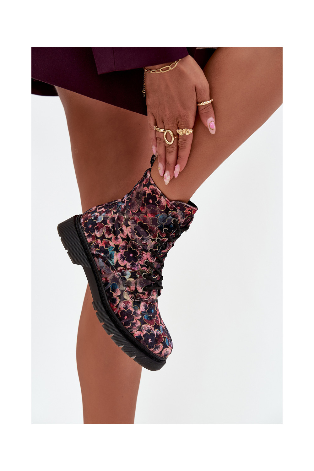 Dámské podpatky zateplené S květinami Artiker 57C1051 růžová