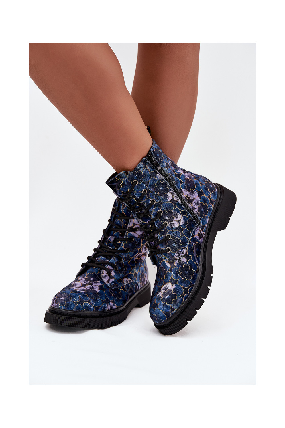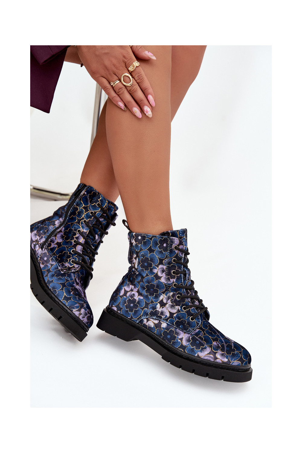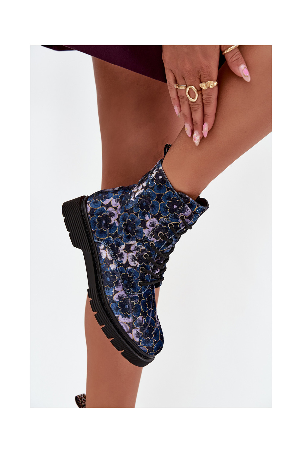 Dámské podpatky zateplené S květinami Artiker 57C1052 tmavě modrá