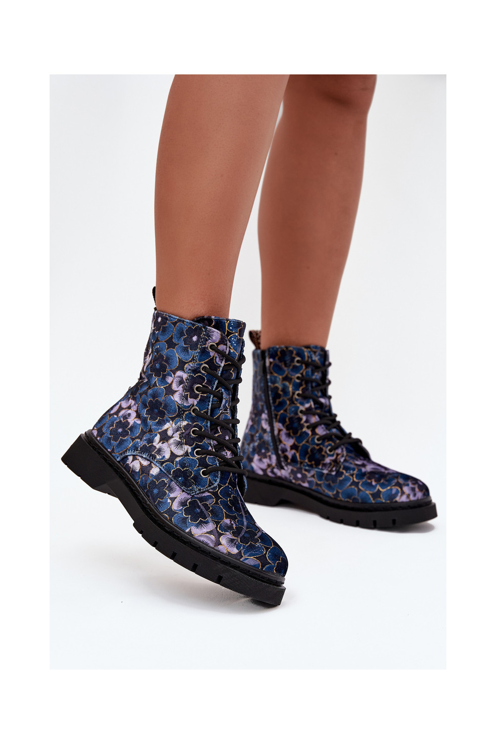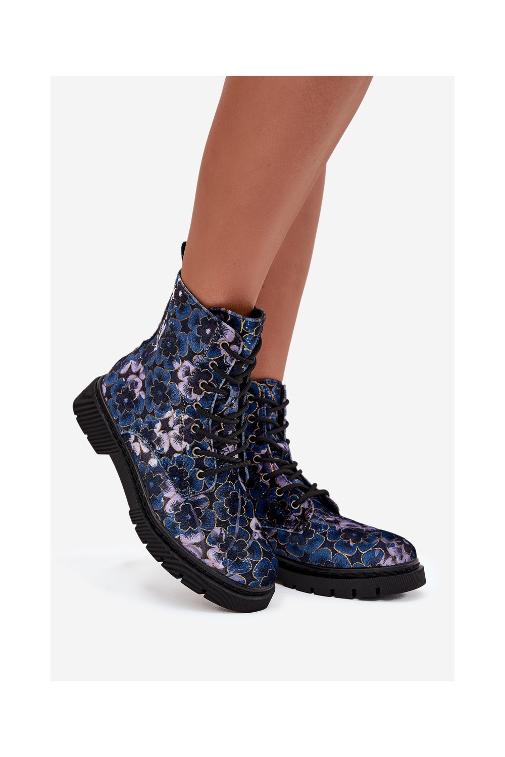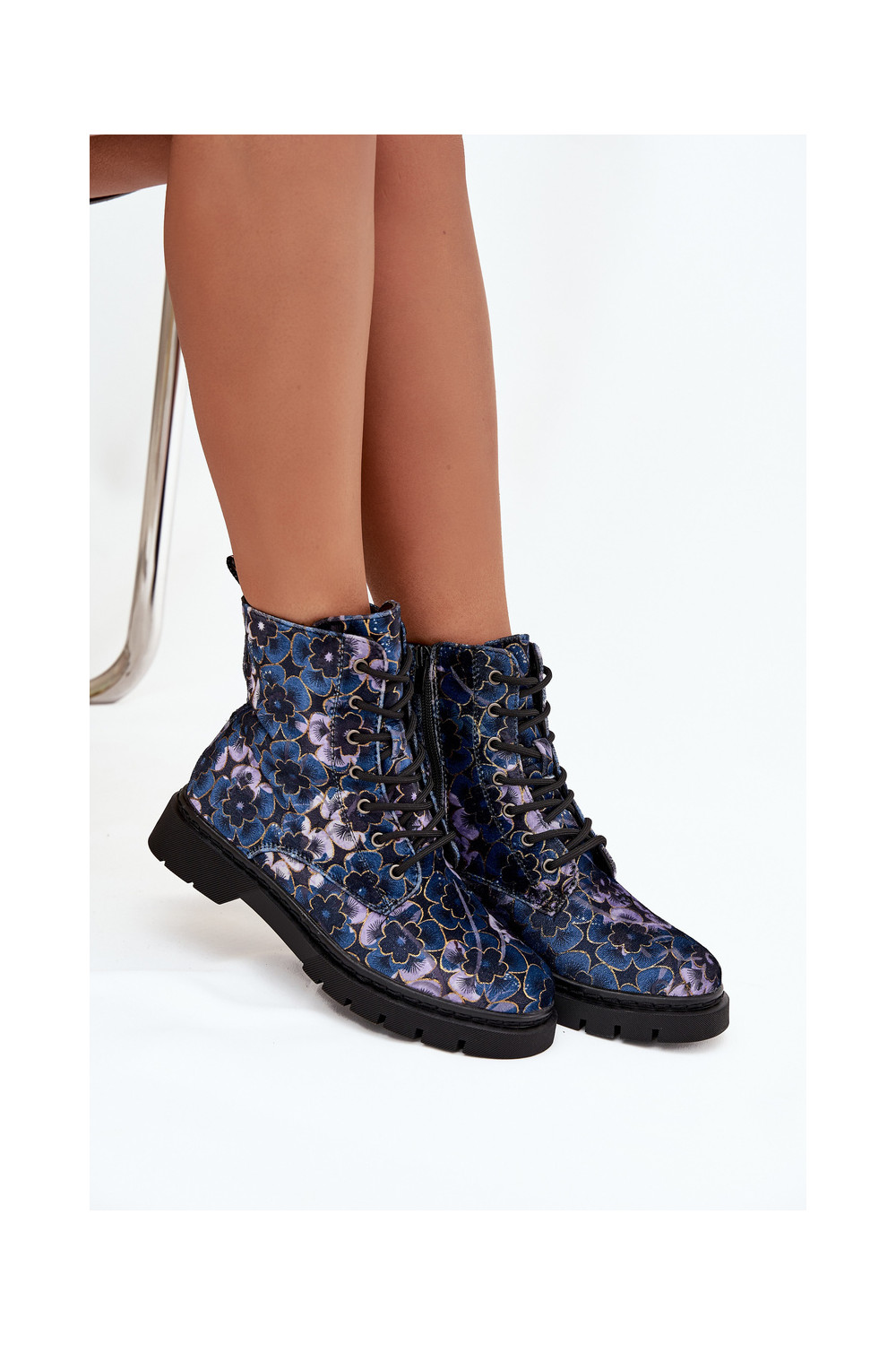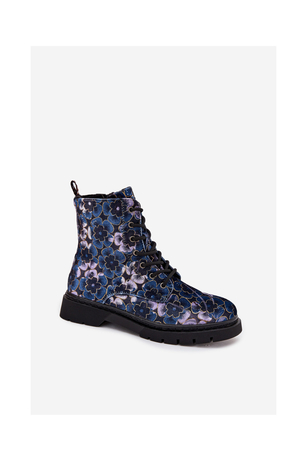 Dámské podpatky zateplené S květinami Artiker 57C1052 tmavě modrá