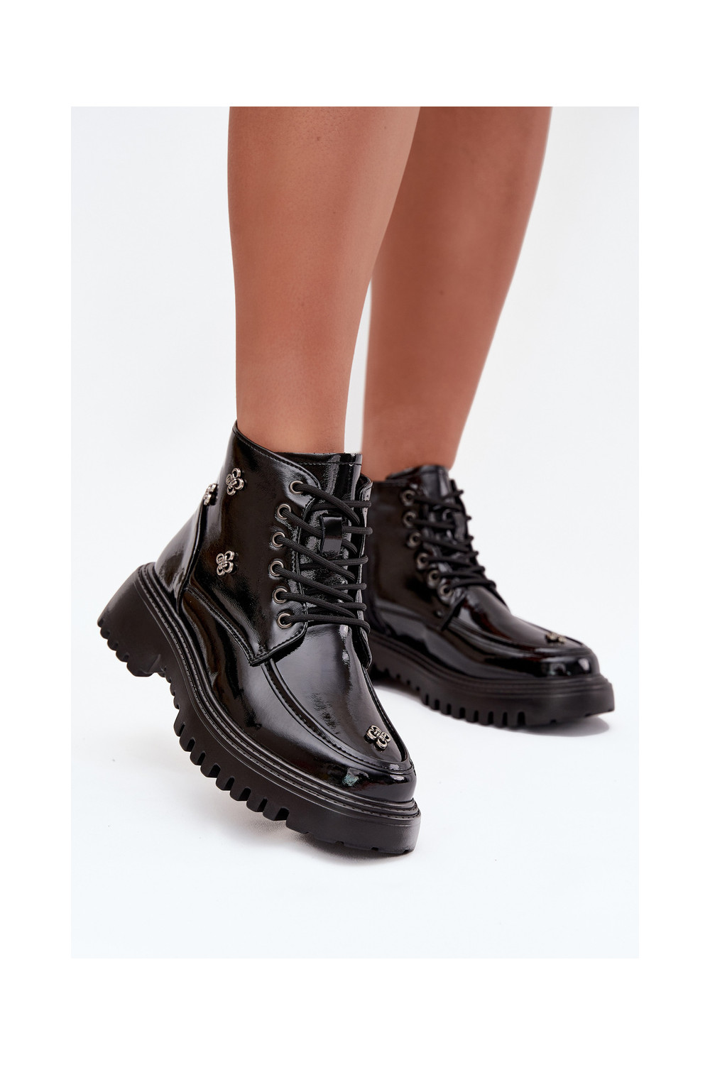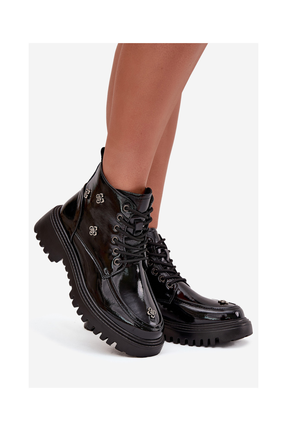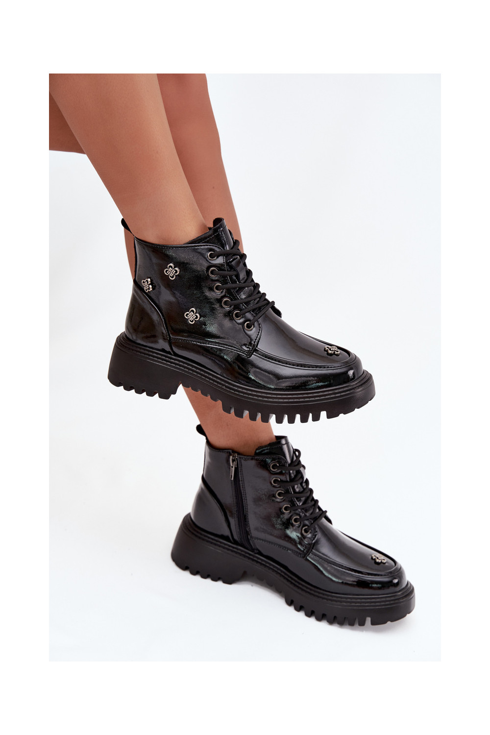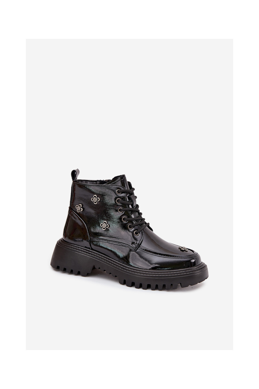 zateplené Dámské podpatky s pěknými detaily s efektem laku Artiker 57C0345 Černé