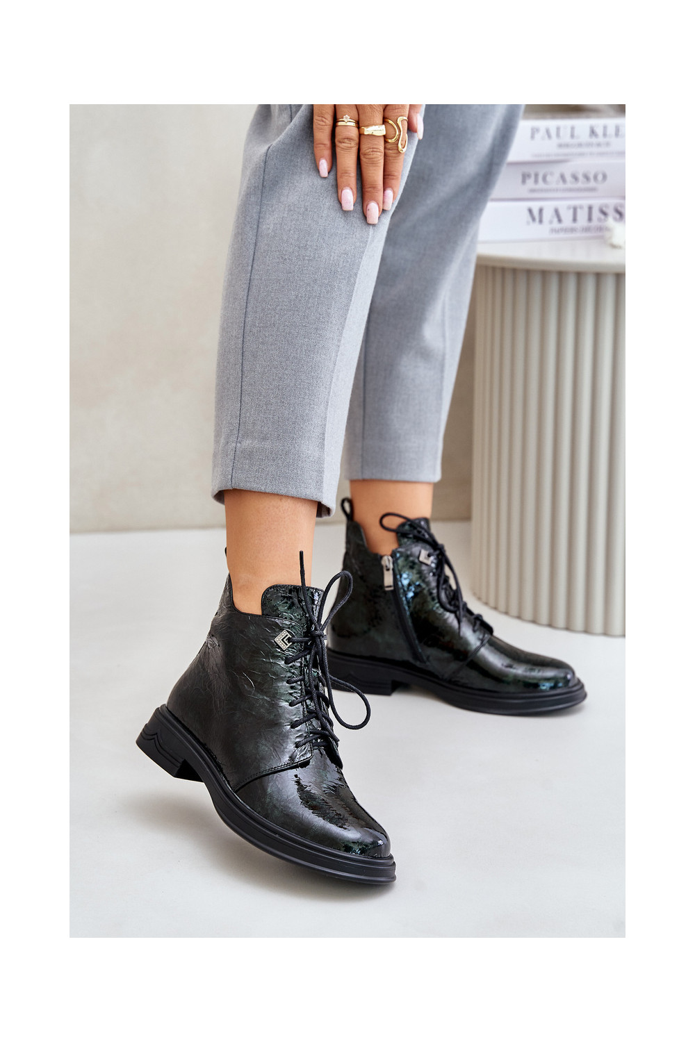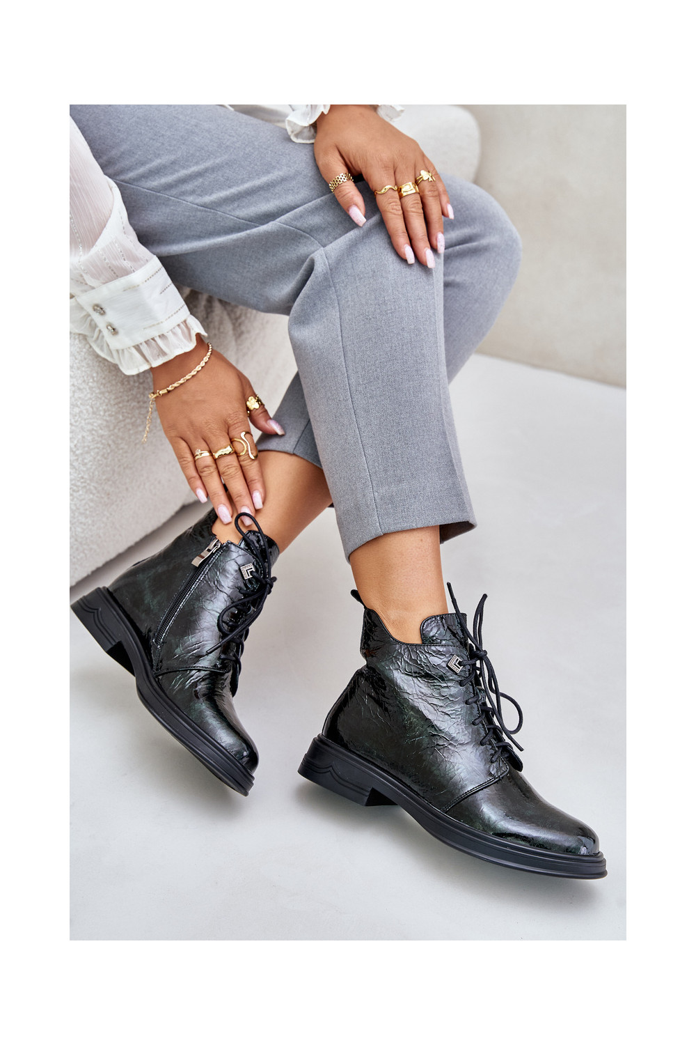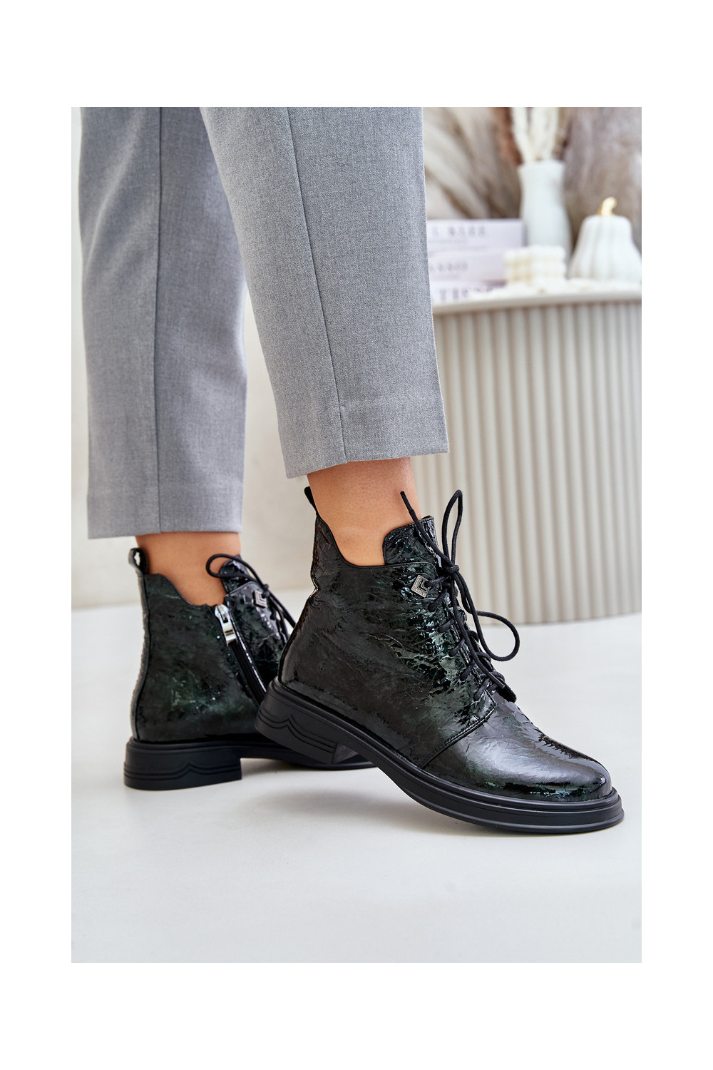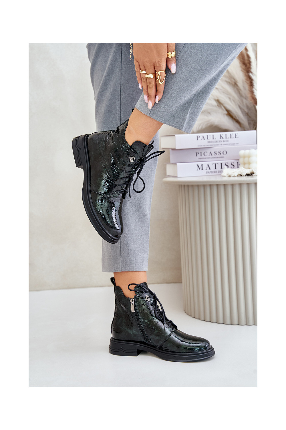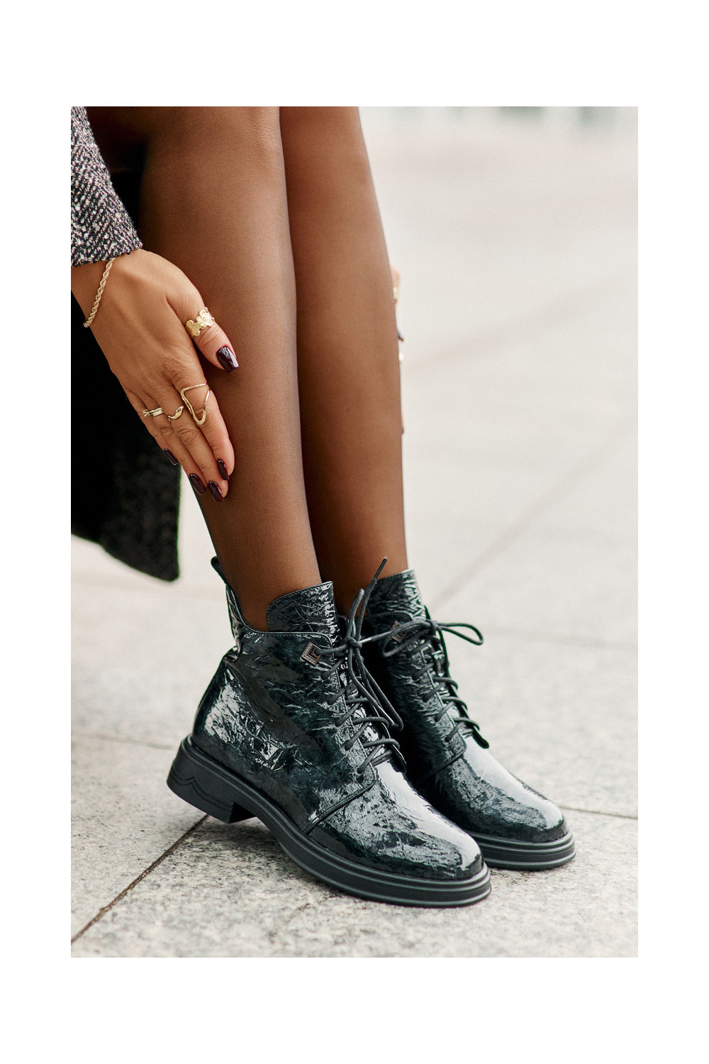 s efektem laku Dámské podpatky zateplené D&A LZ42-042 khaki