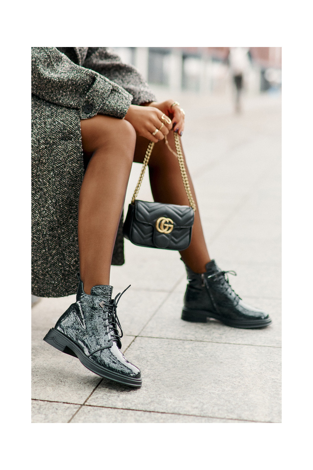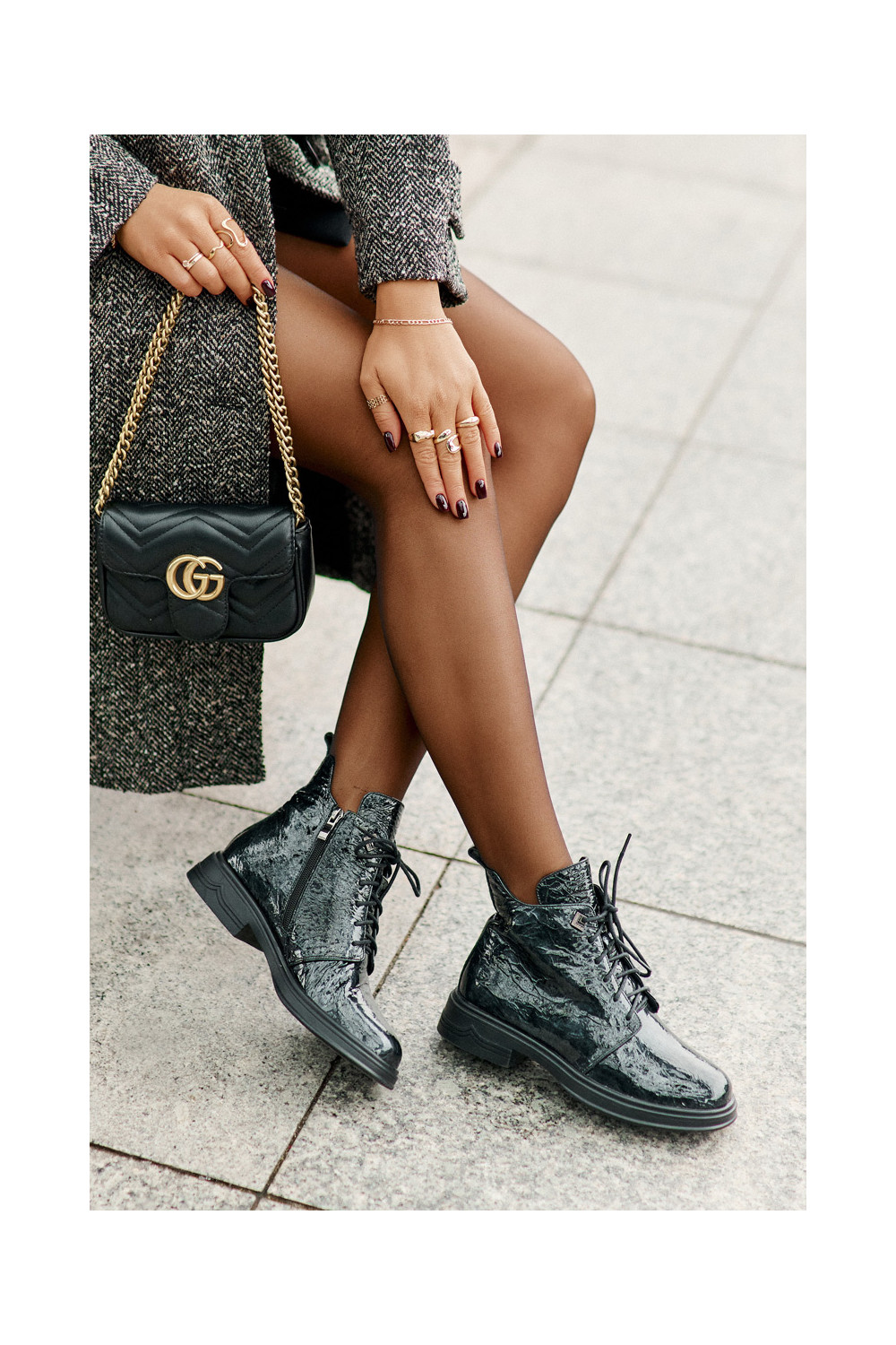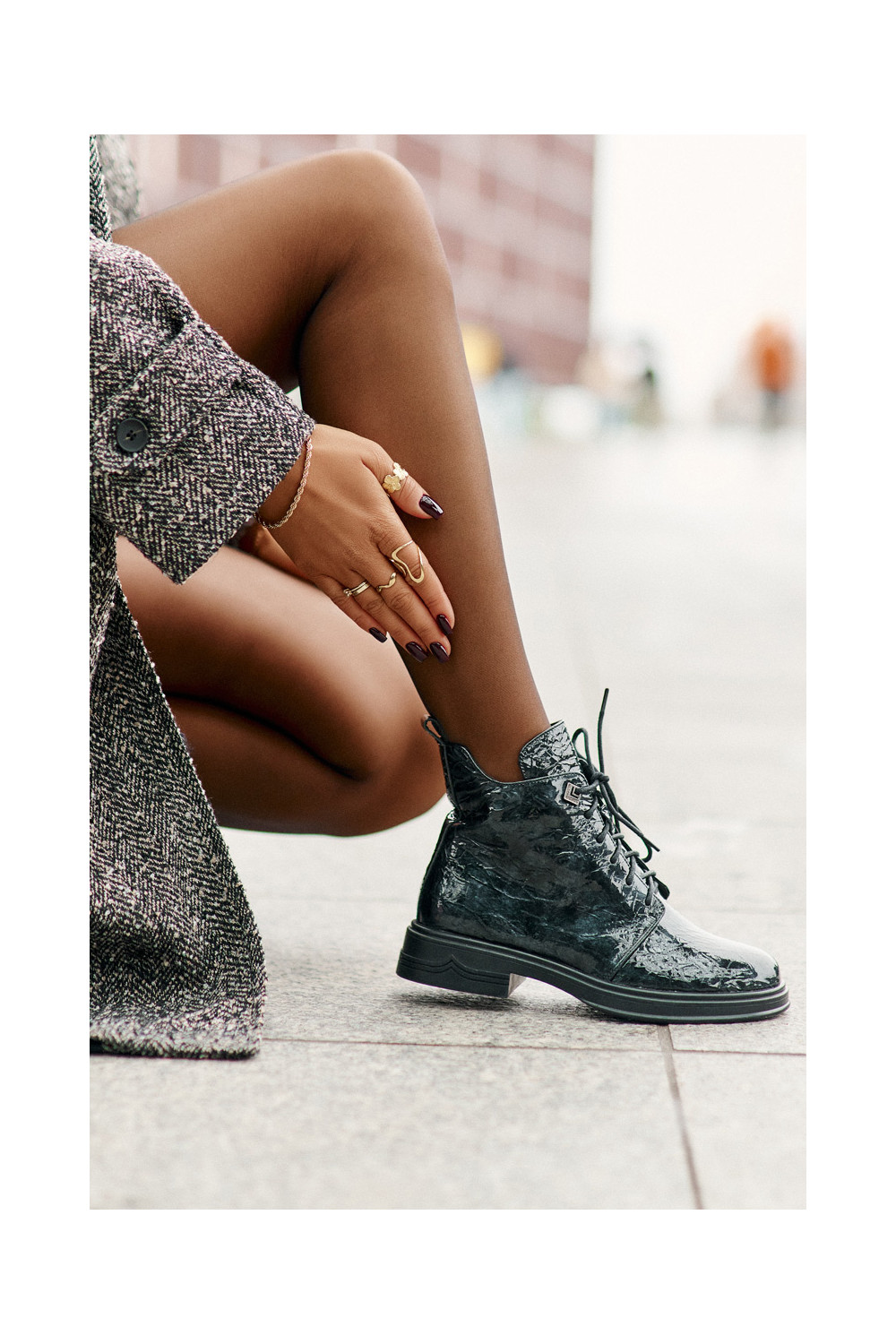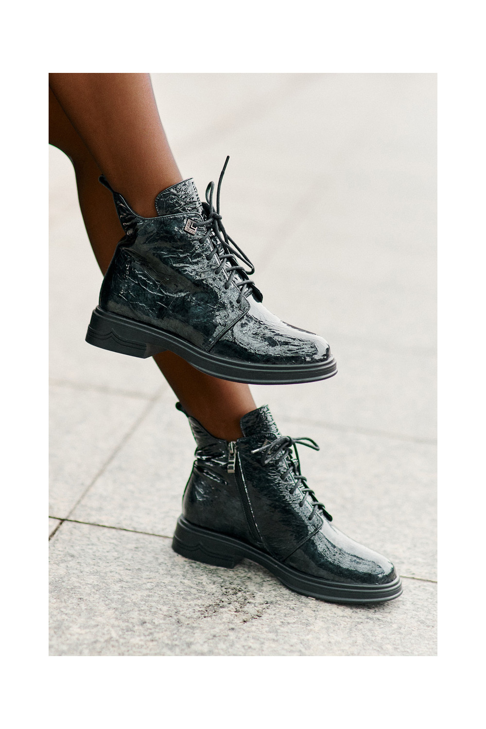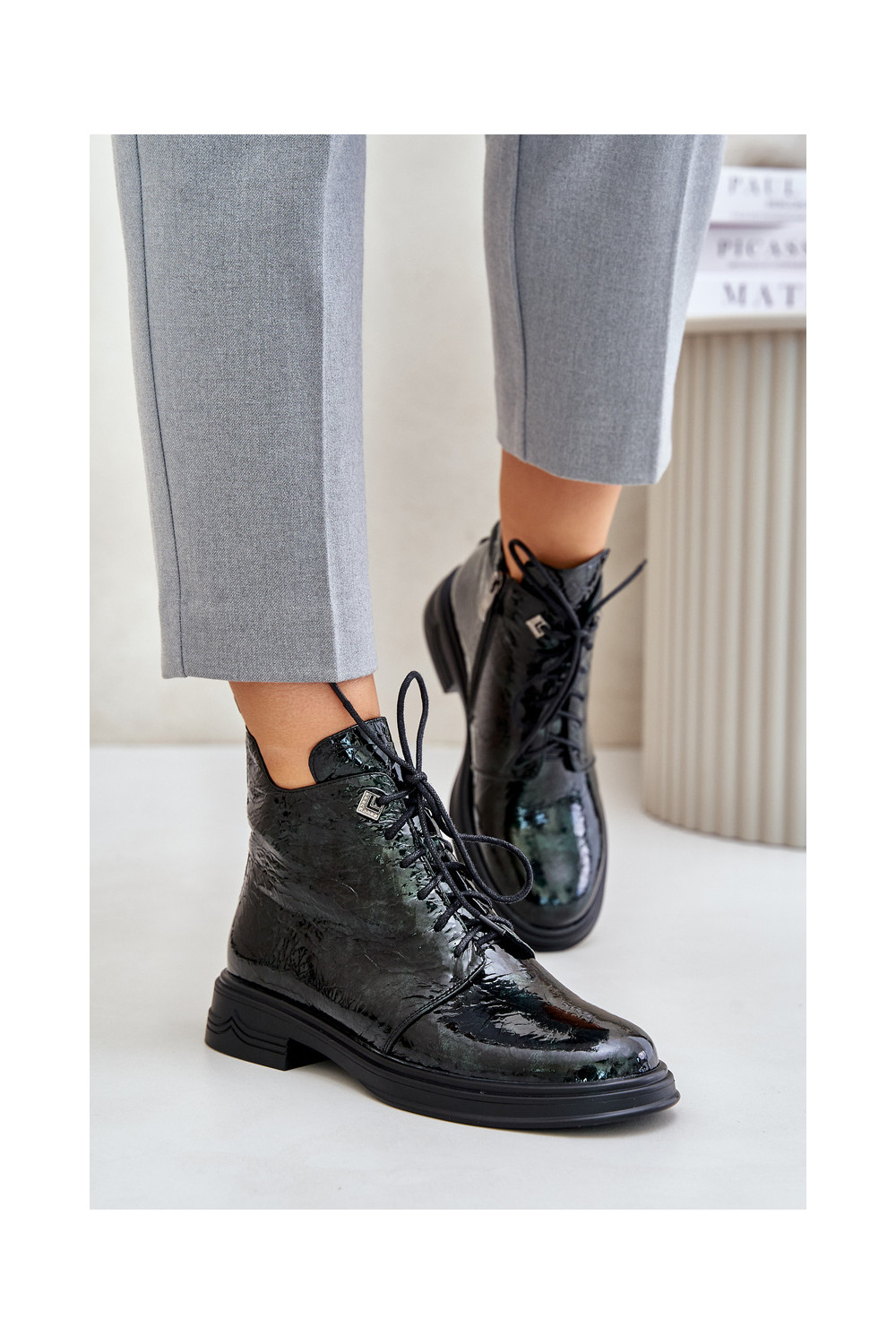 s efektem laku Dámské podpatky zateplené D&A LZ42-042 khaki