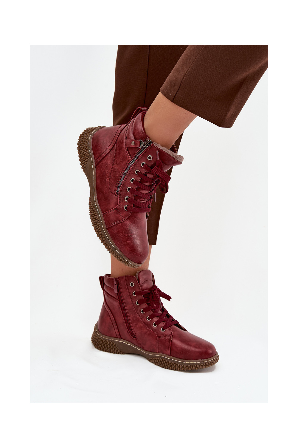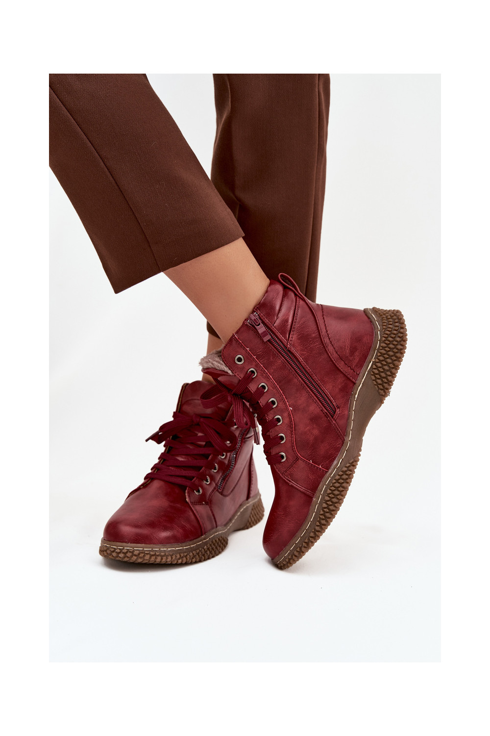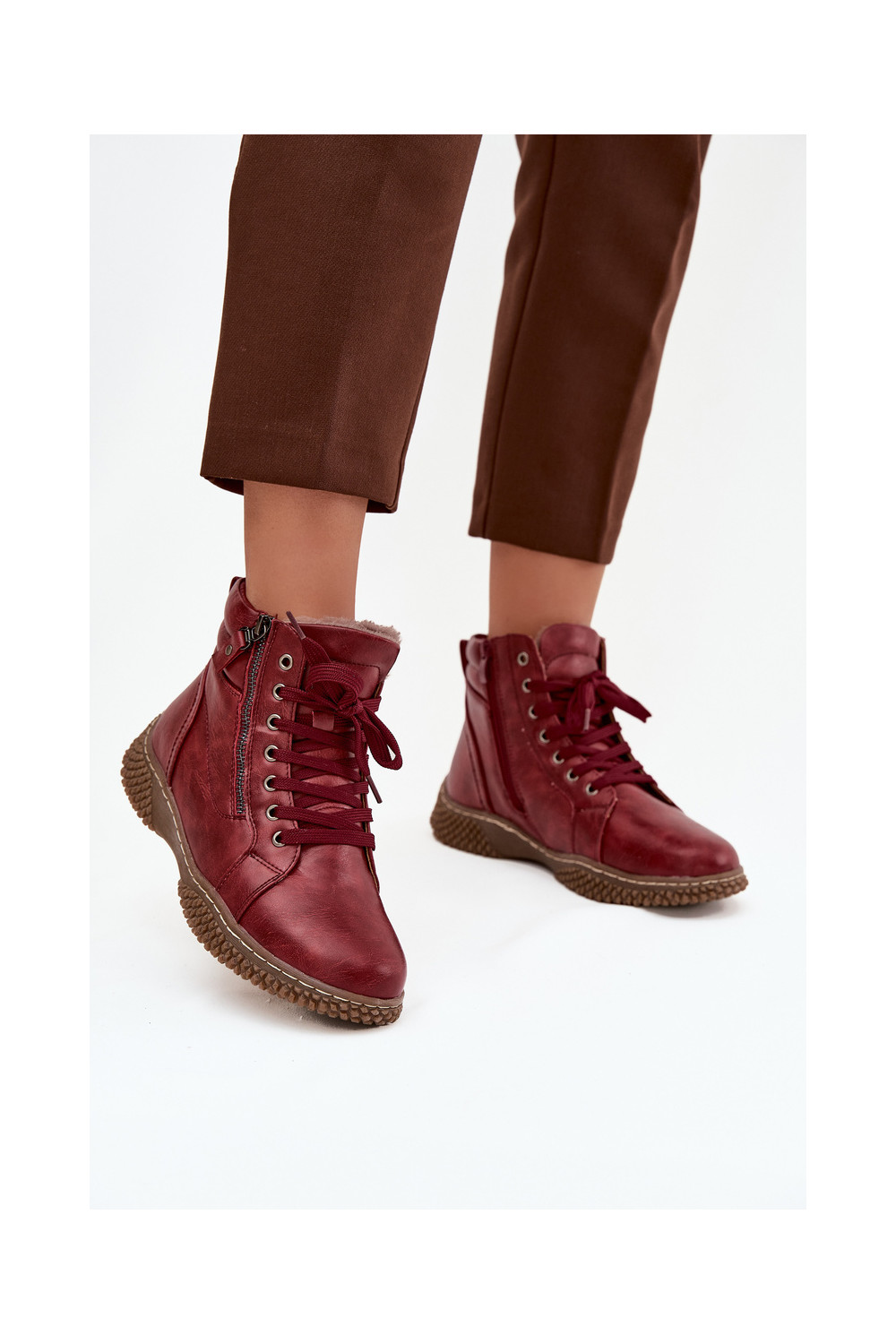 Dámské podpatky zateplené s kožešinou uvnitř z ekologické kůže vínová Ulverina