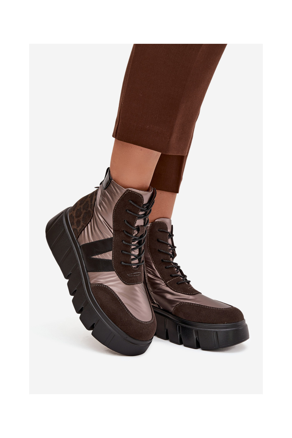 Dámské podpatky zateplené s platformou Vinceza 58562 hnědá