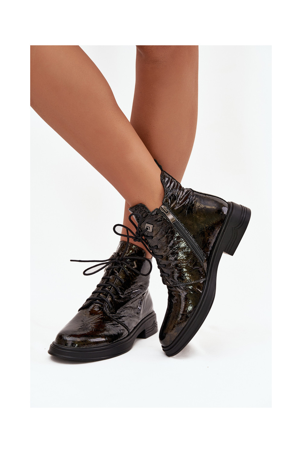 s efektem laku Dámské podpatky zateplené D&A LZ42-042 zlaté barvy