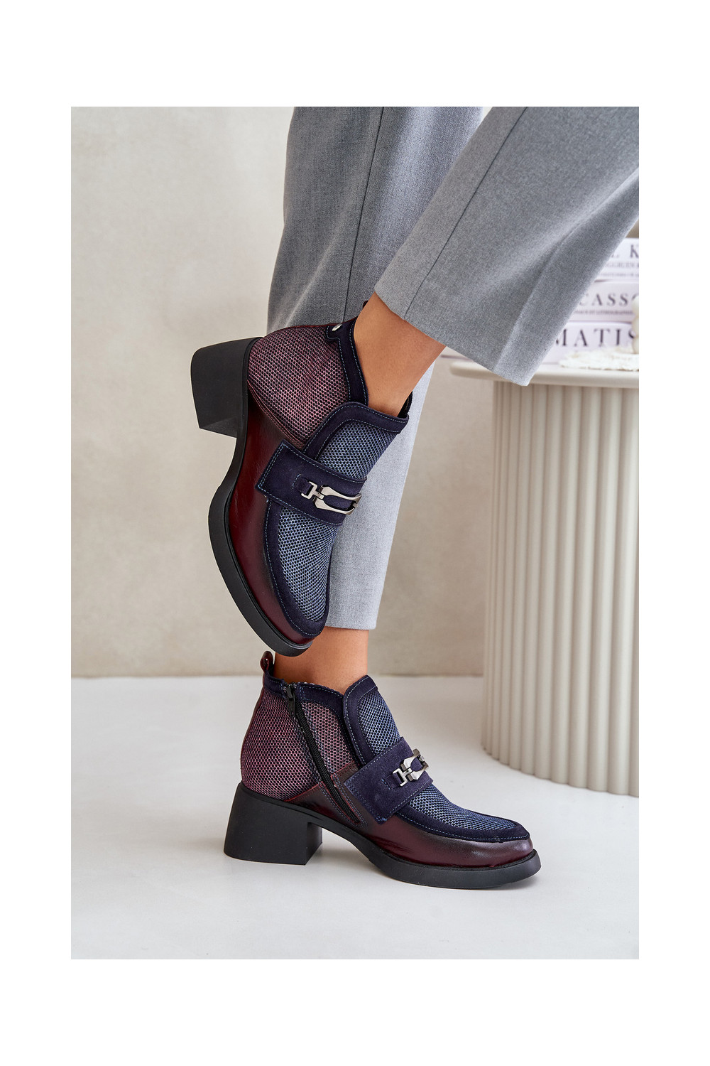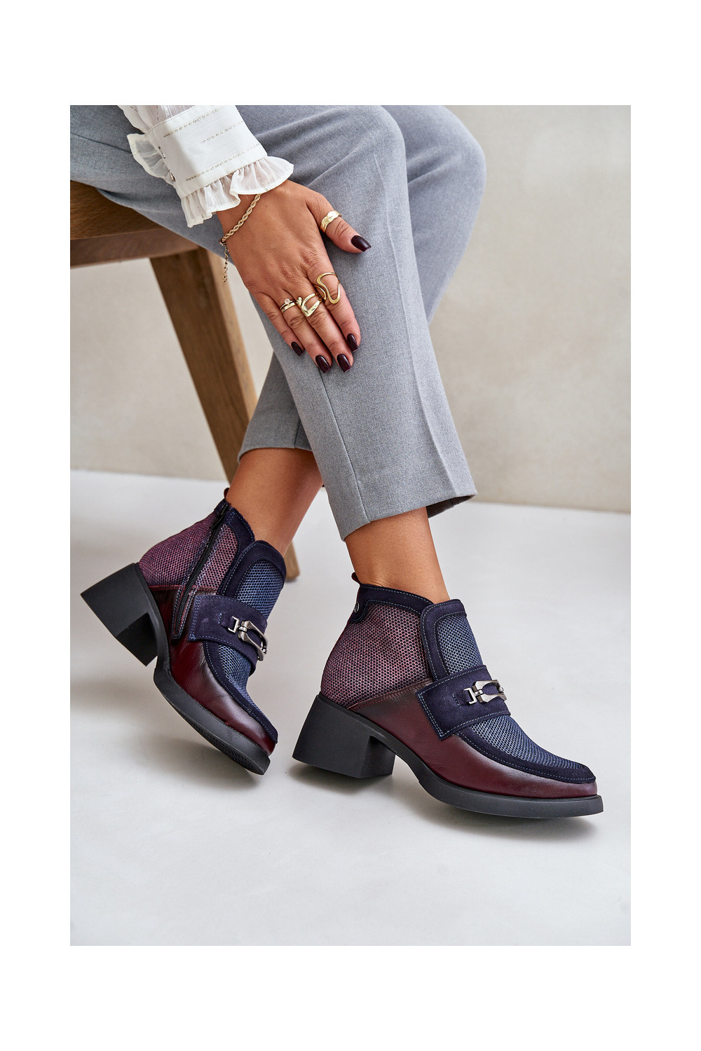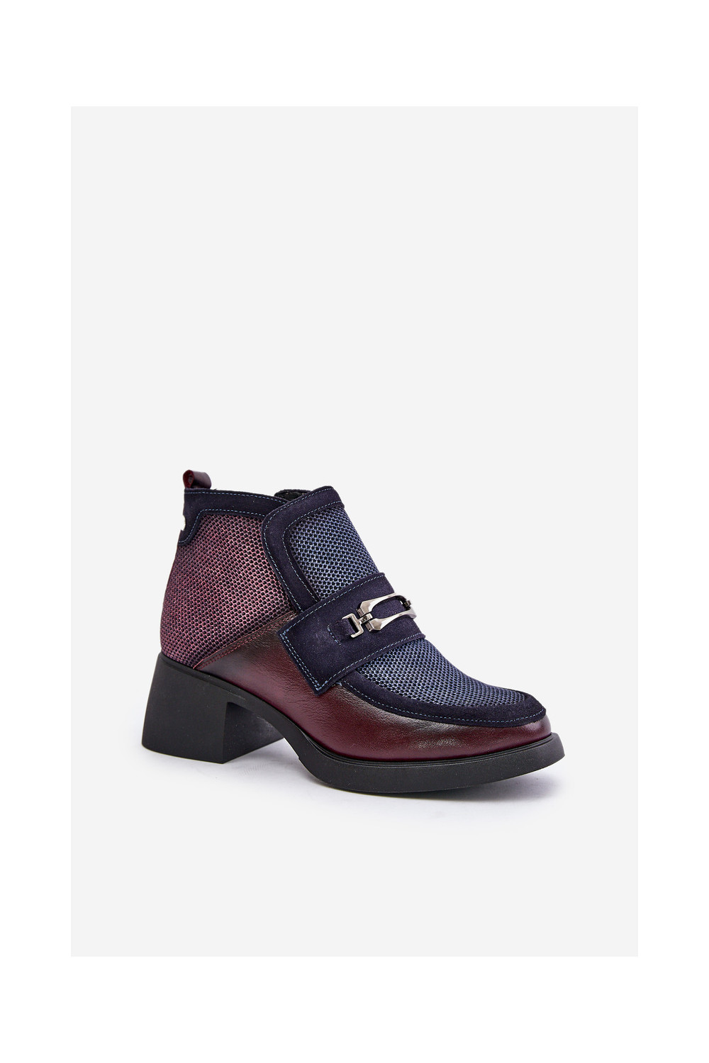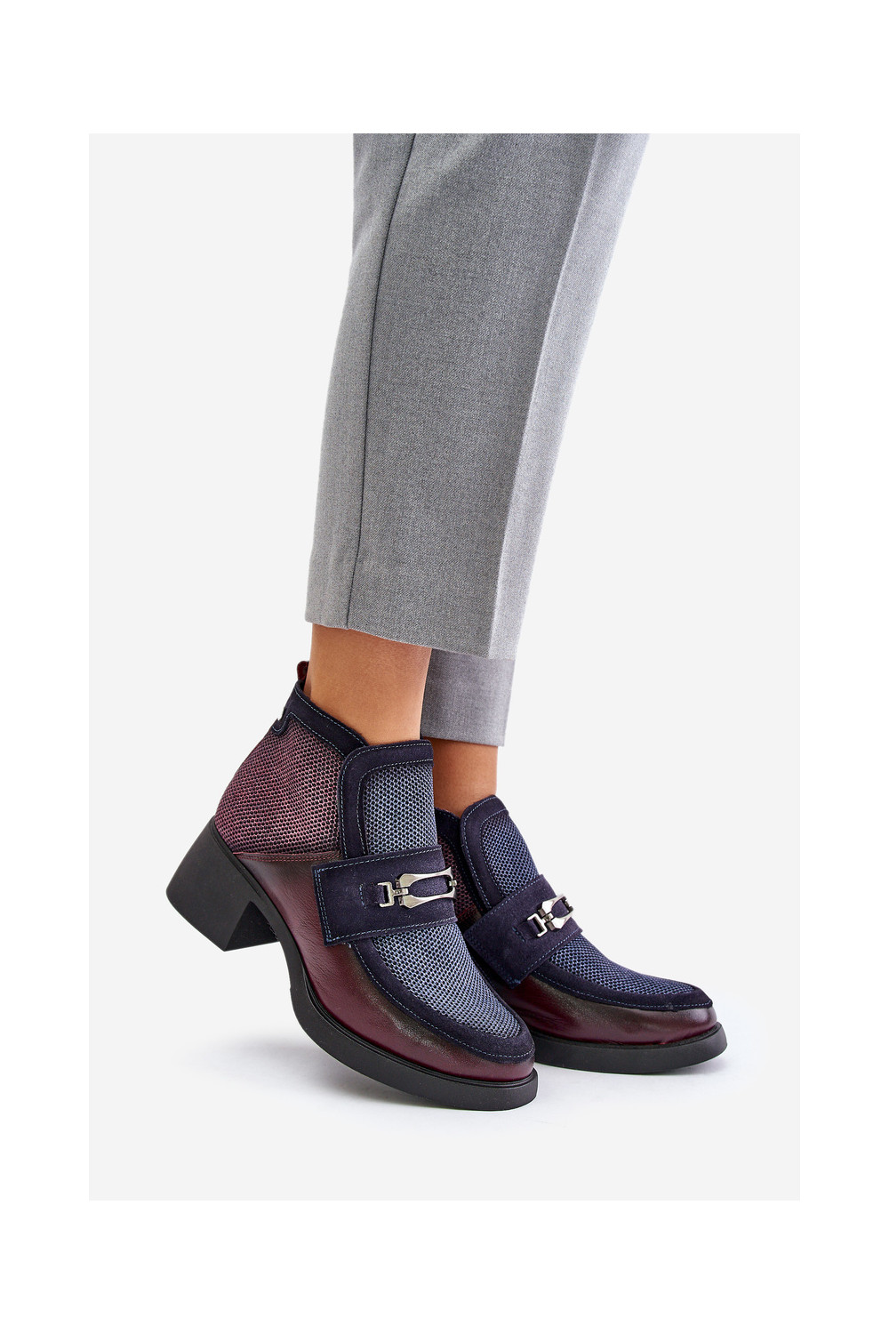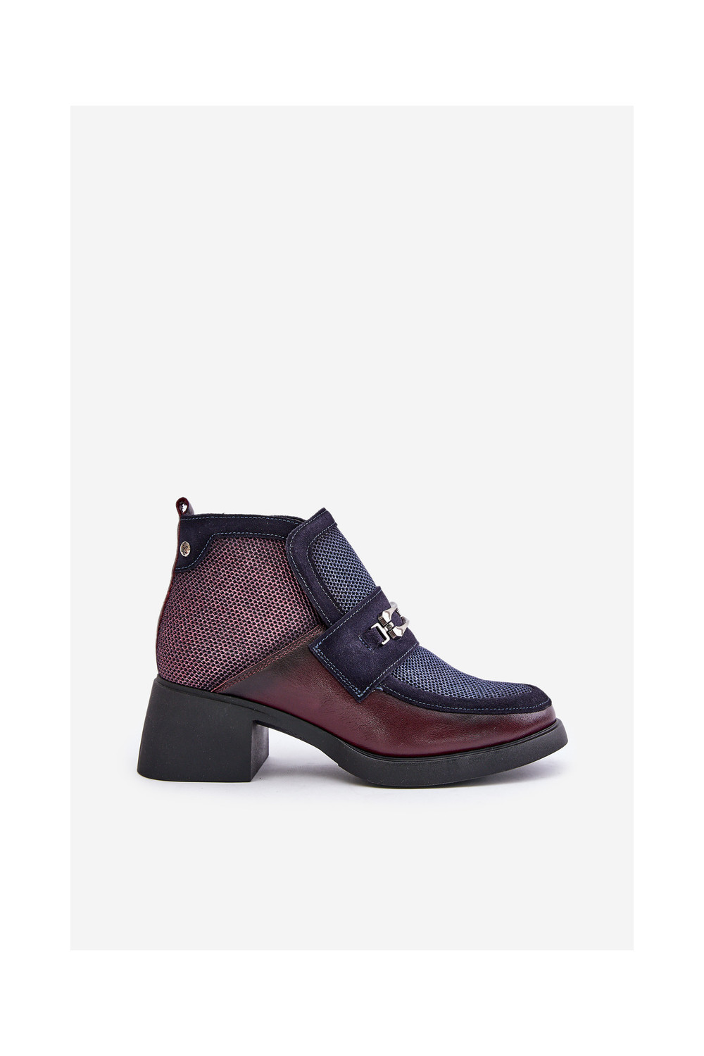 Dřeváky se širokým podpatkem s ornamenty A6747-23 vínováwo-tmavě modrá