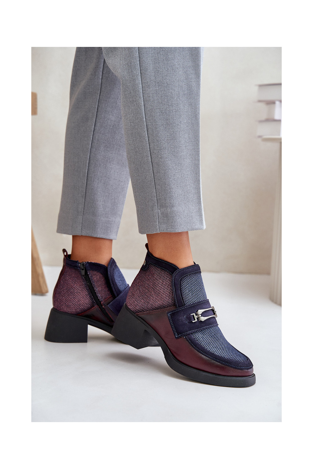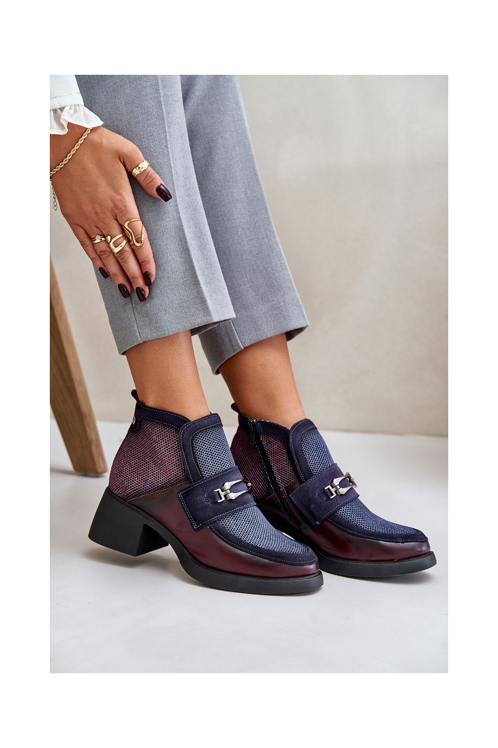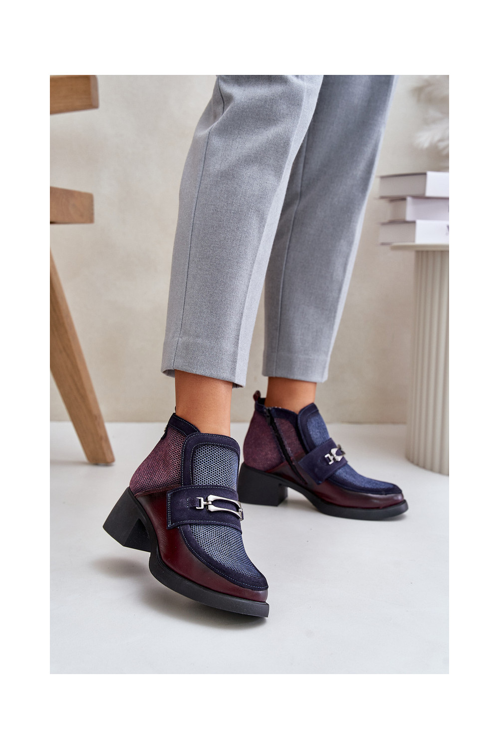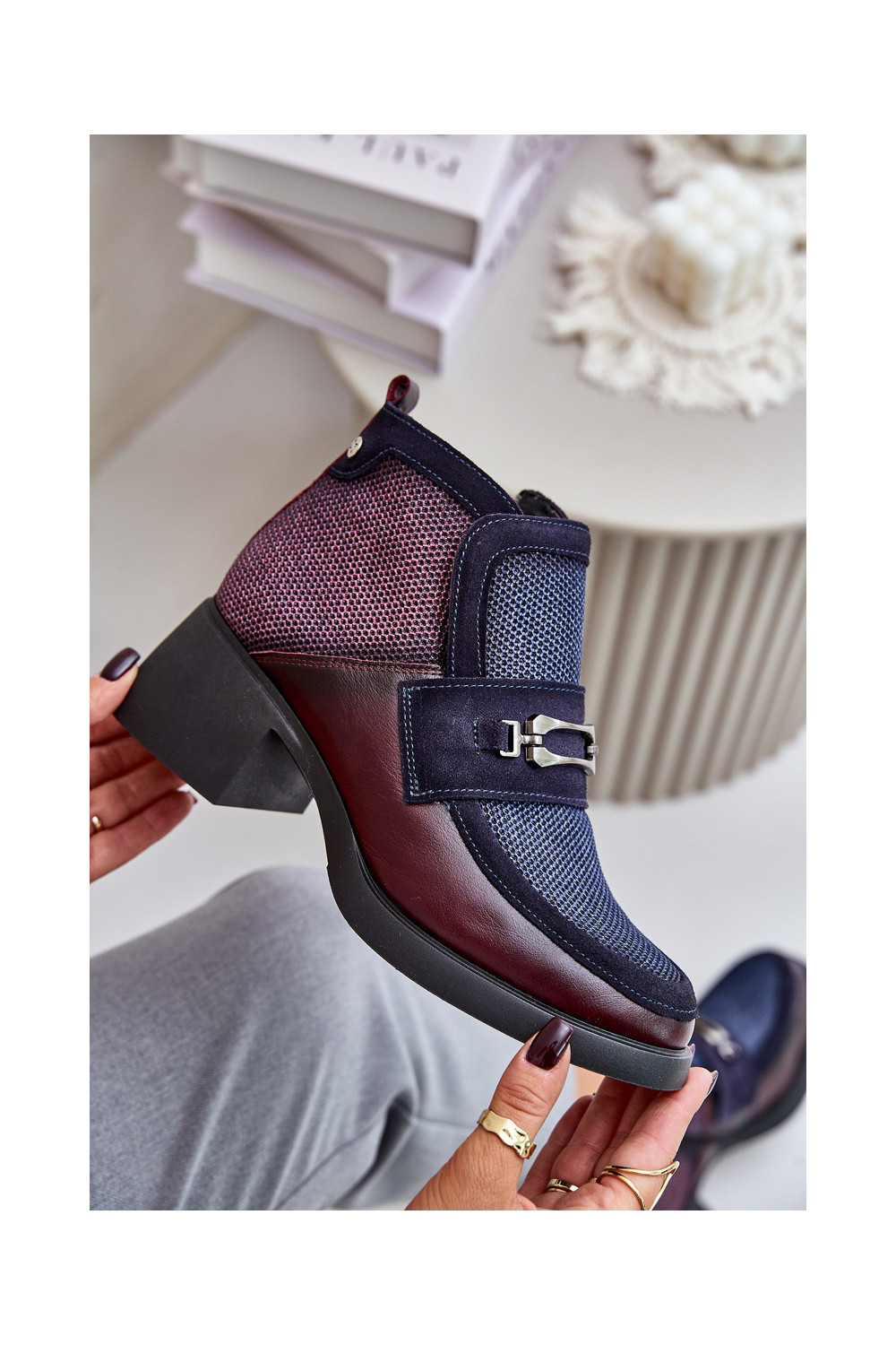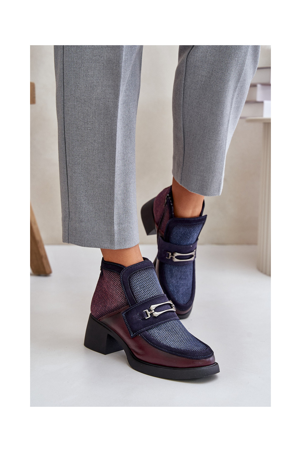 Dřeváky se širokým podpatkem s ornamenty A6747-23 vínováwo-tmavě modrá