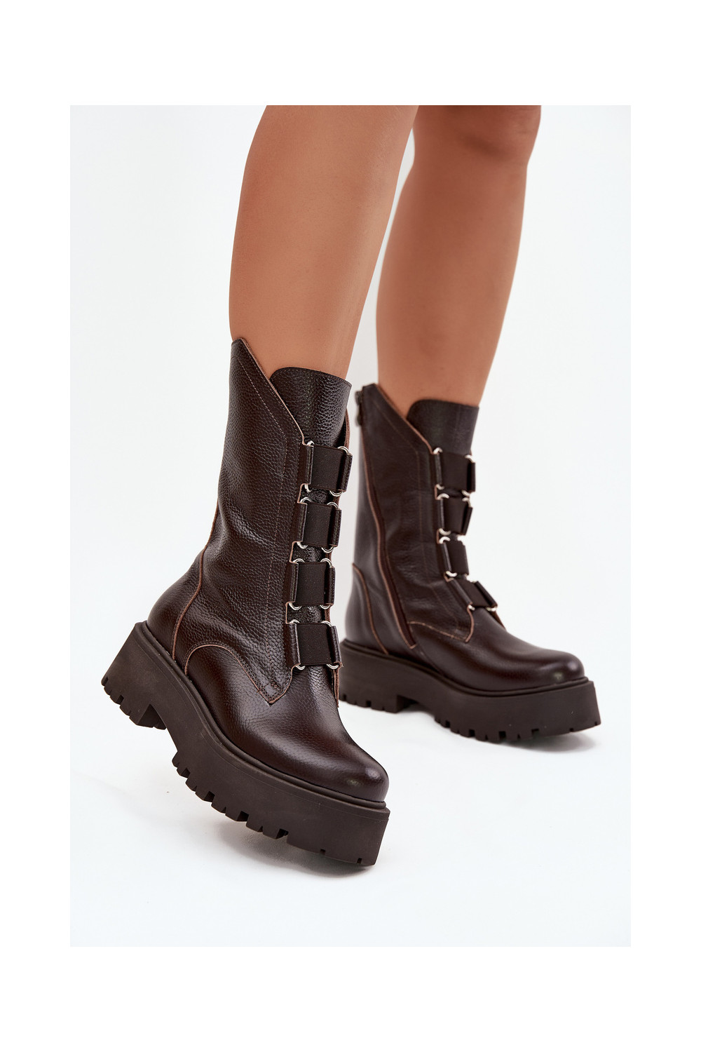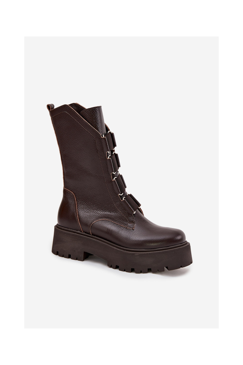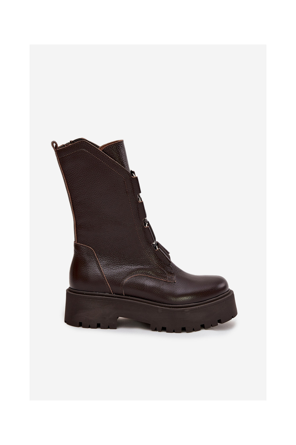 Dámské podpatky Z Naturalnej Skóry s platformou Zazoo 3795 Czekoladowe