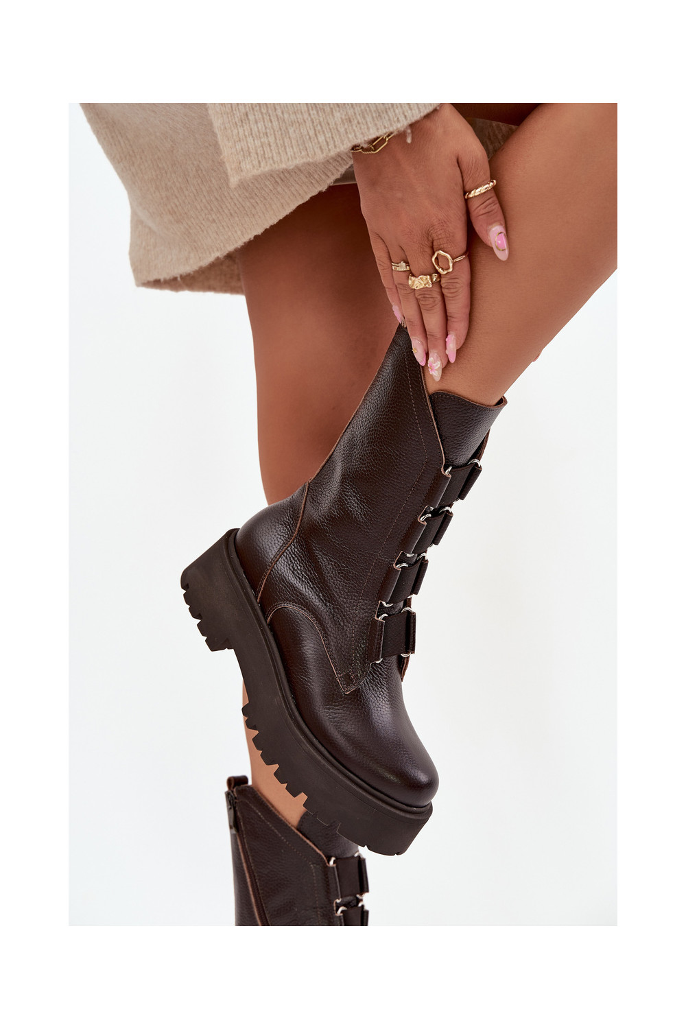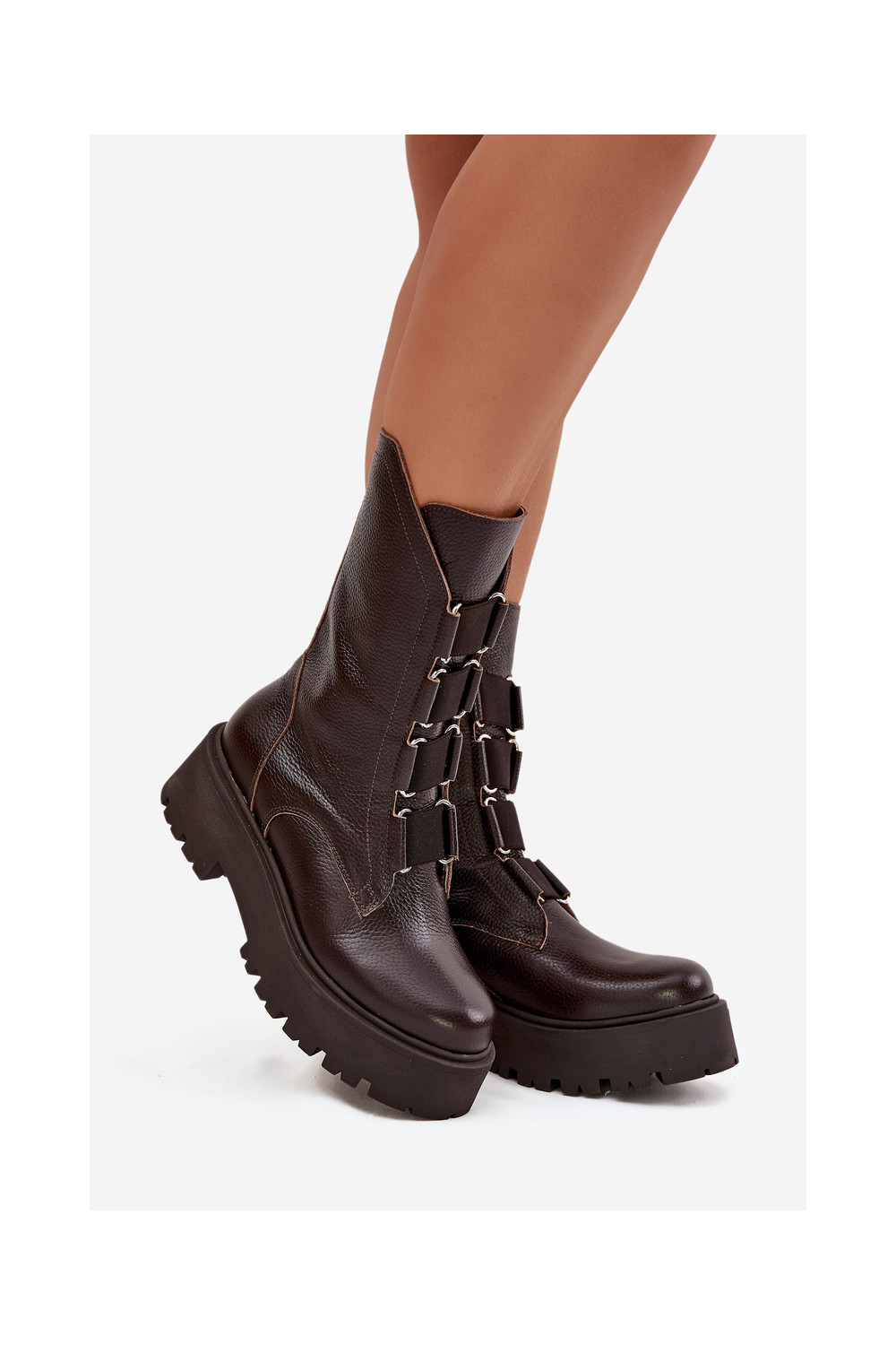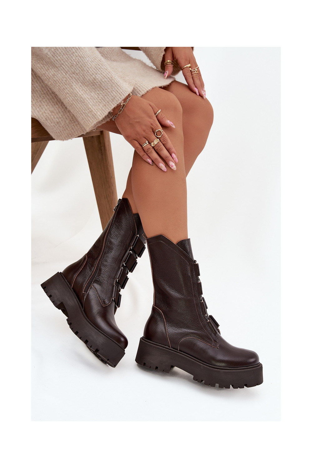 Dámské podpatky Z Naturalnej Skóry s platformou Zazoo 3795 Czekoladowe
