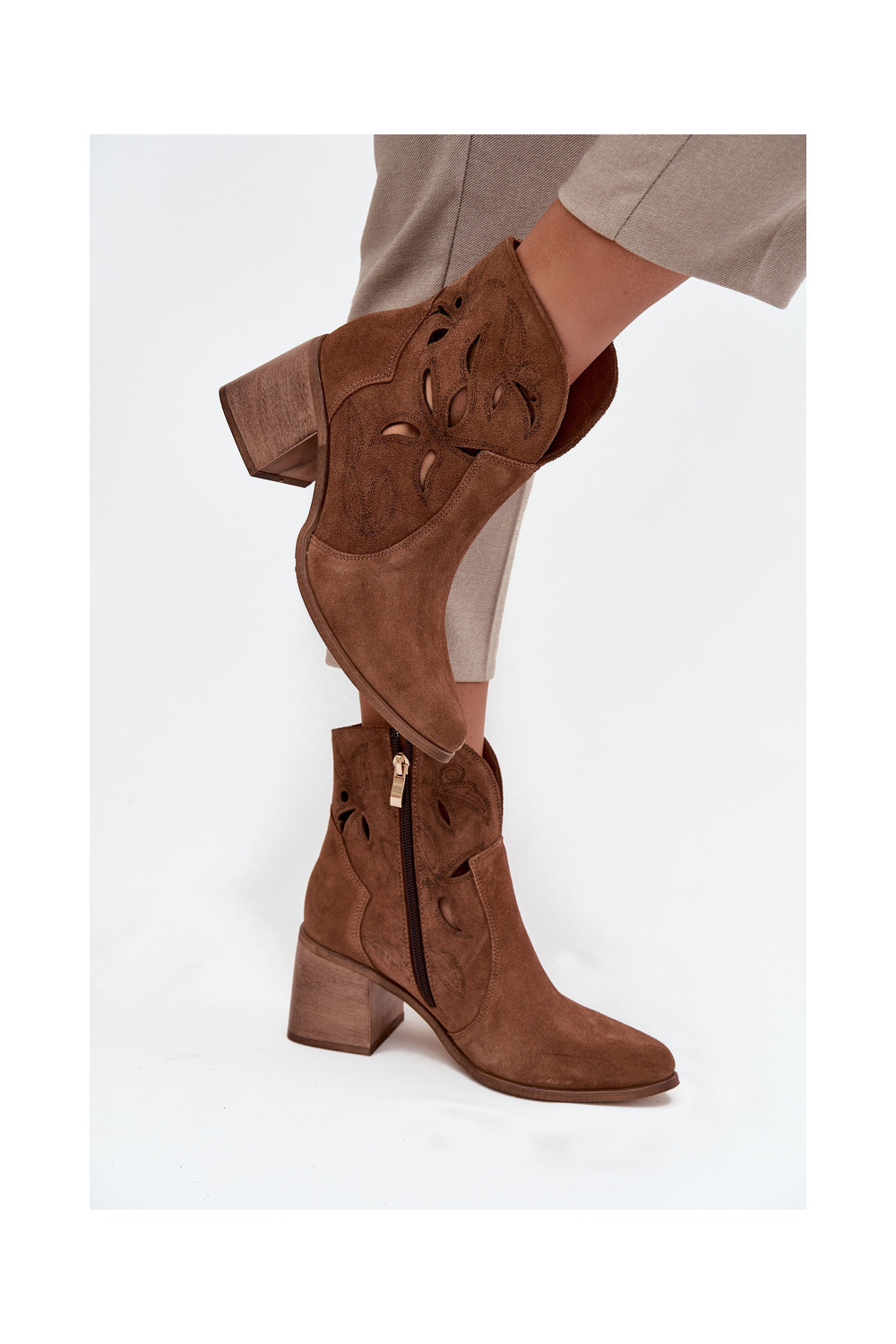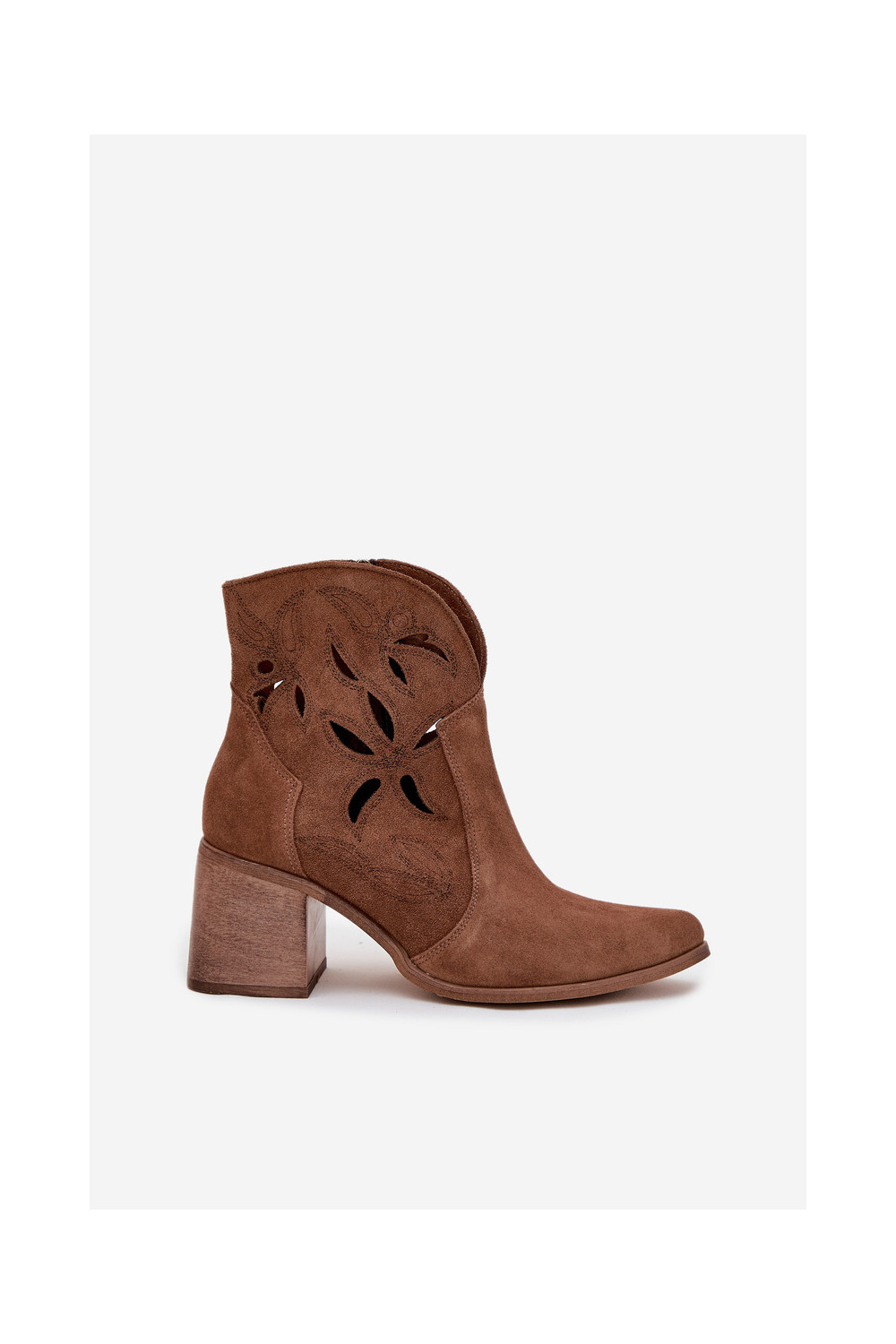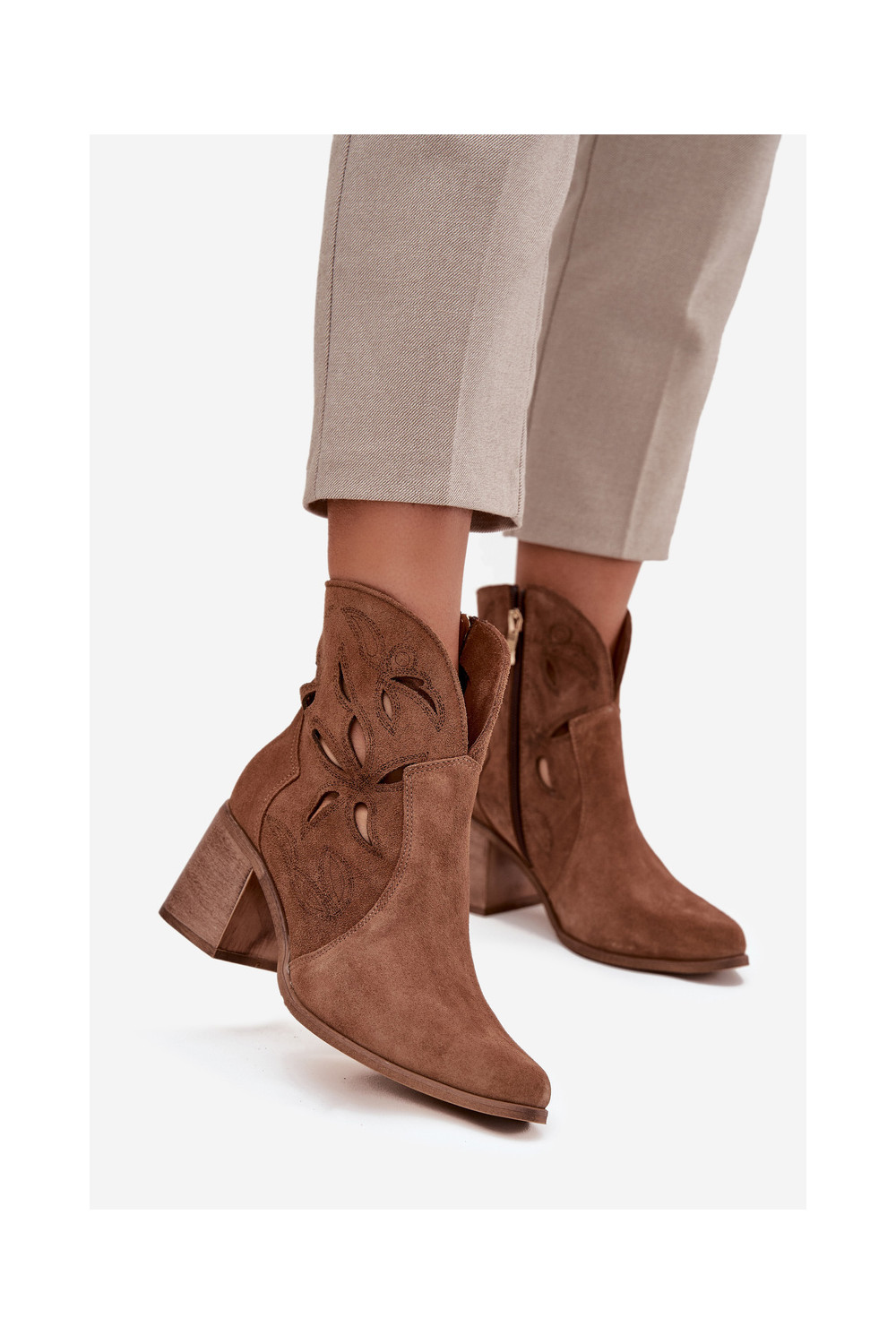 Dámské podpatky s ažurovými prvky Z Naturalnego Zamszu s podpatky Zazoo 3690 hnědá